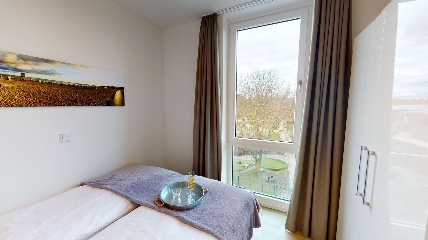 Das 84 qm große 3-Zimmer Apartment befindet sich im 2. Obergeschoss des Hauses E. Es ist für eine Belegung mit 5 (4 Erwachsene + 1 Kind) Personen ausgelegt.
