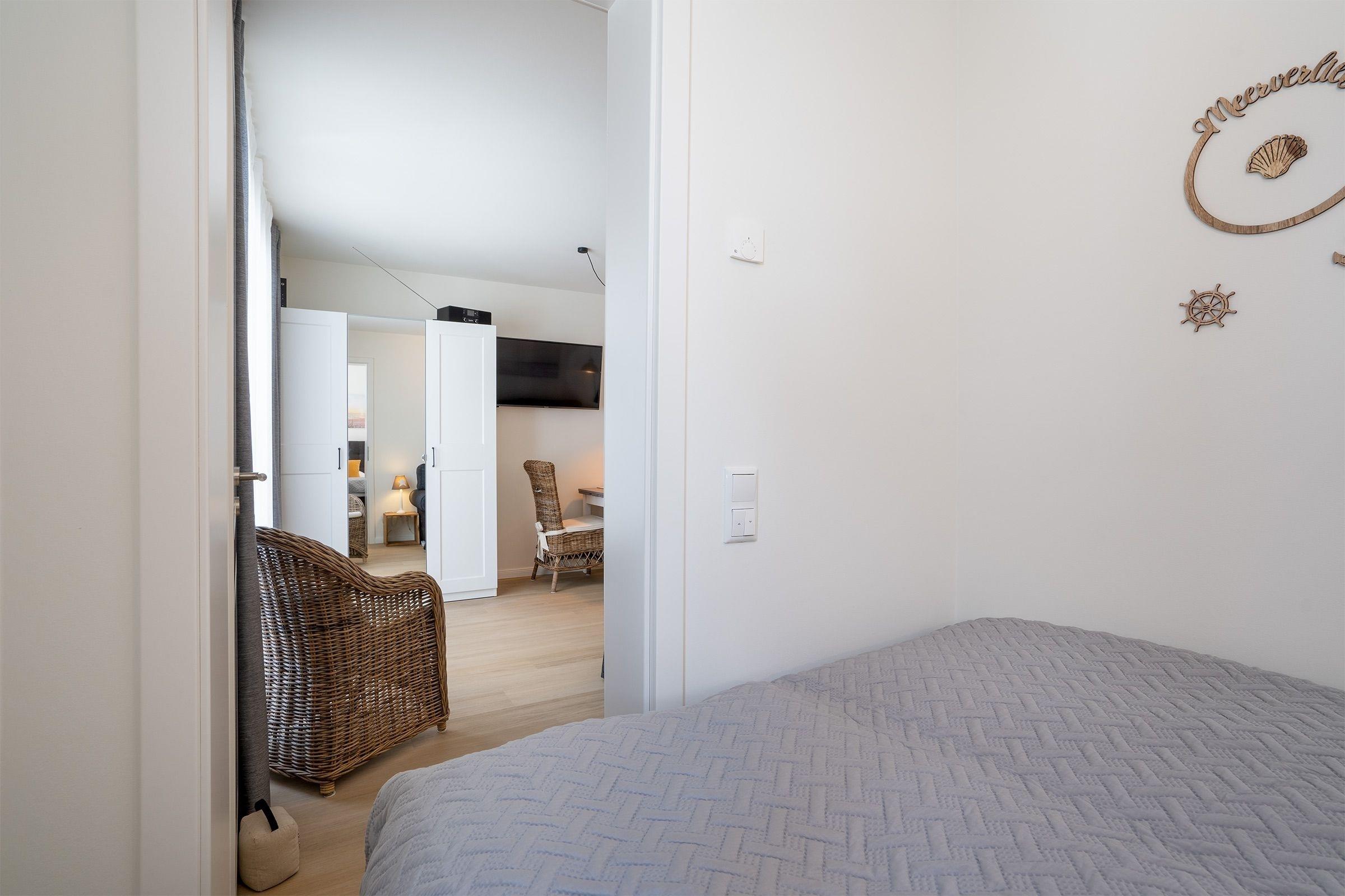 Auf kleinem Raum finden Sie hier alles, um vom Alltag abzuschalten und die Seele baumeln zu lassen. Der Wohn-, Ess- und Kochbereich ist liebevoll eingerichtet und verspricht entspannte Stunden zu Zweit. Kuscheln Sie sich abends gemütlich auf das Sofa, das auch als Ausweichschlafstätte (140x200 cm) genutzt werden kann und entspannen Sie bei einem guten Film. Im separaten Schlafzimmer befindet sich ein gemütliches Boxspringbett (ca. 140x200 cm). Das Duschbad mit ebenerdiger Regendusche verfügt über eine angenehme Fußbodenheizung. Verlegen Sie doch Ihre morgendliche Ausflugsplanung bei einem frischen Kaffee aus der Senseo Padmaschine auf den möblierten Balkon und genießen Sie die ersten Sonnenstrahlen. Die Ostsee erreichen Sie von hieraus fußläufig in 15 Minuten über einen idyllischen Wanderweg und auch der sehenswerte Ancora-Yachthafen ist schnell erreichbar. In unmittelbarer Nähe (50m) befindet sich eine Bushaltestelle, wenn Sie Ihrem Auto eine Pause gönnen möchten.