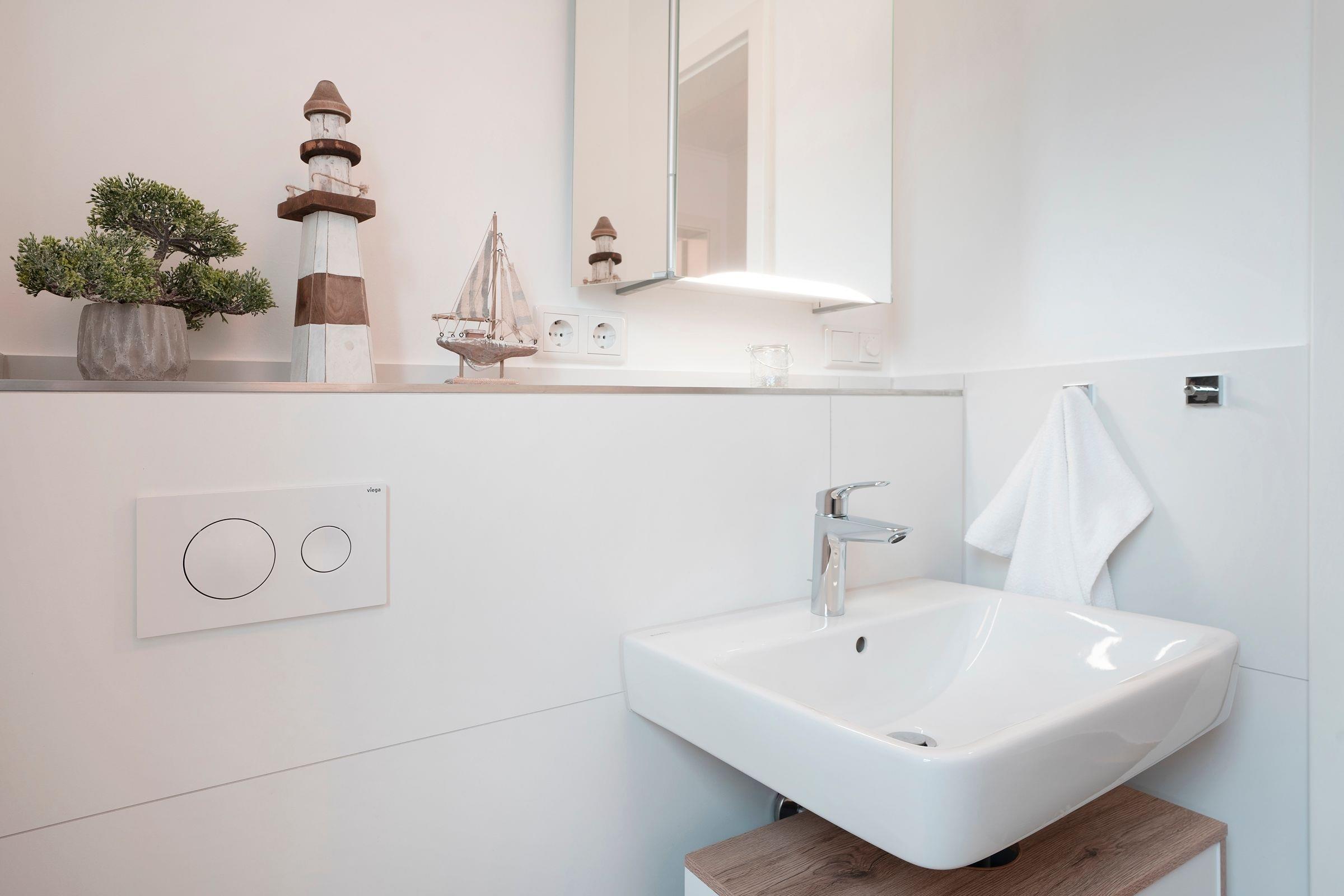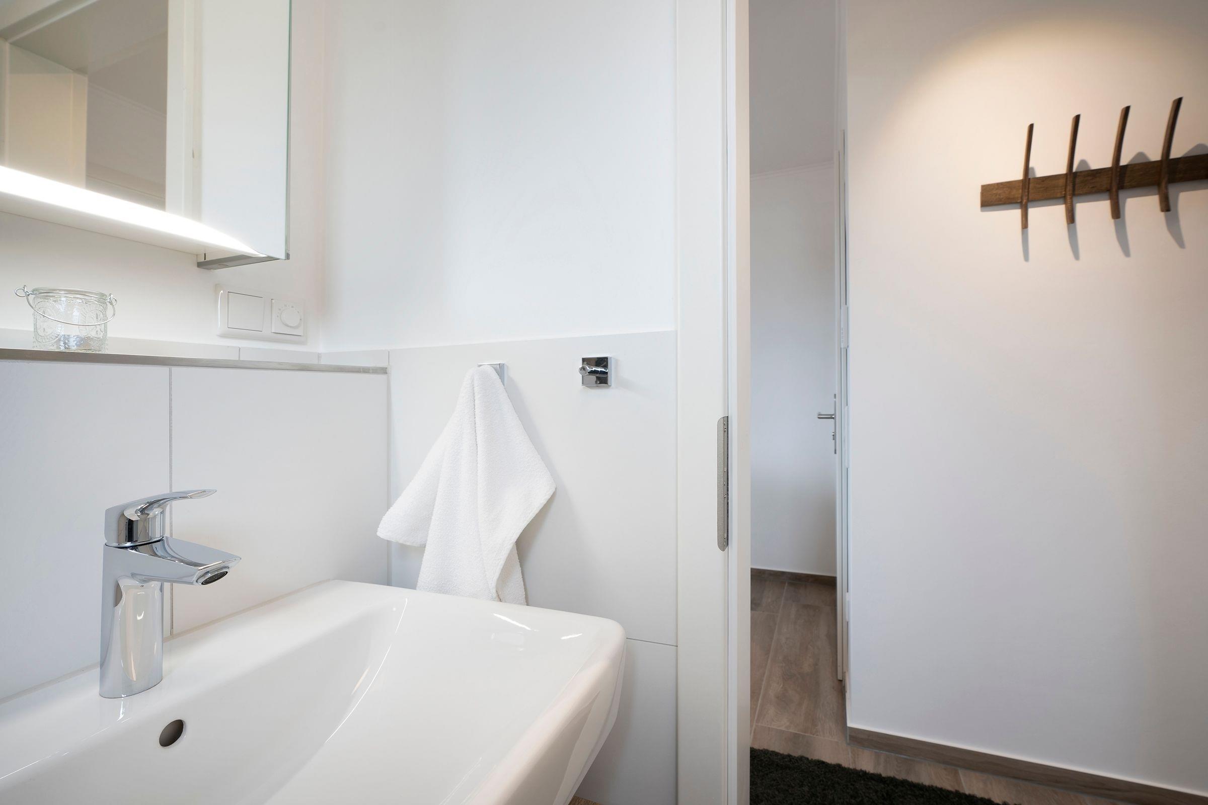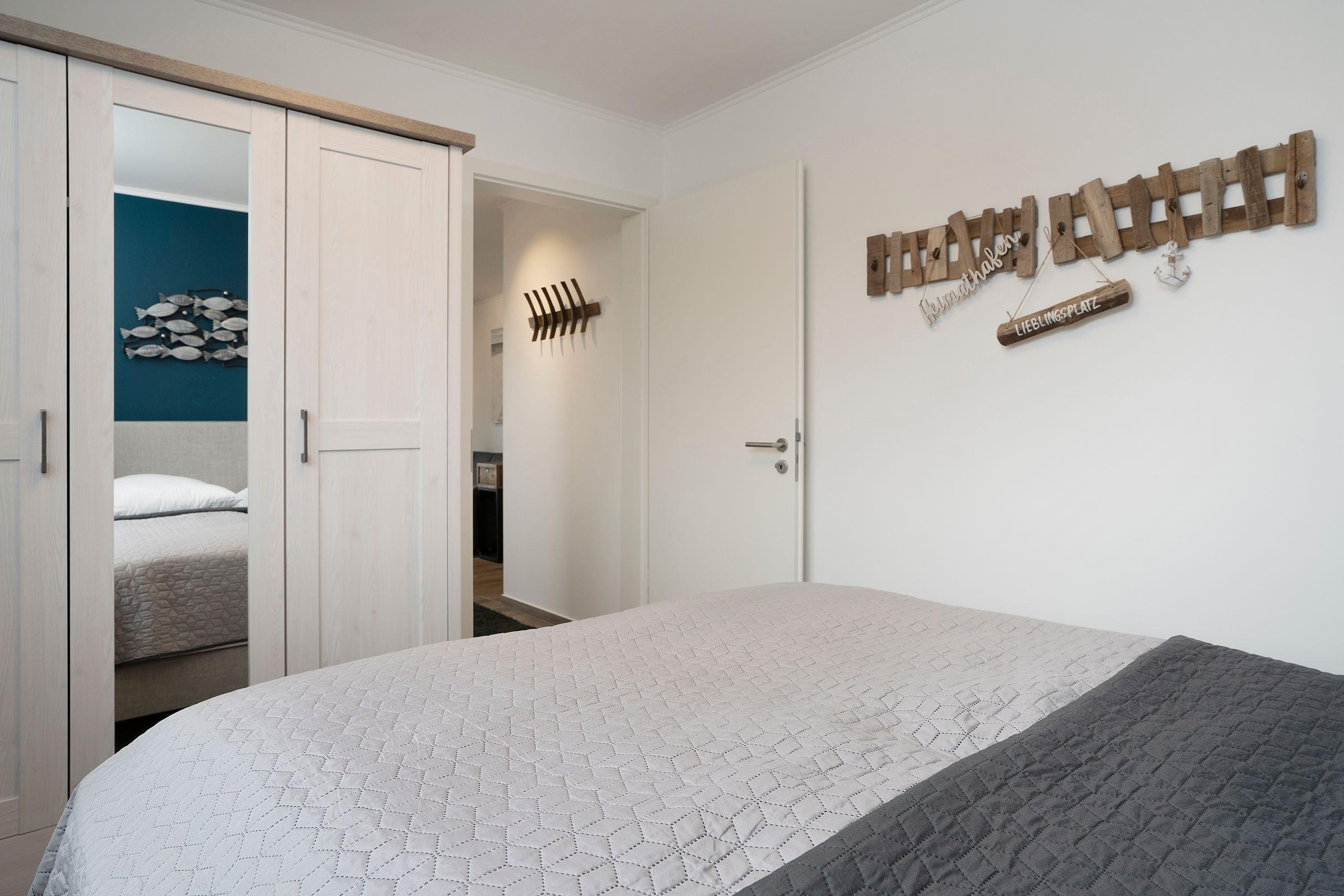 Auch das separate Schlafzimmer mit komfortablem Boxspringbett (160x200 cm) und Kleiderschrank mit reichlich Stauraum für Ihre Urlaubsgarderobe trägt zur Urlaubsentspannung bei. Im modernen, geräumigen Bad sorgen Annehmlichkeiten wie eine Fußbodenheizung sowie eine ebenerdige Walk-In Dusche für Komfort und Wohlgefühl.