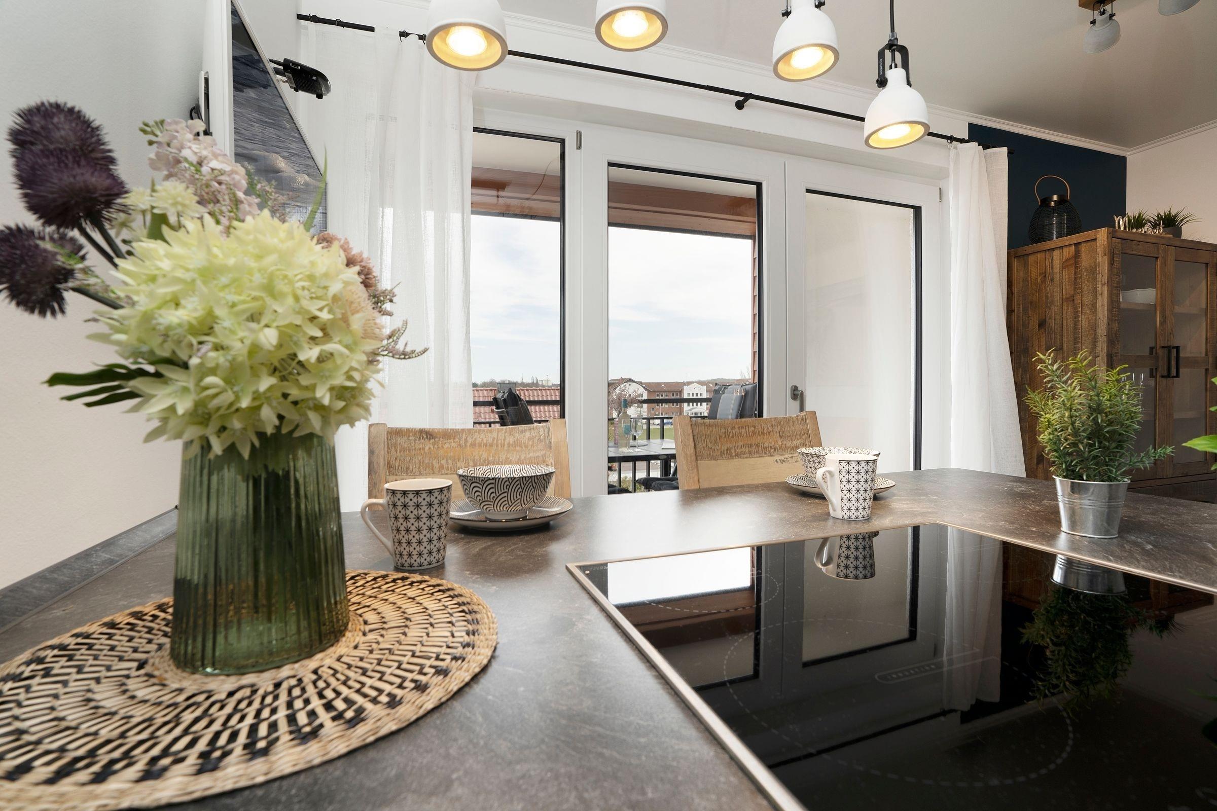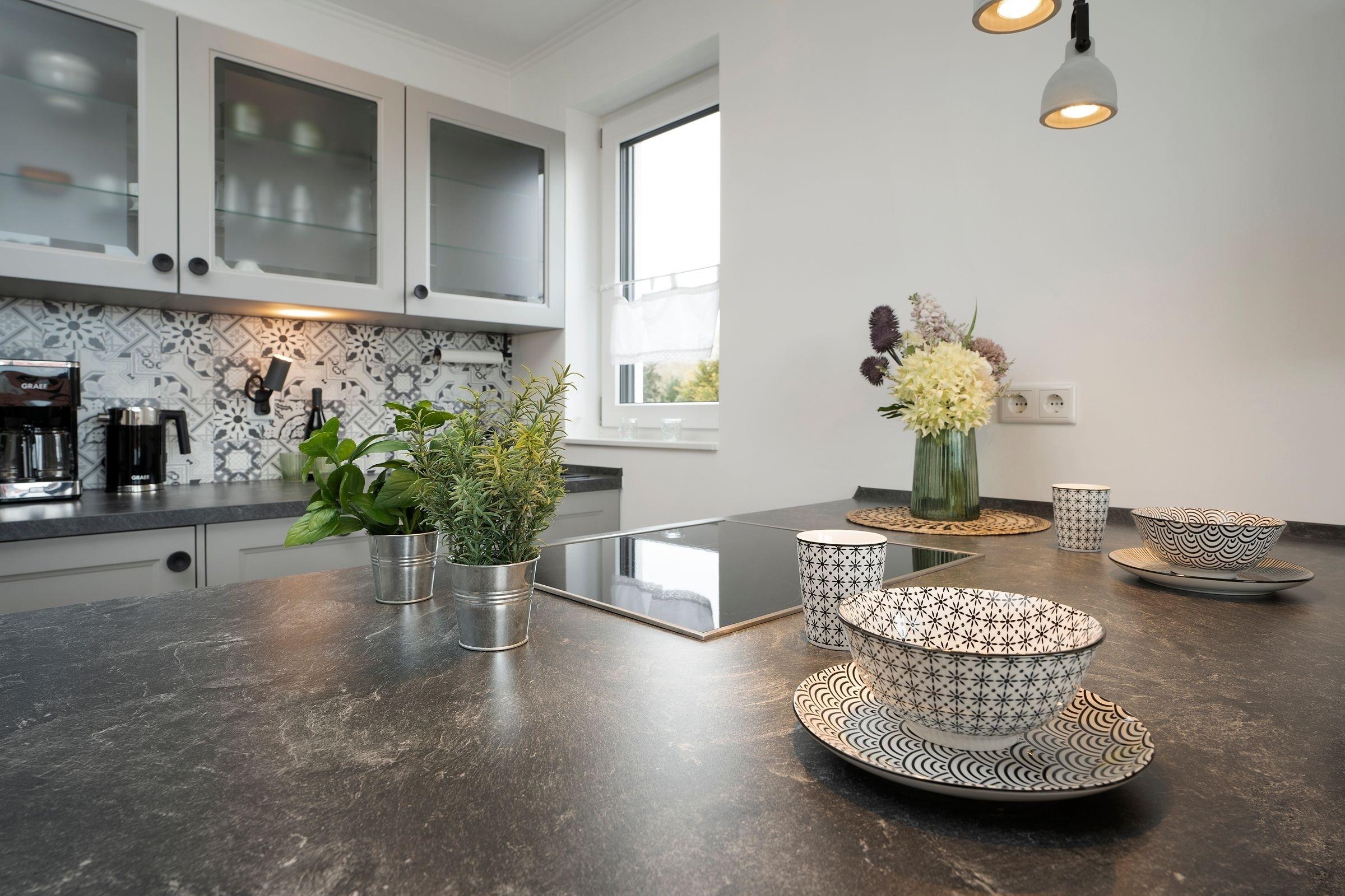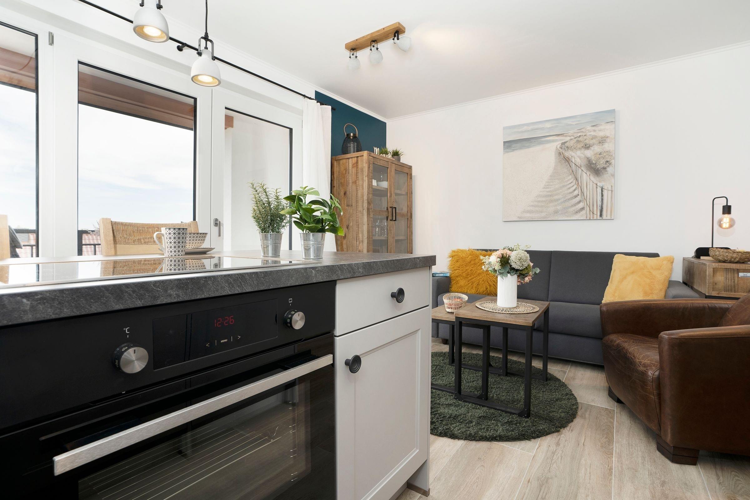 Herzstück Ihres Urlaubsdomizils bildet der lichtdurchflutete, geschmackvoll eingerichtete Wohn- und Essbereich mit bequemer Couchgarnitur, Flachbild-TV und voll ausgestatteter Küchenzeile, in der Ihnen die Zubereitung von köstlichen Mahlzeiten fast wie von selbst gelingen wird.