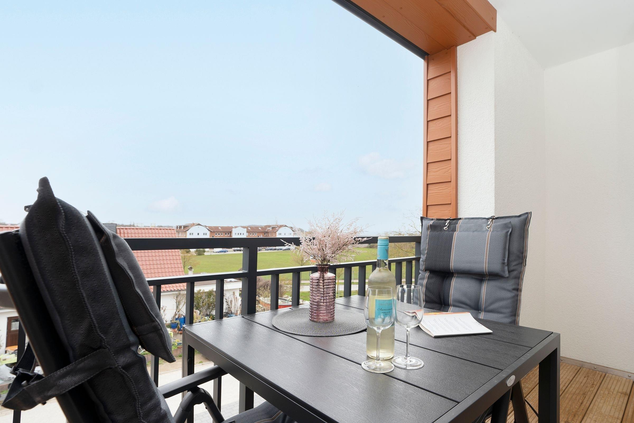 Vom möblierten Balkon aus eröffnet sich Ihnen der Blick in Richtung Ostsee und den Neustädter Hafen Ancora Marina. Hier können Sie ausspannen, den Rufen der Möwen lauschen und die Sonne genießen.