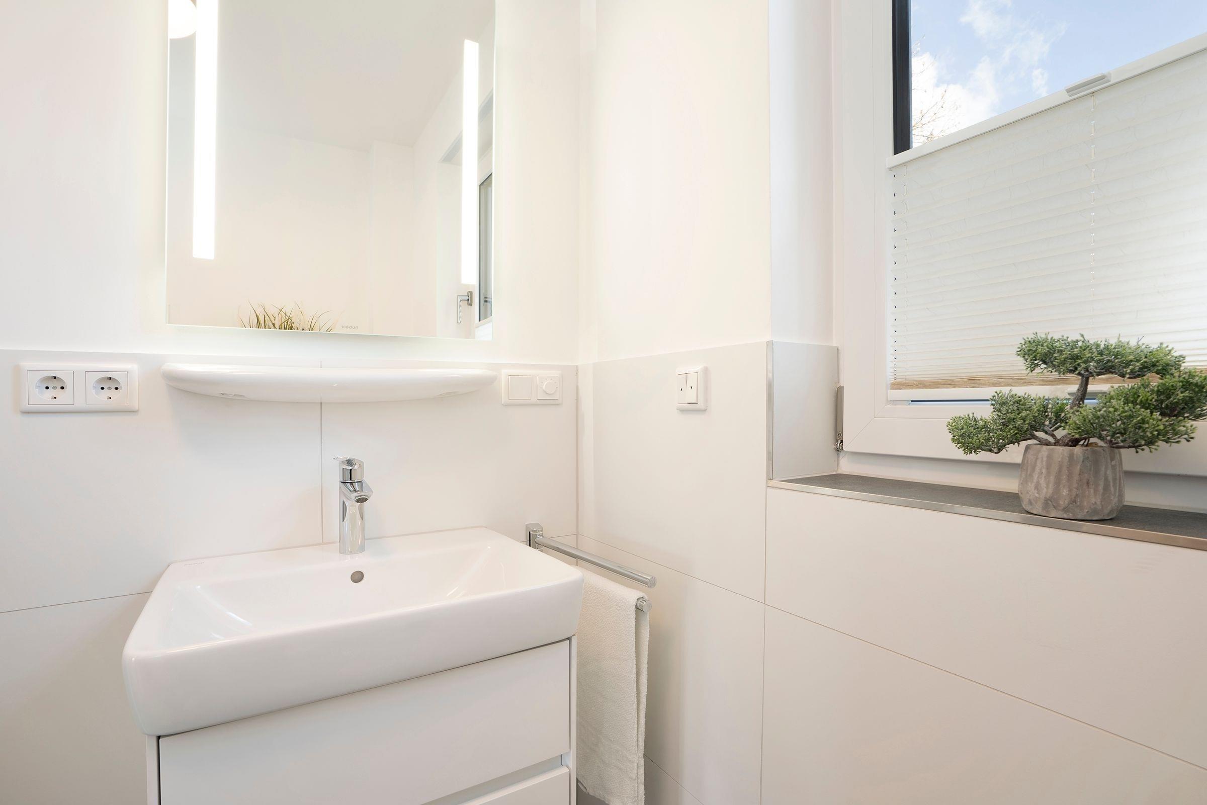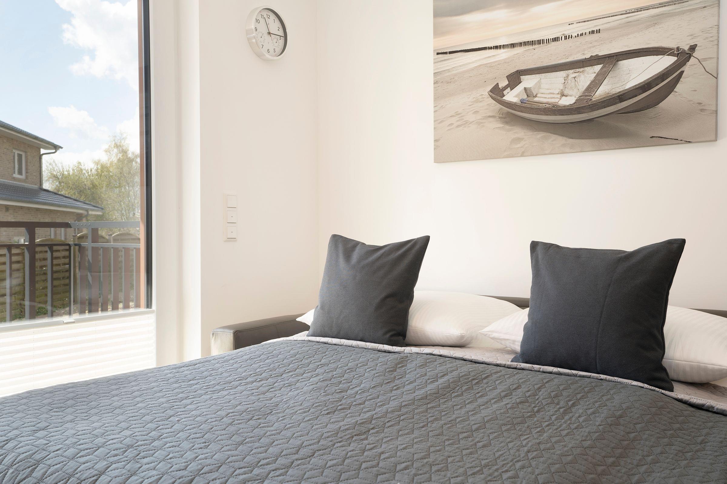 Es empfängt Sie ein mit hochwertigen Möbeln ausgestatteter Wohnbereich mit Flat-TV und funktioneller Schlafcouch - bis zu 2 Personen können das Sofa bei Bedarf als gemütlichen Schlafplatz (160x200 cm) nutzen. Im separaten Schlafzimmer, das mit einem Doppelbett (2x 90x200 cm) und einem Kleiderschrank zum Verstauen Ihrer Urlaubsgarderobe ausgestattet ist, verbringen Sie ruhige und erholsame Nächte. Am nächsten Morgen sorgt das tageslichthelle Bad mit einer erfrischenden Morgendusche für den gelungenen Start in den neuen Tag. Die Fußbodenheizung sorgt für eine angenehme Wärme in der kälteren Jahreszeit, alle Räume lassen sich durch Außenjalousien und Plissees angenehm abdunkeln.