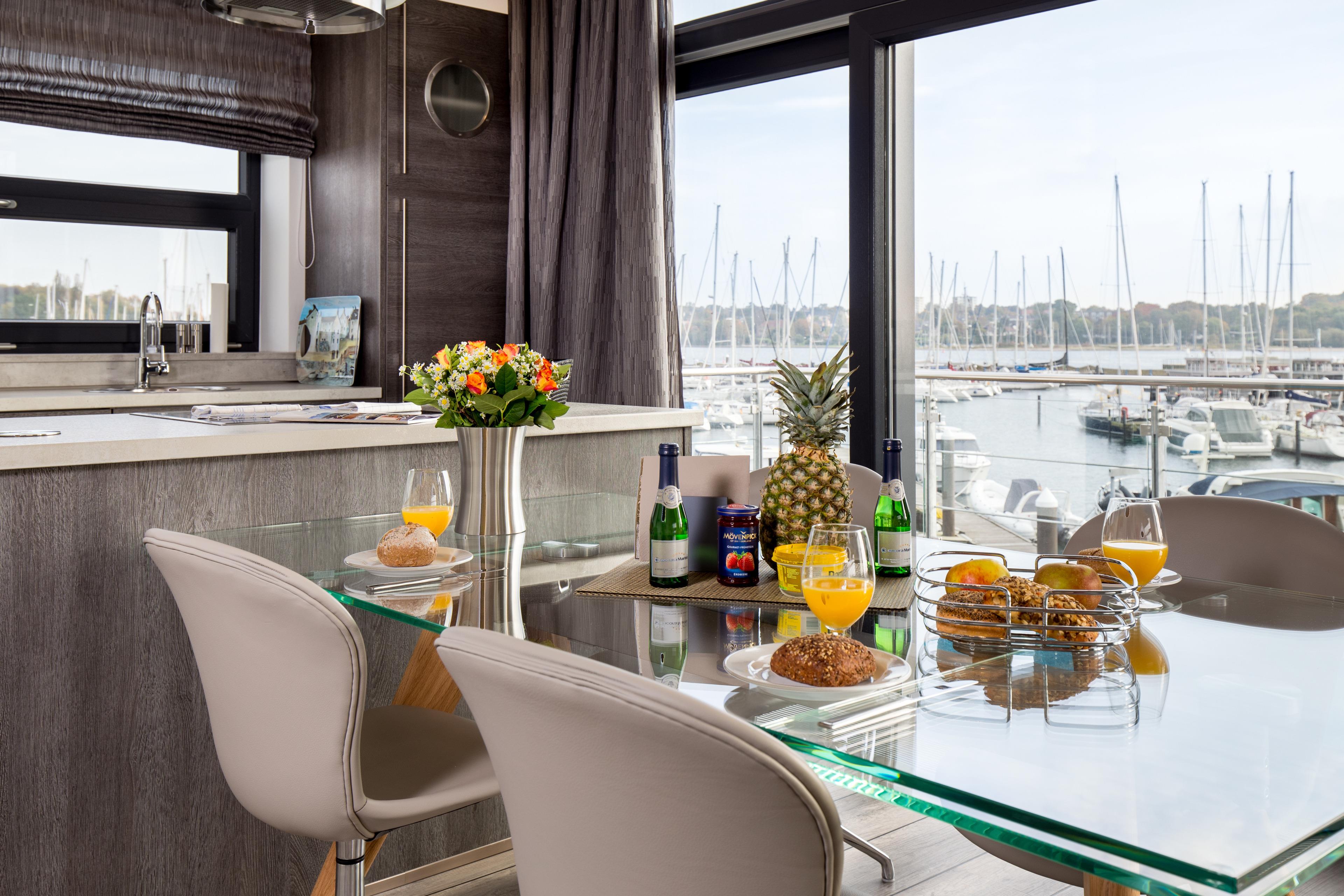 Die Küche ist komplett ausgestattet, u.a. mit Geschirrspüler und allem, was für Ihr Wirken und Werken in der Küche benötigt wird. Sollten Sie auswärts essen mögen, so besuchen Sie gerne unser Hafenrestaurant Pier 19 oder das italienische Restaurant Meyer`s Sealounge mit seinem traumhaften Ausblick direkt auf die Ostsee von der ersten Etage aus oder nehmen Sie einen Cocktail in der Sealounge - direkte Wasserkante, näher geht es nicht. Besuchen Sie das Restaurant Kutter Kitchen im arborea Hotel, bei einmaligem Blick auf die Marina!