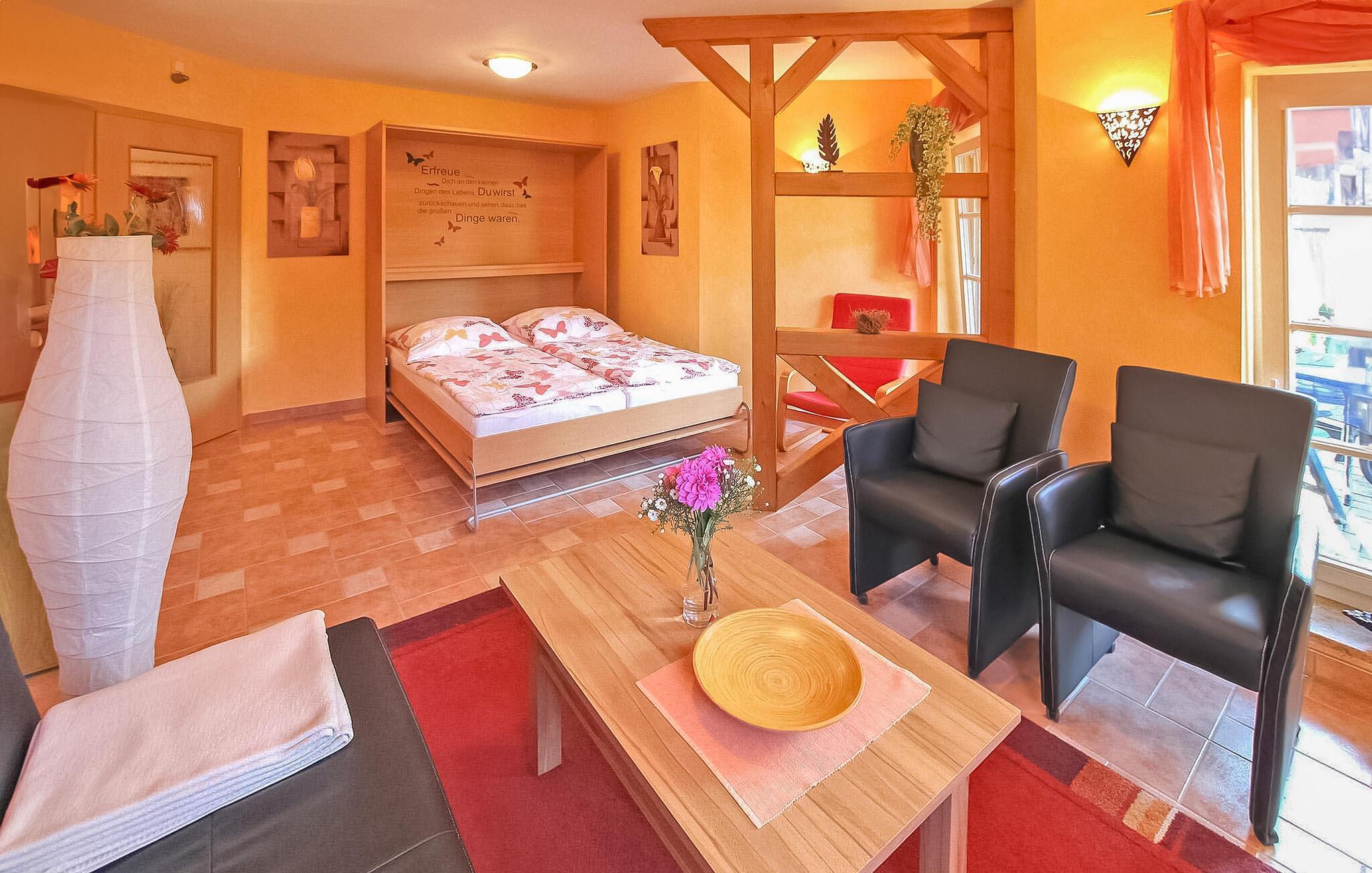 Ferielejligheden med separat adgang er beliggende i stueetagen i et beboelsesejendom på ejerens 1.600 kvadratmeter store boligejendom i et roligt boligområde. Den er indrettet med kombineret stue/soveværelse med polstrede møbler med sovefunktion, fladskærms-tv, radio/cd, vægseng, køkken med el-komfur med ovn, køleskab, opvaskemaskine, spisebord, vaskemaskine, diverse køkkenmaskiner samt et badeværelse med bruser WC. Lejligheden har centralvarme. Også tilgængelig: møbleret terrasse, grill, 2 cykler, cykelrum (terrasse), bordtennisbord (hvis nødvendigt) og parkeringsplads. Den samlede pris inkluderer sengelinned, håndklæder, slutrengøring, vand og energiforbrug. Kæledyr er ikke tilladt i denne ejendom. Beboelsesbyen Neustrelitz ligger midt i Mecklenburgs lille sølandskab. Byen er omgivet af Müritz National Park samt skovene og søerne i Feldberg Lake District. Regionen er særdeles velegnet til vandre- eller cykelture i uforstyrret natur. Området er også et populært rejsemål for vandvandrere, da byen også kan nås via Havel og flere søer på denne måde. I selve Neustrelitz er Zierker See og Glambecker See attraktioner for vandsportsentusiaster og lystfiskere.Byen er også det kulturelle centrum i Mecklenburg Lake District takket være dens forskellige arrangementer, udstillinger og teater- og danseforestillinger. Arkitektonisk er den historiske slotspark med Louisentemplet, slotskirsebæret eller orangeriet særlige attraktioner. I Neustrelitz er der forskellige caféer, restauranter og butikker og en zoologisk have med over 400 dyr. Byens havn har bådhavne og er ideel til en gåtur langs bredden af Zierker-søen, efterfulgt af en pause i en af de mange spisesteder i de nu udvidede tidligere kornmagasiner.