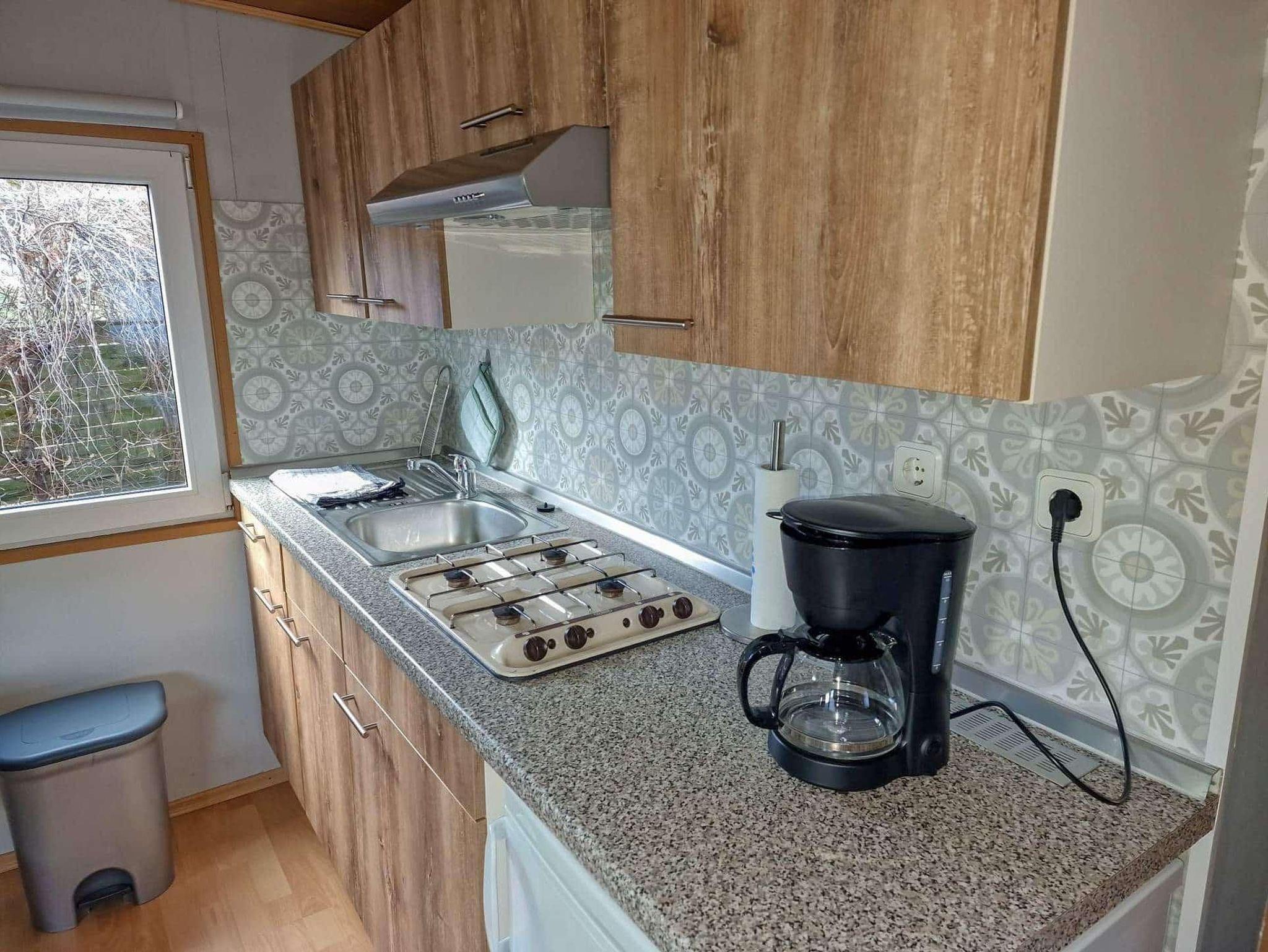 Hier bist du großzügig eingerichtet: In diesen Mobilheimen warten zwei Schlafzimmer auf dich, eine komplett eingerichtete Wohnküche und eine Zentralheizung. Im zweiten Schlafzimmer findest du ein Etagenbett und ein ausklappbares Zusatzbett, sodass insgesamt fünf Schlafplätze zur Verfügung stehen. Ein TV ist ebenfalls Teil der Ausstattung. Ein kleines Badezimmer mit WC, Dusche und Handwaschbecken sorgt für eine angenehme Wohlfühlatmosphäre. Der Vorraum bietet Platz für dein Gepäck und hat eine zusätzliche Sitzgelegenheit mit Tisch. Auf der Terrasse kannst du sitzen und grillen, während du die Natur genießt. Dein Fahrzeug parkst du direkt am Objekt. Du kannst gerne deine eigene Bettwäsche und Handtücher mitbringen oder sie bei uns dazubuchen. Gegenüber im SB & Café Hetzingen kannst du über unsere Gäste-App Brötchen vorbestellen oder nach Voranmeldung dort frühstücken!