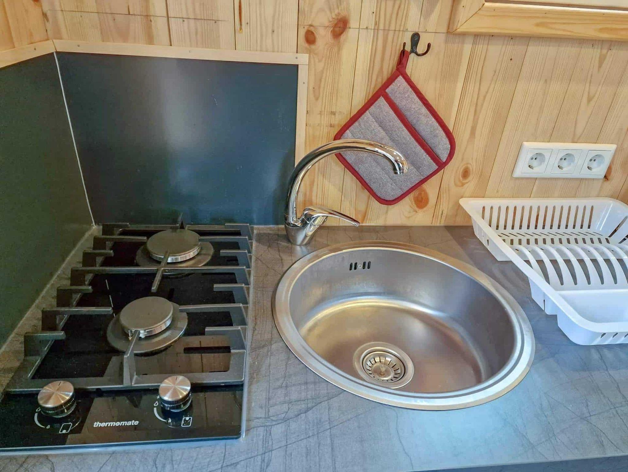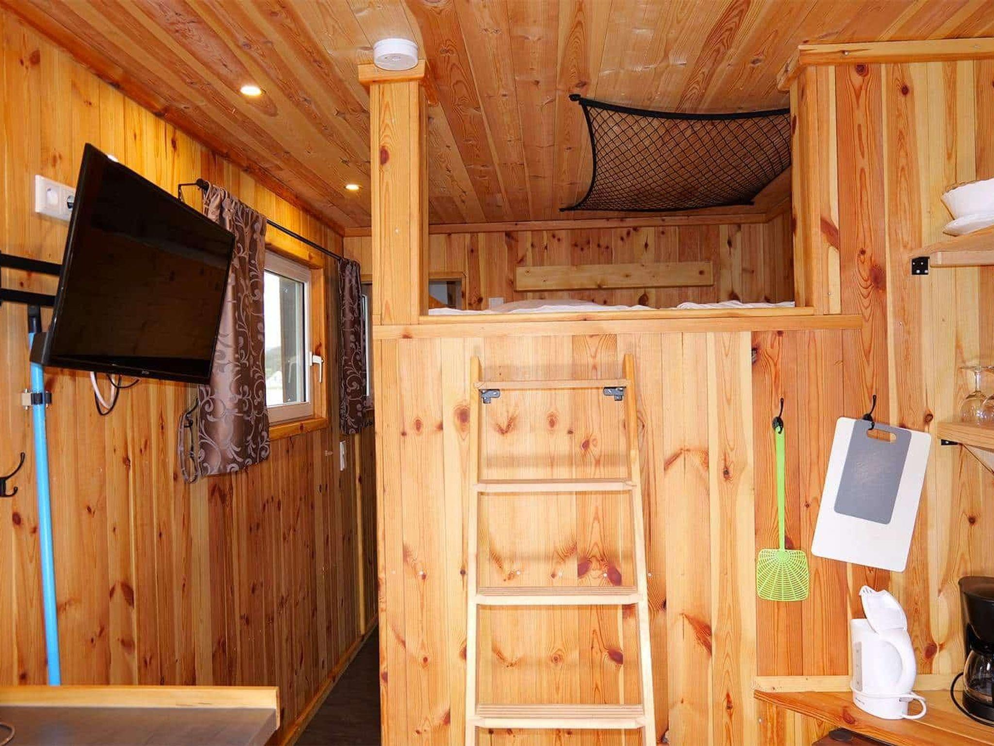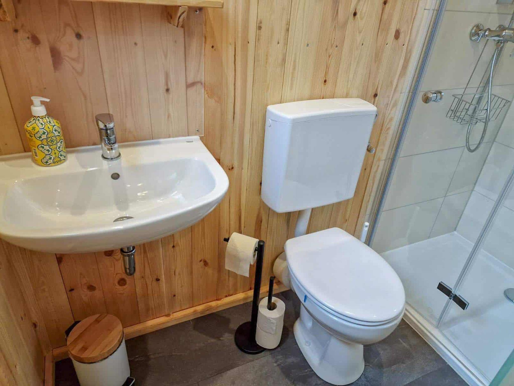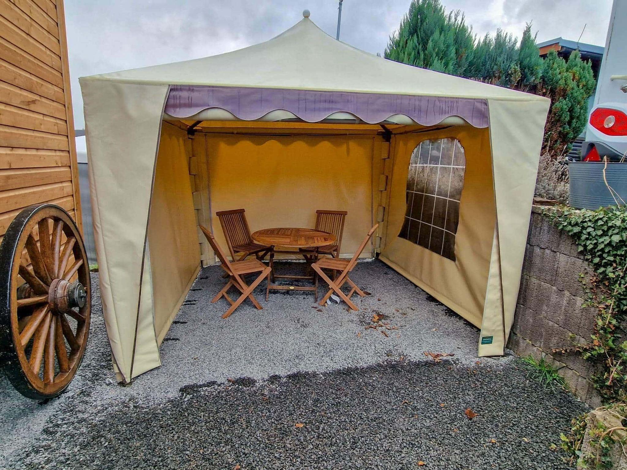 Es ist ein besonderes Projekt und eine Kreation des Teams Campingplatz Hetzingen: Im „Nideggener Bauwagen“ genießt du „Glamping“ auf die besondere Art. Du schläfst trocken und warm im Doppel-Etagenbett, profitierst von einer voll eingerichteten Küche und hast eine Dusche, ein eigenes WC und Handwaschbecken. Setze dich bequem an Bank und Tisch und schau dabei fern. Auf einer kleinen Terrasse stehen Sitzgelegenheiten für dich bereit. Ein Grill ist vor Ort und ein Grillplatz nicht weit entfernt. Ein Pavillon mit Seitenwänden schützt dich vor Wettereinflüssen. Sehr gerne kannst du deine eigene Bettwäsche und Handtücher mitbringen oder bei uns dazubuchen. Dein Fahrzeug parkst du direkt am Objekt.