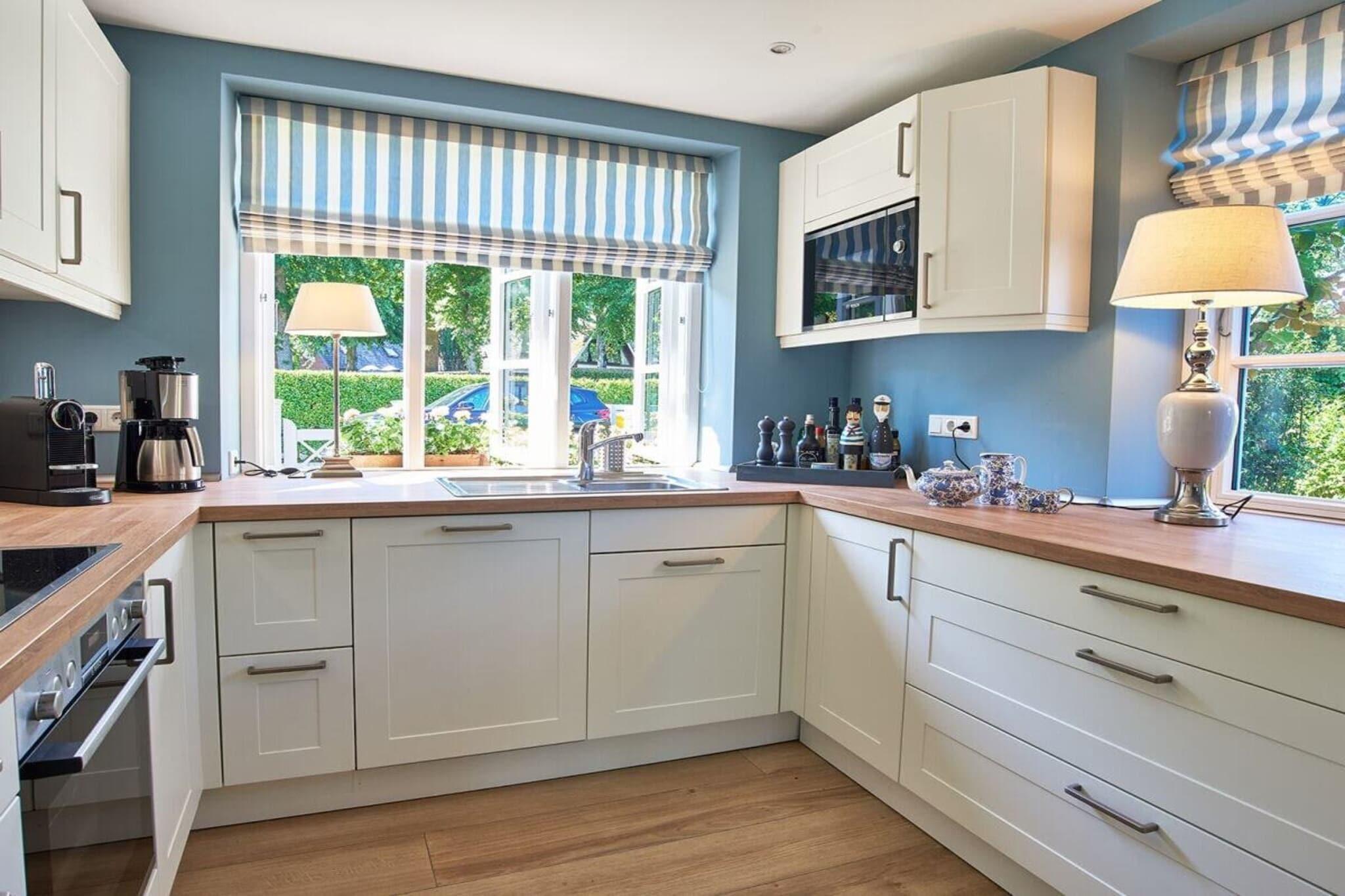 Gennem gangen – forbi brusebadet/toilettet – kommer man ind i den rummelige stue og spisestue, som er fyldt med naturligt lys takket være gulv-til-loft-vinduer og uhindret udsigt. Herfra har man også adgang til den solrige terrasse med en strandstol og sit eget private haveområde. Bagved ligger en hestemark, der sikrer en fredelig ferie med udsigt over de omkringliggende grønne områder. Sofaen og tv'et inviterer til afslapning. Den smukt designede pejs sørger for behagelig og hyggelig varme om vinteren. Hjørnebænken i spiseområdet har komfortabel plads til seks personer. Spiseområdet er let tilgængeligt fra det nye, moderne køkken (med induktionskogeplade). Ovenpå finder man to soveværelser, begge med indbyggede skabe og et tv. Soveværelset har en stor dobbeltseng; det andet soveværelse har to enkeltsenge. Begge soveværelser kan mørklægges for en god nats søvn. Saunaen og det lyse og indbydende badeværelse med en rummelig bruser giver hele familien mulighed for at starte dagen frisk. Et separat, andet brusebad i saunaområdet giver mulighed for samtidig brusning.