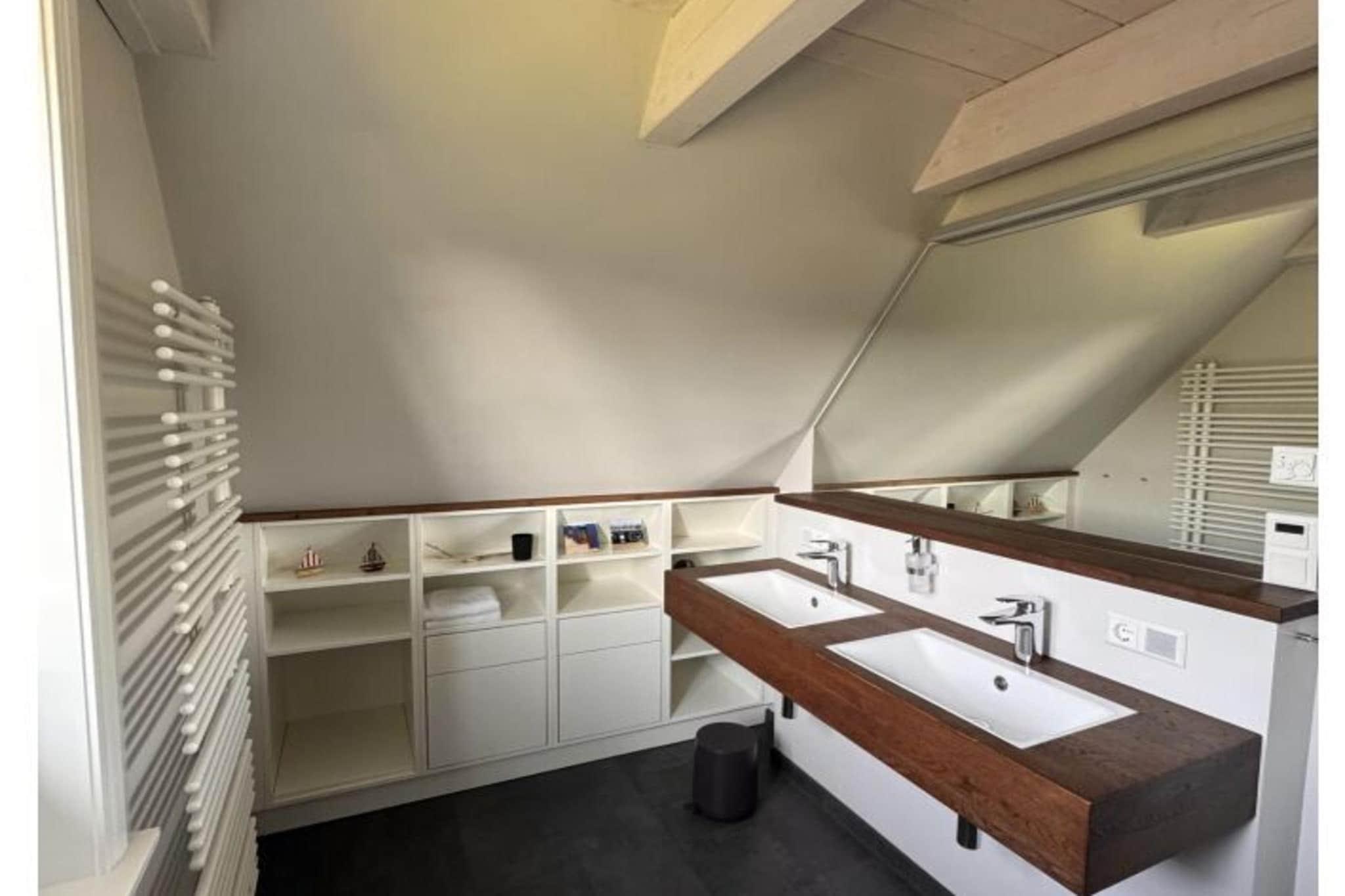 This lovingly and tastefully furnished semi-detached house features a kitchen with a dining area and adjoining living area with satellite TV and free Wi-Fi, as well as a guest toilet and entryway on the ground floor. The bedrooms, each with its own bathroom and toilet, are located on the upper floor. A washing machine and dryer are available in the basement. The apartment can accommodate a maximum of 4 people (non-smoking). Ground Floor: Entrance area with entryway, cloakroom, and guest toilet Open-plan living area with a modern kitchen, dining area, and comfortable living room Kitchen: Equipped with a ceramic hob, extractor hood, oven, and refrigerator with freezer compartment Living area with satellite TV A gas fireplace provides cozy warmth during the colder months Upper Floor: Two bedrooms with double beds (200 x 200 cm and 180 x 200 cm) Each bedroom has its own bathroom with shower and toilet Basement: Washing machine and dryer Microwave
