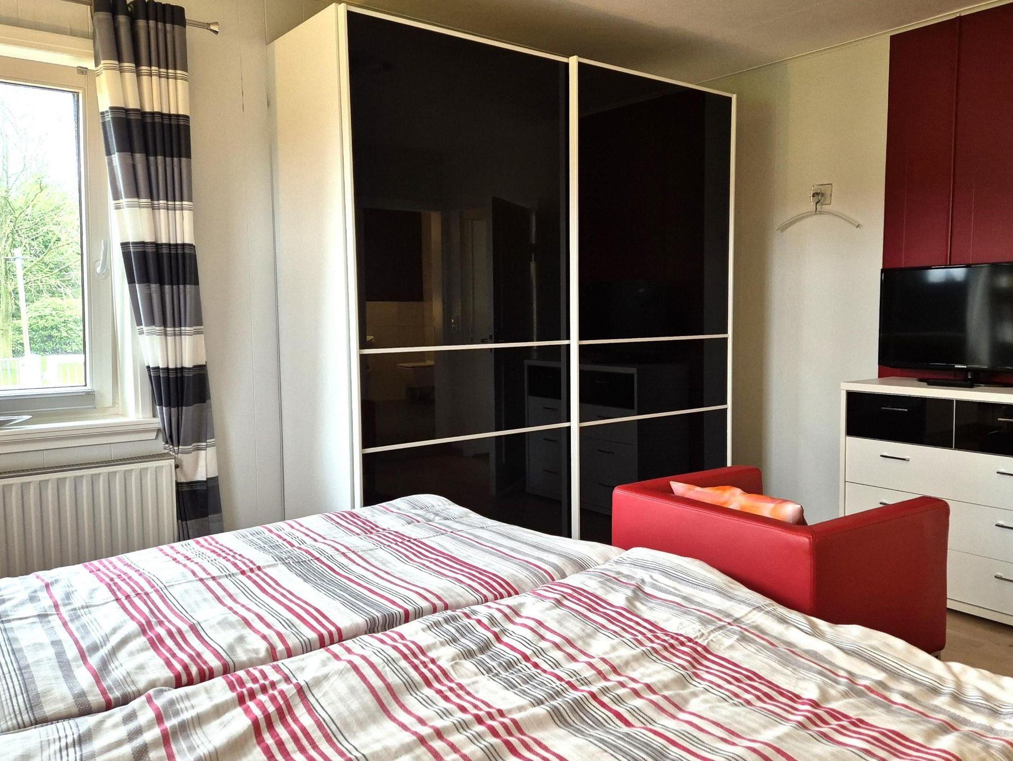 Raumaufteilung: 1 Schlafraum (1 Doppelbett), 1 Schlafraum (1 Einzelbett), 1 Wohnraum, 1 Küchenzeile, 1 Badezimmer mit Dusche.