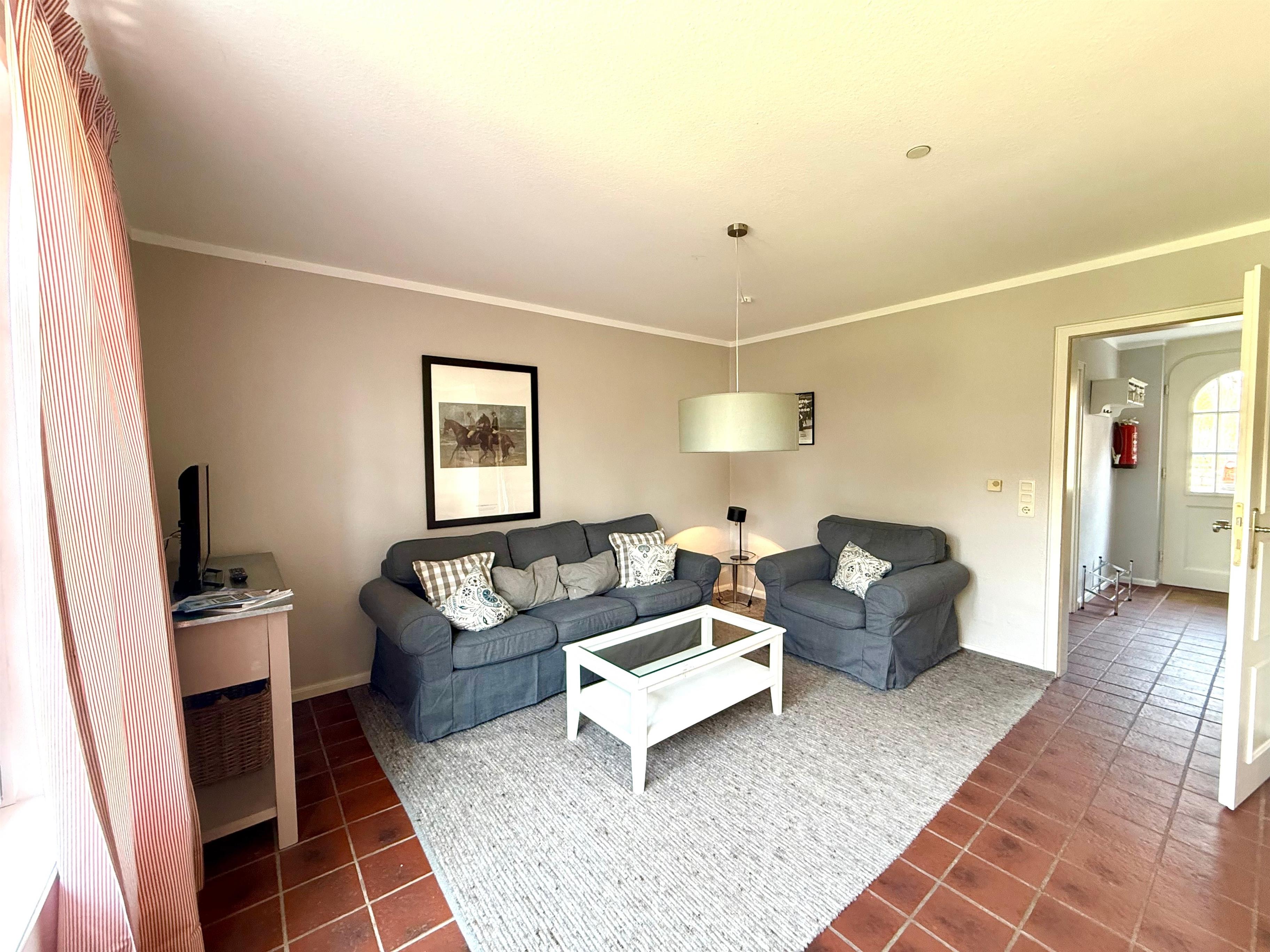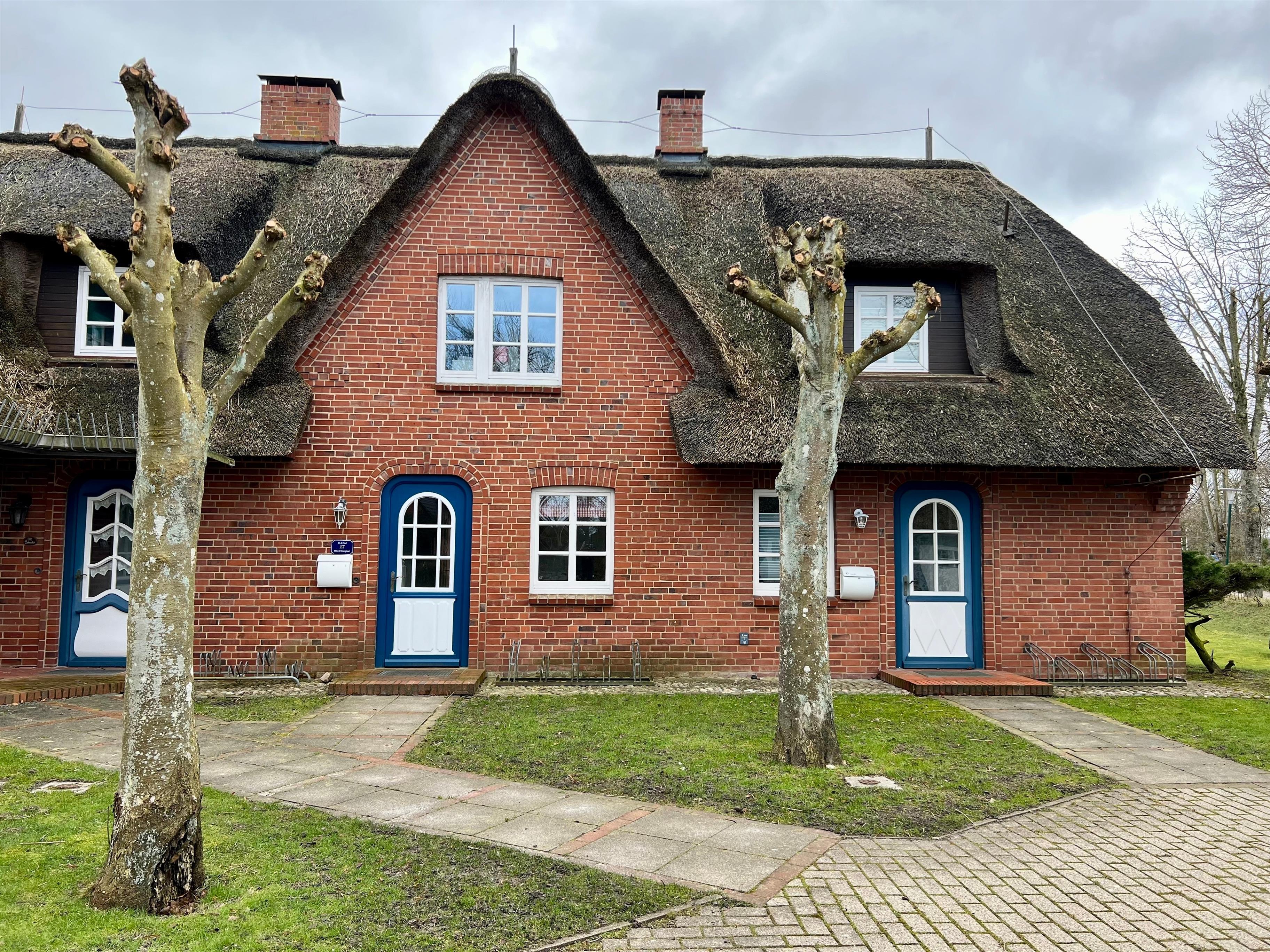 Im Dezember 2017 wurde das Haus Friesenfeuer für seine Feriengäste komplett neu ausgestattet. Auf einem sonnigen und großen Gemeinschaftsgrundstück gelegen, erstreckt sich das reedgedeckte Reihenmittelhaus über 85 Quadratmeter Wohnfläche auf zwei Etagen und bietet Platz für vier Personen plus Kleinkind. Es verfügt im Erdgeschoss über einen großzügigen und gemütlichen Wohn- und Essbereich, eine separate vollausgestattete Küche und ein geräumiges Badezimmer mit Dusche. Im Obergeschoss befindet sich ein großes Schlafzimmer mit Doppelbett, ein Kinderzimmer mit Etagenbett und ein weiteres Badezimmer mit Badewanne und kostenfrei nutzbarer Waschmaschine. Der ausgebaute Dachbereich kann als Abstellraum oder Spielzimmer für Kinder genutzt werden. Die sonnige Südwestterrasse mit zugehörigem gepflegten Garten lädt zum Verweilen ein. Ein Kfz-Stellplatz sowie eine geschützte Abstellmöglichkeit für Fahrräder befinden sich ebenfalls auf dem Grundstück.