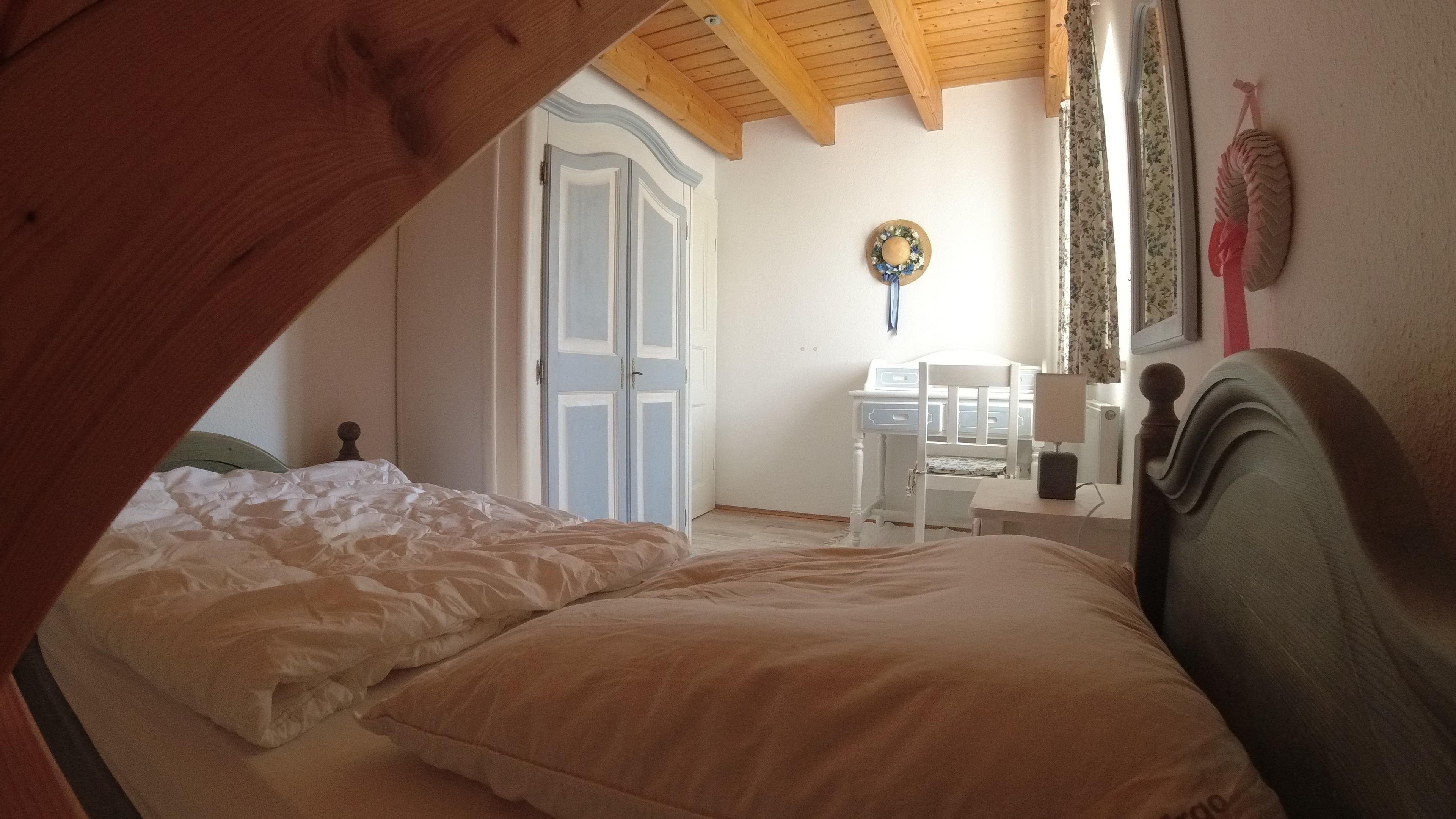 Im Dachgeschoss befindet sich ein Schlafzimmer mit einem Doppelbett.