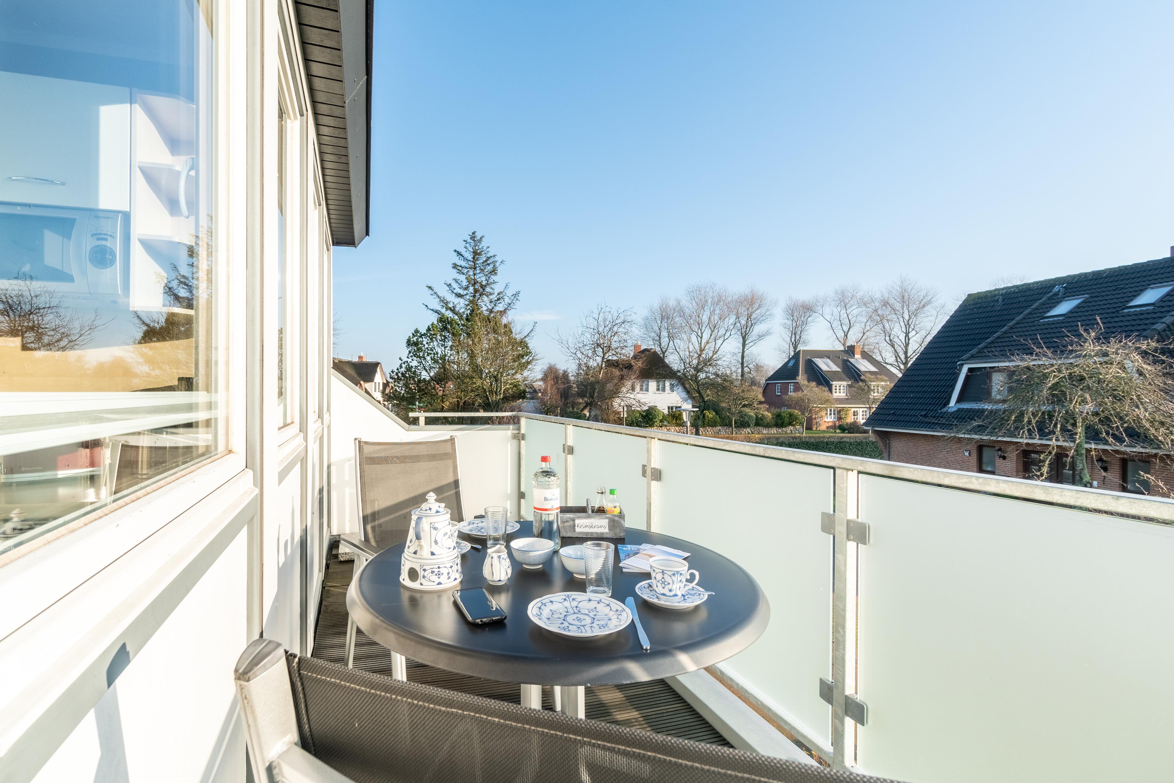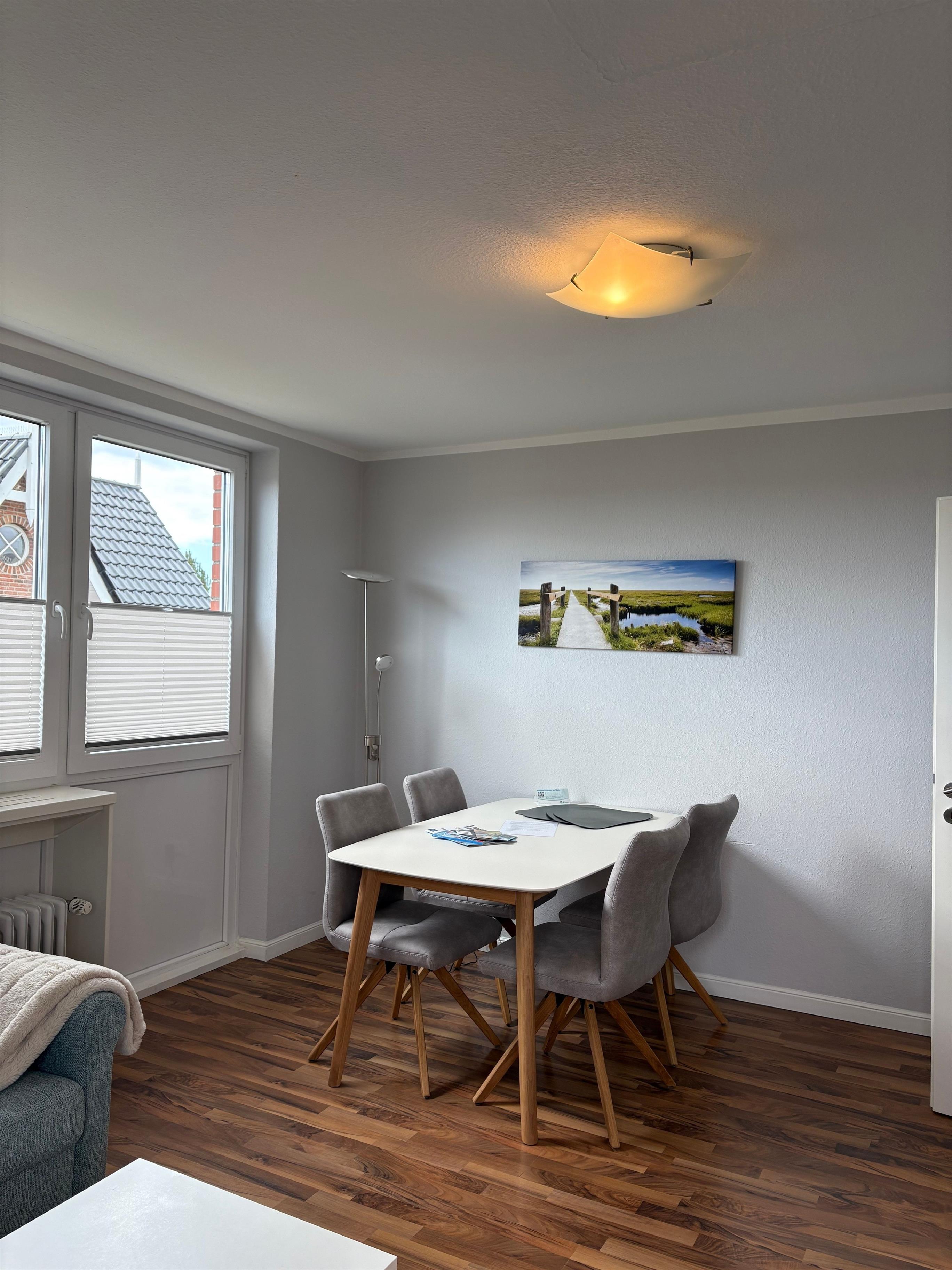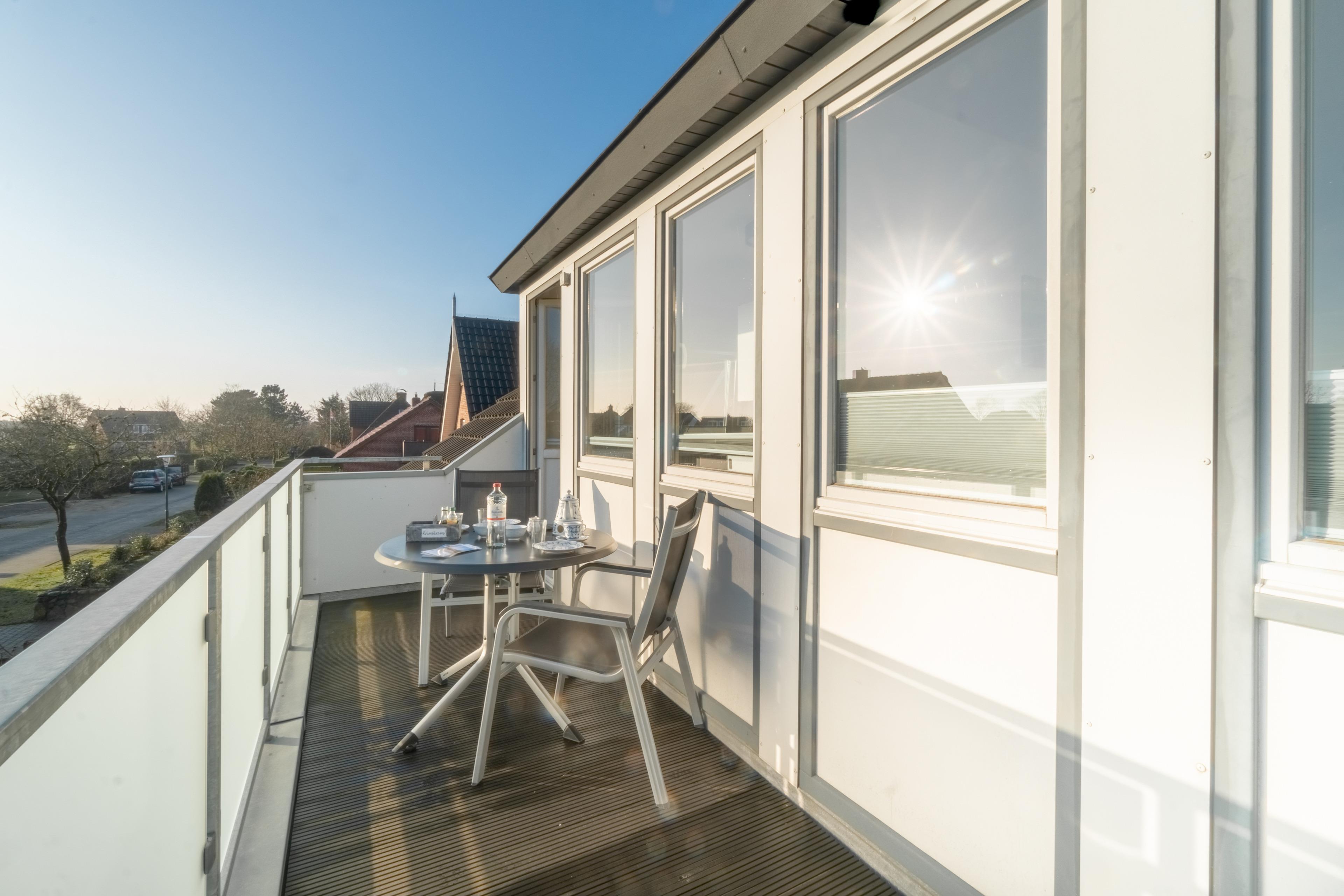Die Wohnung liegt im Obergeschoss links und bietet Platz für bis zu 4 Personen. Sie hat einen Zugang zum Ost-/ Südbalkon.