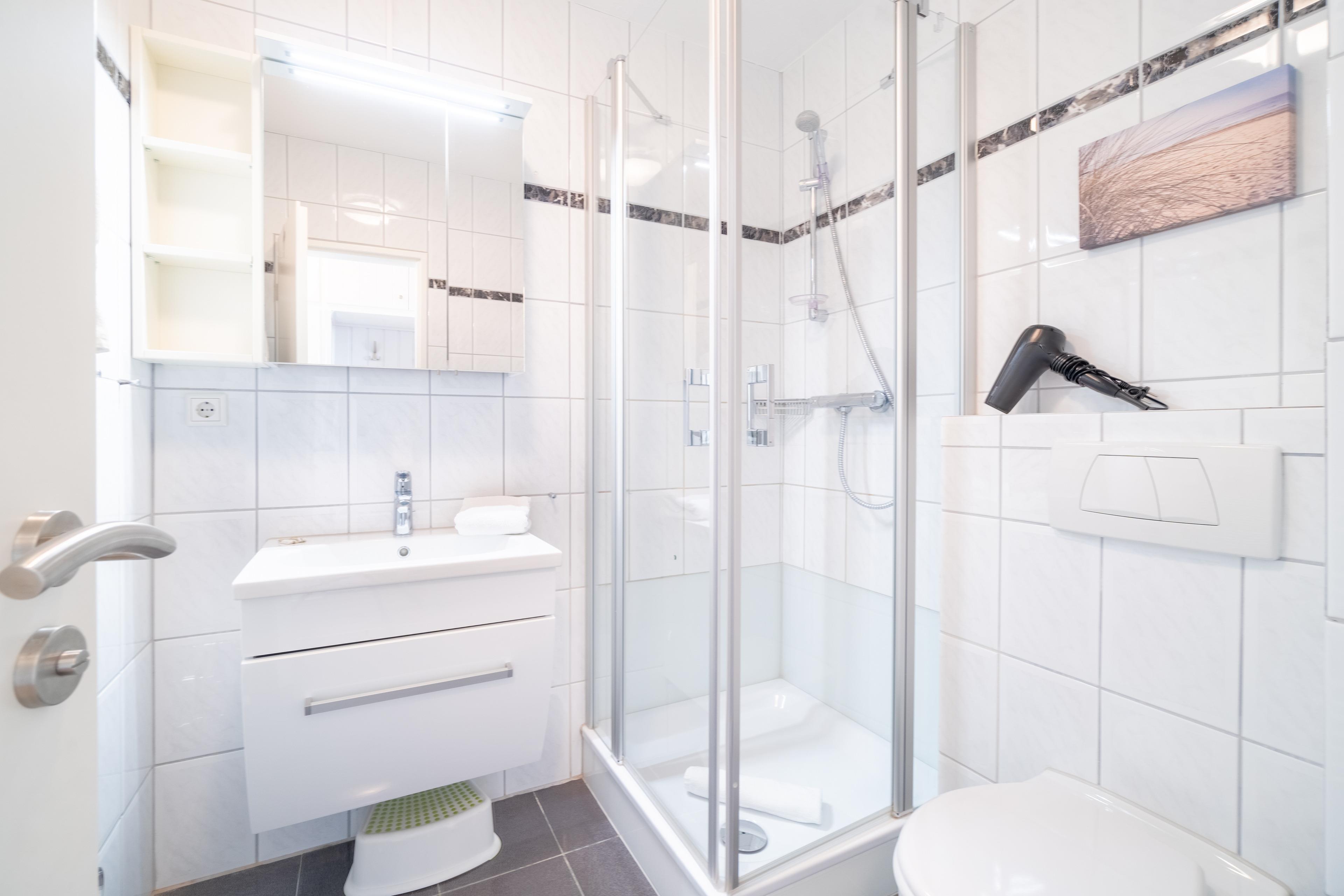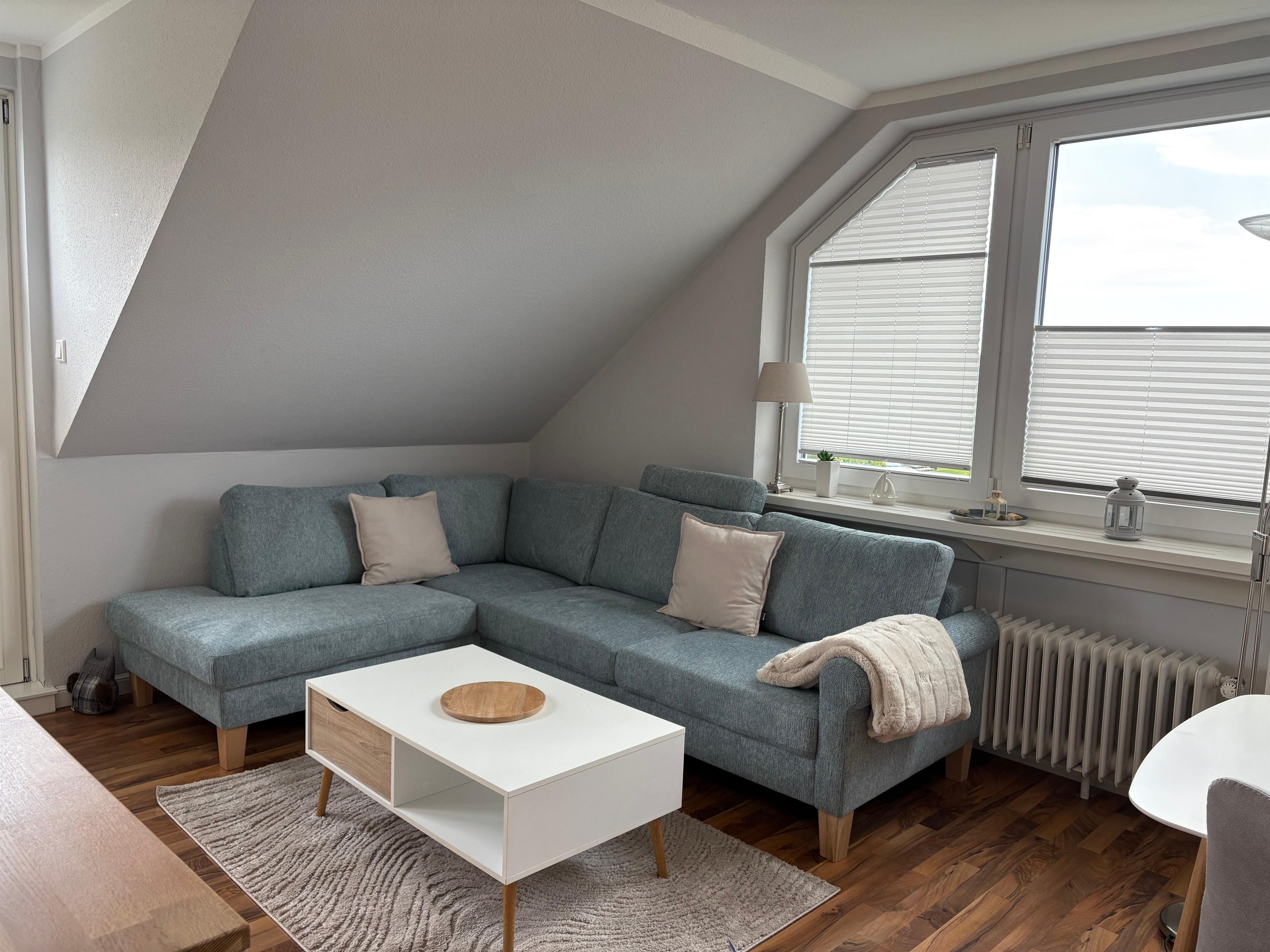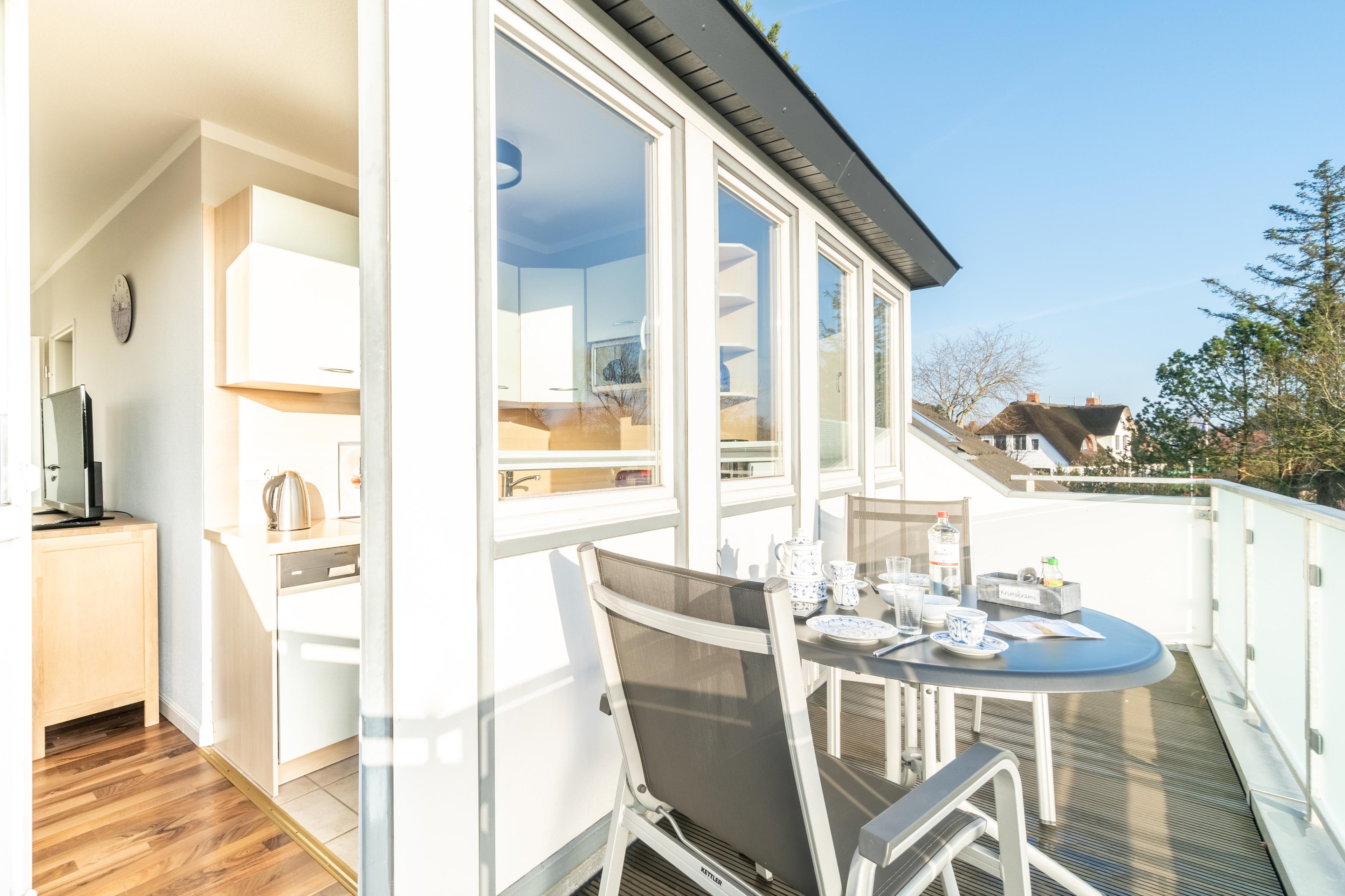 Die Wohnung liegt im Obergeschoss links und bietet Platz für bis zu 4 Personen. Sie hat einen Zugang zum Ost-/ Südbalkon.