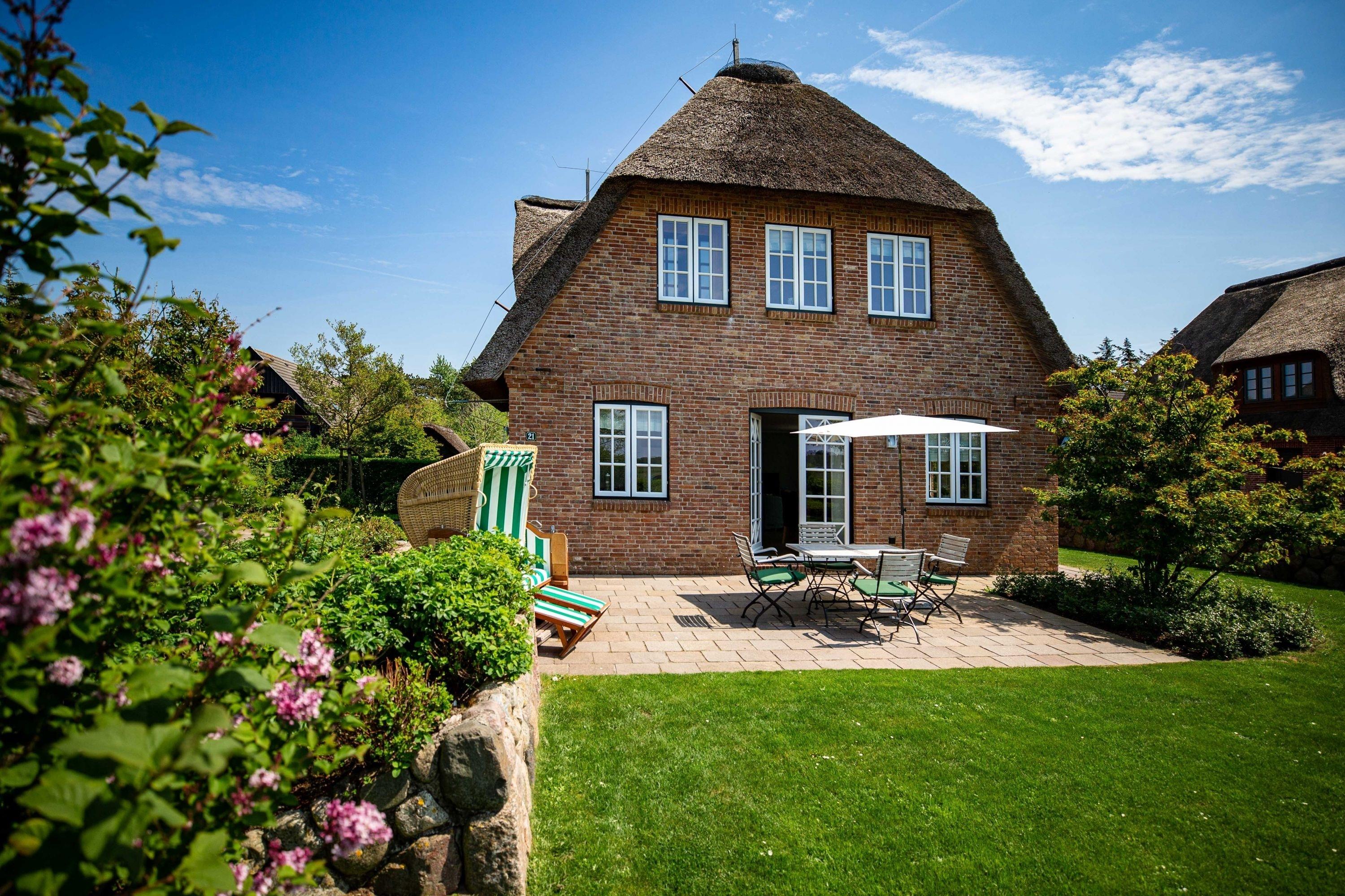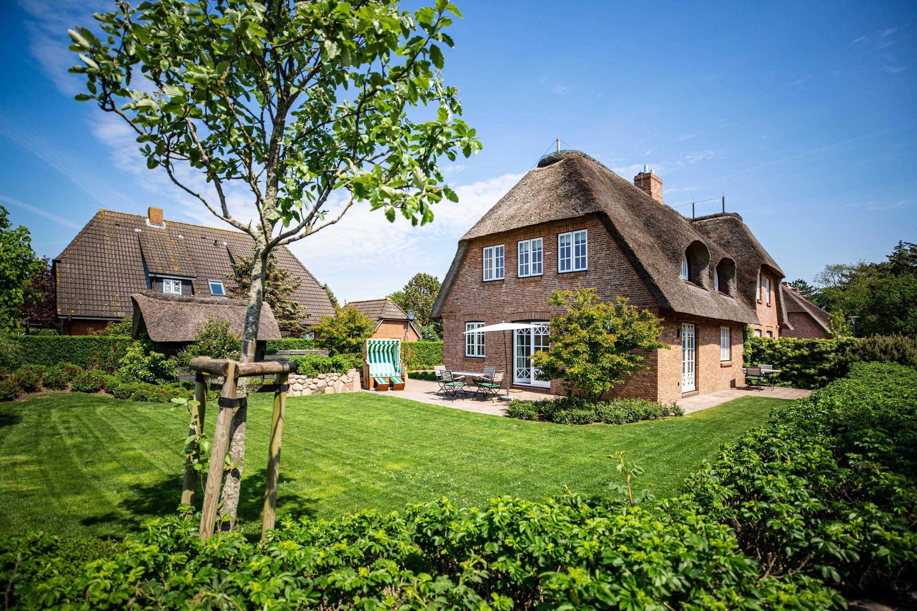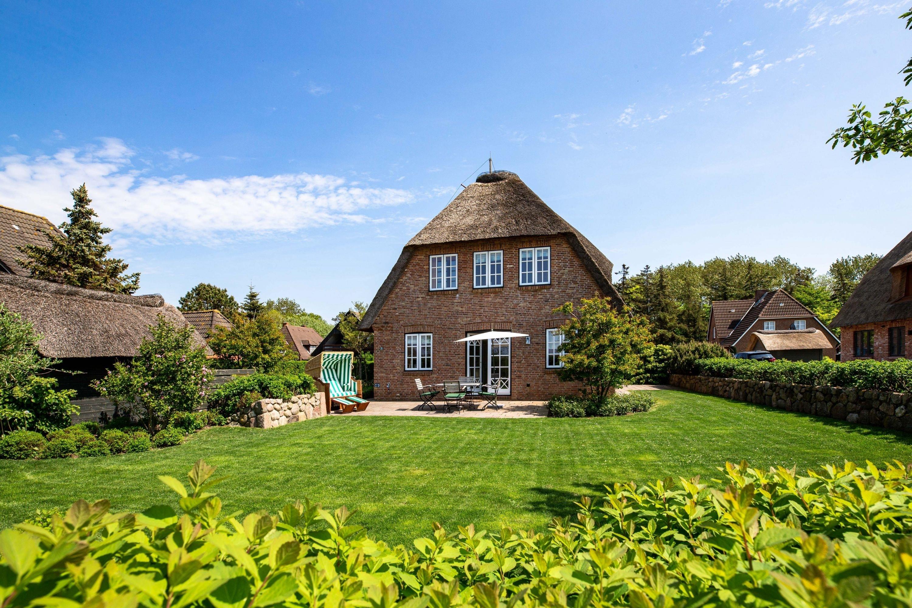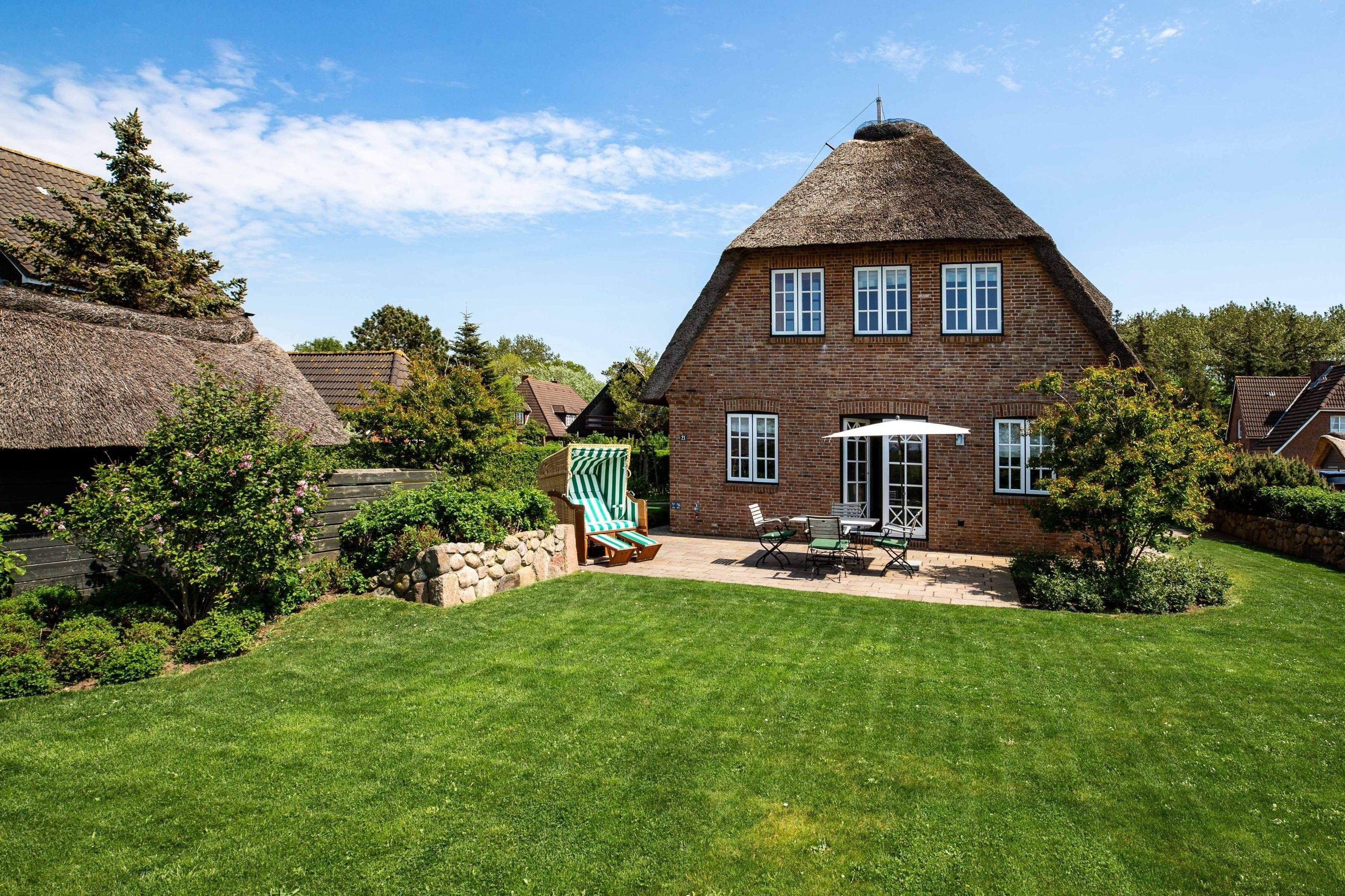 Unser Haus Birdie ist ein typisches Friesenhaus mit sehr schöner Architektur. Eine Summe schöner Details wie Holzsprossenfenster, Reetdacheindeckung, liebevoll ausgewählte Möbelstücke und eine Ausstattung mit schönen Fliesen und Holzarbeiten runden den perfekten Eindruck ab. Im Obergeschoss erwartet Sie ihre persönliche "Wellnessoase" mit Badewanne, Dusche und Sauna. Genau das Richtige auch für die kalte Jahreszeit. Genießen Sie den großen Garten mit Gartenhaus, Liegestühlen und die zwei Terrassen zu jeder Zeit. Das Doppelhaus ist ruhig gelegen, und mit dem Fahrrad sind Sie in wenigen Minuten am Sandstrand von Nieblum. Dem Zauber und Charme von Nieblum ist bisher jeder Gast erlegen. Es ist wohl das schönste Dorf auf Föhr und eines der schönsten Dörfer in Schleswig-Holstein.