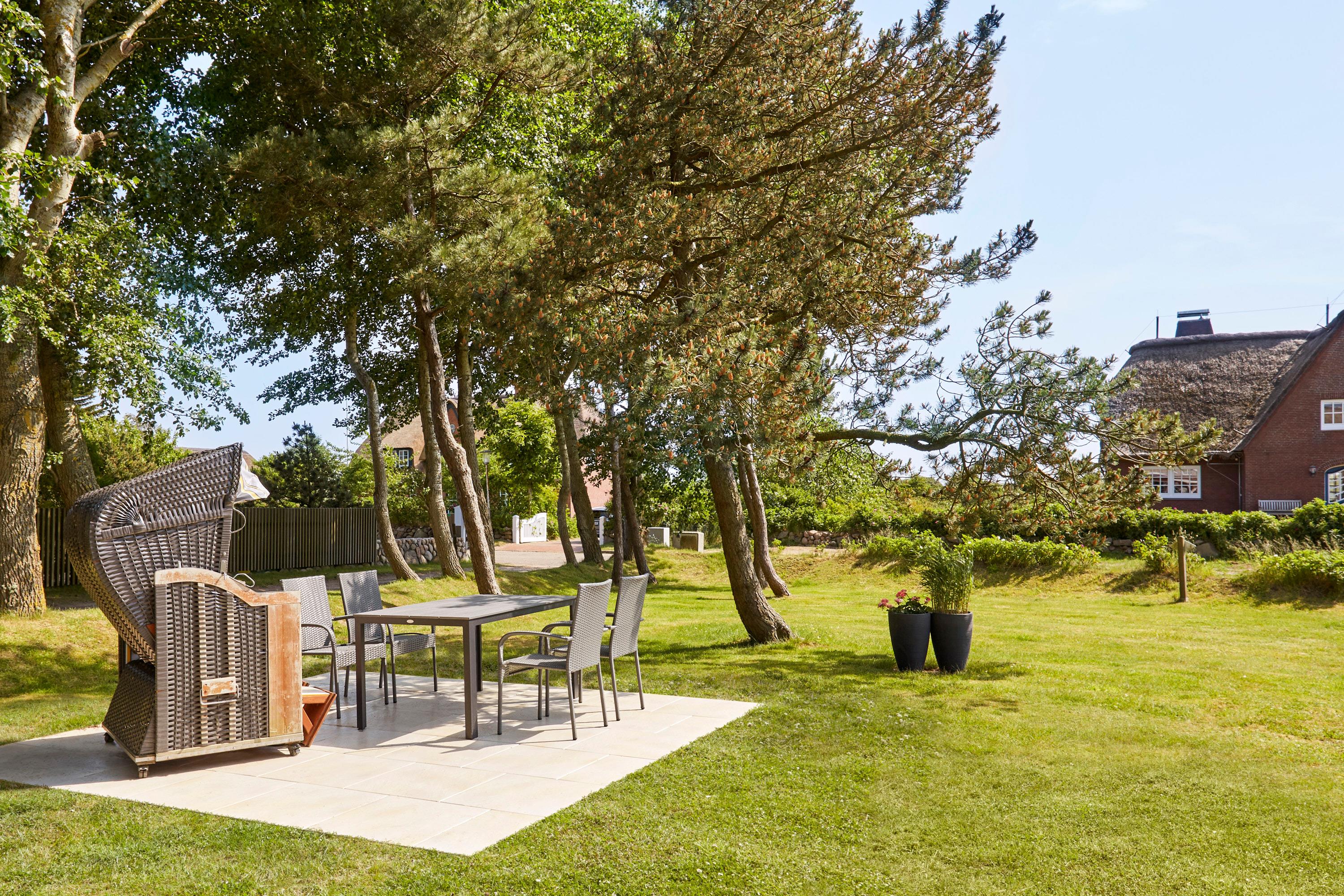 Die Wohnung liegt im Bredland, in einer ruhigen Straße mit Reetdachhäusern. Von hier aus sind Einkaufsmöglichkeiten, Restaurants und Cafés mit dem Fahrrad oder dem Auto bequem in kurzer Zeit erreichbar. Ein kurzer Dünenweg führt direkt hinter dem Grundstück zum Strand - beim Morgenkaffee können Sie die Halligen sehen und die vorbeifahrenden Fähren beobachten. Oder haben Sie Lust, eine Runde Golf mit Nordsee-Flair zu spielen? Ein kurzer Spaziergang führt Sie zum Golfplatz Föhr (etwa 1 km).