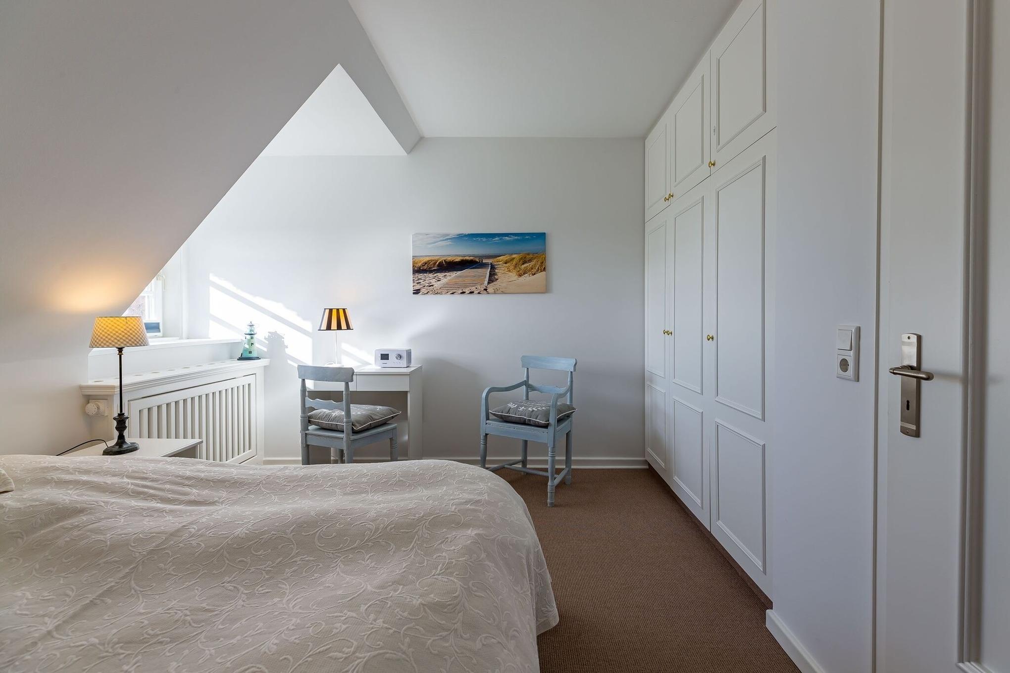 Urlaub im Möwenblick mit Meerblick. Erleben Sie traumhafte Urlaubtage in diesem schönen Hausteil, mit eigener Haustür mittig gelegen in einem Reetdachlanghaus. Die Terrasse hat eine Südausrichtung, und aus dem Schlafzimmer im Obergeschoss blicken Sie auf das Meer und die Halligen. Hier ist Entspannung garantiert. Morgens werden Sie vielleicht schon von der Meeresbrise geweckt. Der Wohnbereich öffnet sich zur Terrasse und am besten man startet den Tag schon draussen mit einem ausgiebigen Frühstück und plant den Tag. Durch die Nähe zum Wasser wird der abendliche Spaziergang bestimmt zu einem Ritual.