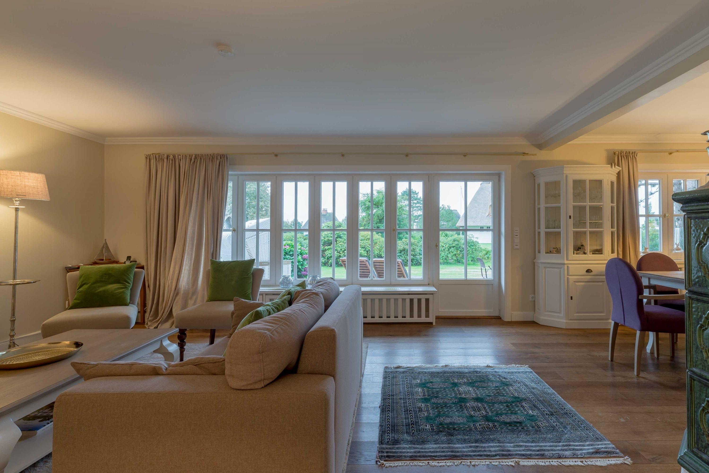 Herzlich willkommen in unserem Haus Greveling. Das mit Reet gedeckte Einzelhaus steht in absoluter Spitzenlage zwischen Nieblum und Wyk in unmittelbarer Nähe zum Meer und nur wenige Schritte vom schönsten Golfplatz Schleswig Holsteins entfernt. Der exklusive Ortsteil Greveling besteht aus wenigen Einzelhäusern unter Reet, die fast alle auf eigenen kleinen Warften in exponierter Lage direkt an der Nordsee liegen. Hier wohnen Sie einzigartig auf Föhr. Genießen Sie den hohen Komfort und die Großzügigkeit der lichtdurchfluteten Räume in Ihrem Reethaus. Die geschmackvolle Einrichtung begeistert und der herrliche, zur Nordsee liegende Garten verleitet zum Träumen. Besuchen Sie uns und genießen Sie eine herrliche Urlaubszeit.