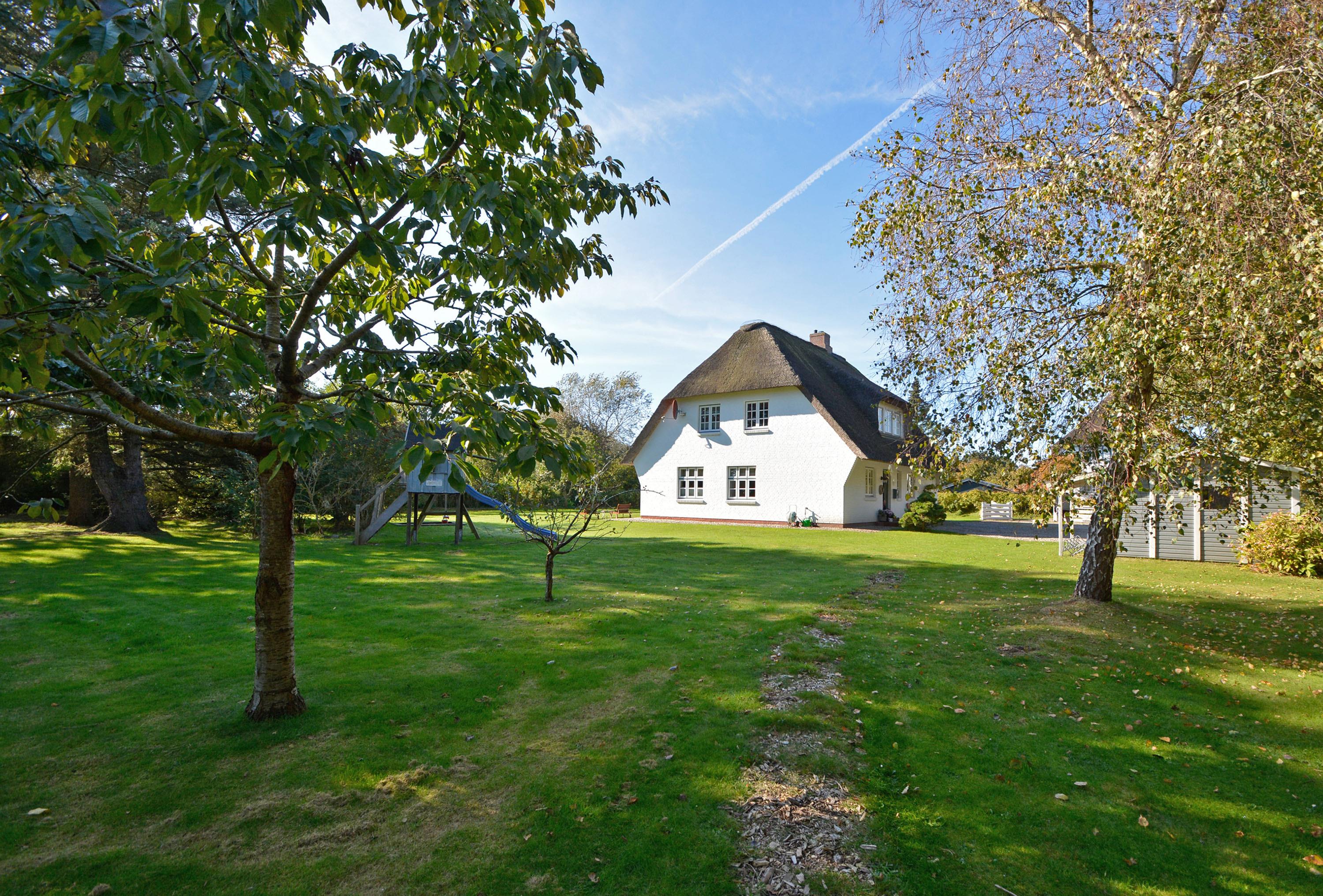 Herzlich willkommen in unserem Hüs Bredlun. Das Einzelhaus liegt im Ortsteil Bredland zwischen Nieblum und Wyk in unmittelbarer Nähe zum Meer und nur wenige Schritte vom schönsten Golfplatz Schleswig Holsteins entfernt. Hier wohnen Sie in einer einzigartigen Lage auf Föhr. Genießen Sie den hohen Komfort und die Großzügigkeit der lichtdurchfluteten Räume in Ihrem Reethaus. Die geschmackvolle Einrichtung wird Sie begeistern. Der herrliche, zur Nordsee liegende Garten mit über 2.000 qm verleitet zum Träumen. Ein kleiner Hauspfad durch das angrenzende Wäldchen führt Sie direkt zum Meer. Besuchen Sie uns und genießen Sie eine herrliche Urlaubszeit.