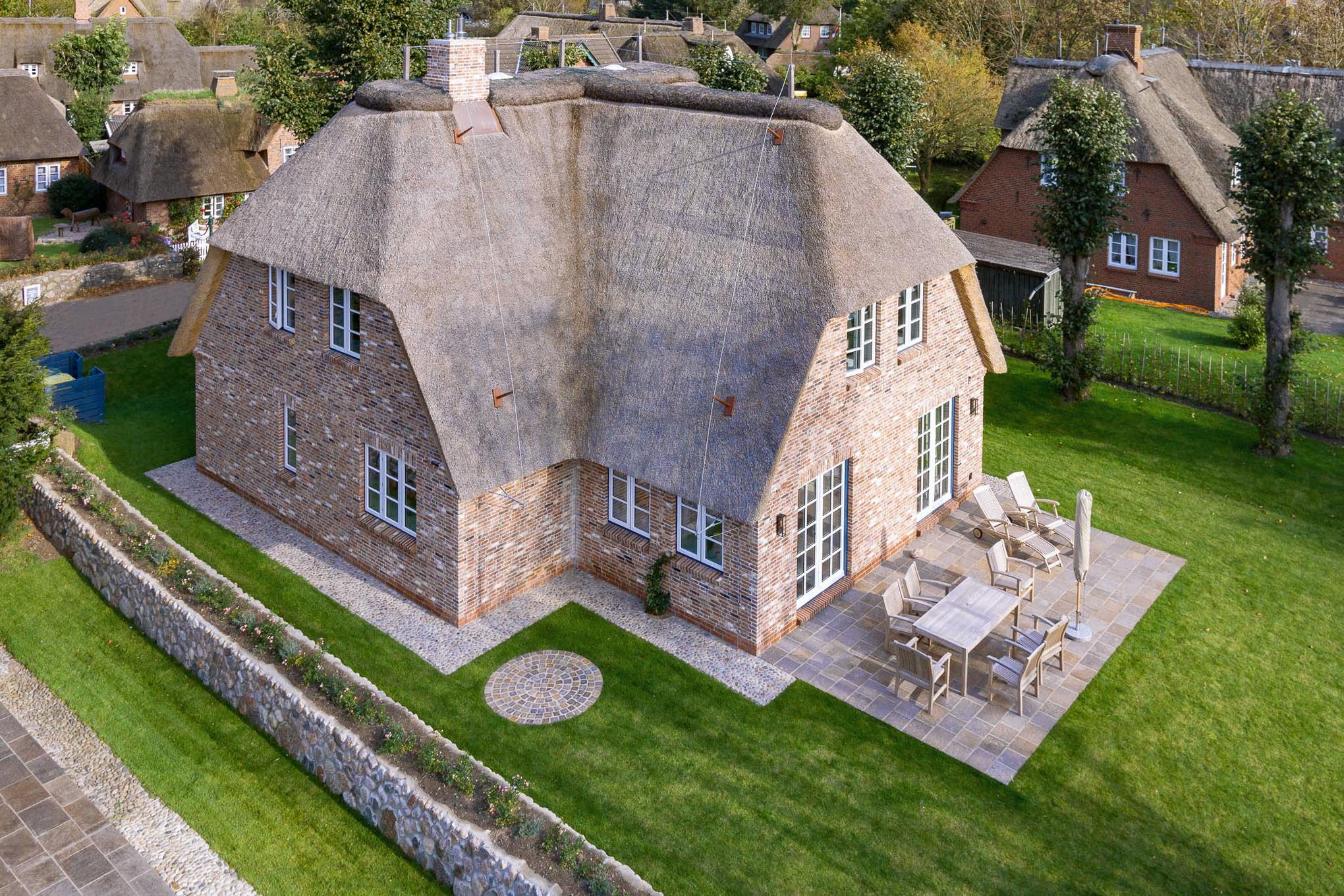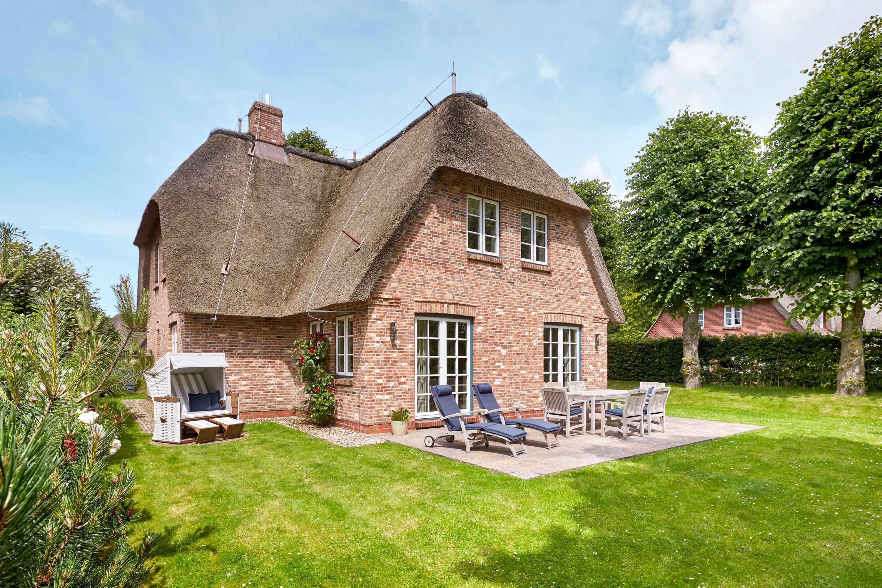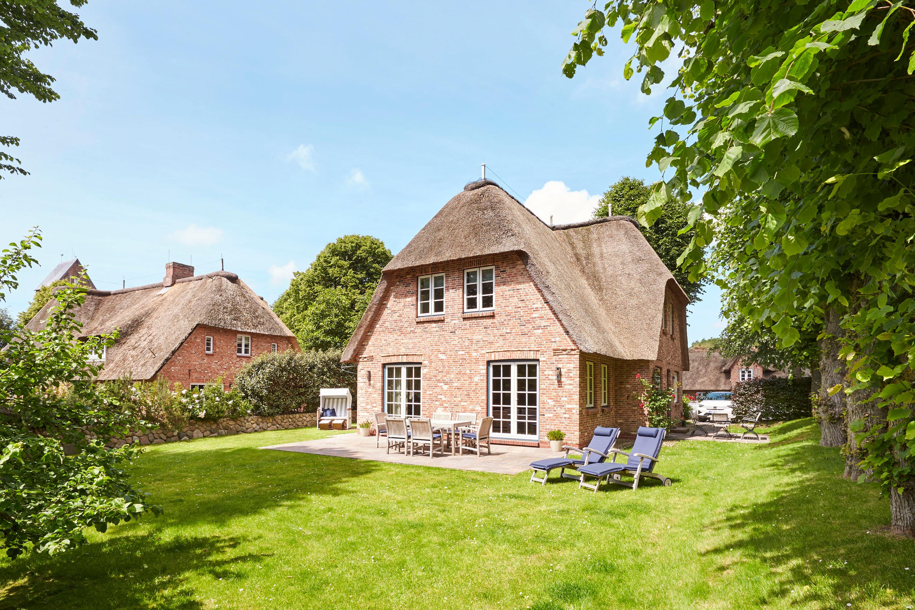 Unser exklusives, mit viel Liebe zum Detail eingerichtete Reetdachhaus mit einer Mischung aus Gemütlichkeit und Moderne lässt keine Wünsche offen. Aus jedem Fenster haben Sie den Blick auf ein wahres friesisches Postkartenmotiv. Das Haus liegt im wunderschönen Ort Nieblum in unmittelbarer Nachbarschaft der alten Kapitänshäuser. Nur wenige Gehminuten entfernt befinden sich schöne Restaurants, gemütliche Kneipen und Einkaufsmöglichkeiten. Der herrliche Nieblumer Sandstrand mit Surfschule ist bequem mit dem Fahrrad oder auch zu Fuß zu erreichen und bietet vielfältige Möglichkeiten zur Entspannung. Auch zum Golfplatz fahren Sie nur ein kurzes Stück. Der große Garten mit 2 Terrassen und die traumhafte Lage des Hauses mit Blick ins Grüne bieten Ihnen ein erholsames Umfeld, welches Sie selbst auf der Insel Föhr nicht oft finden.