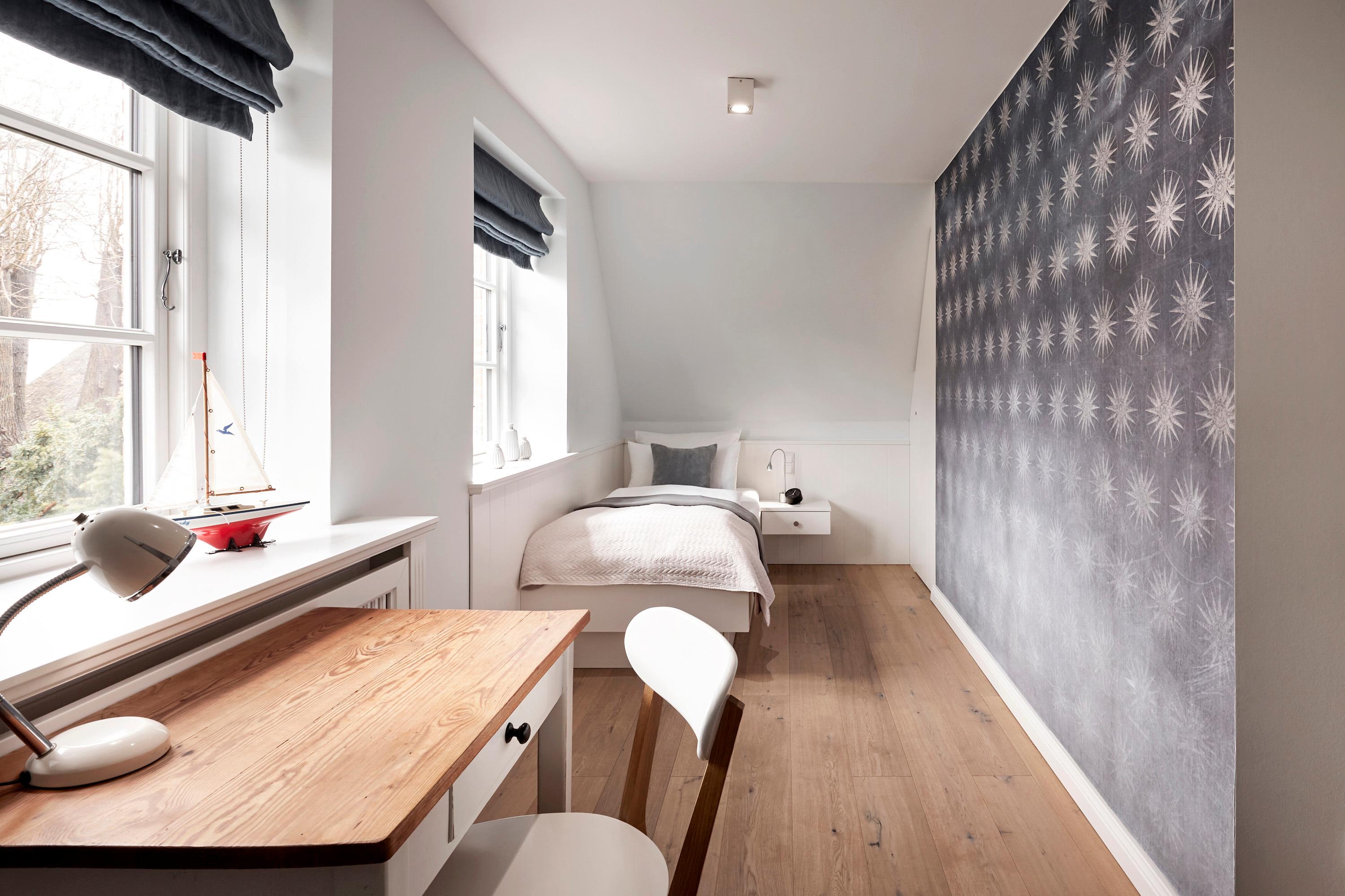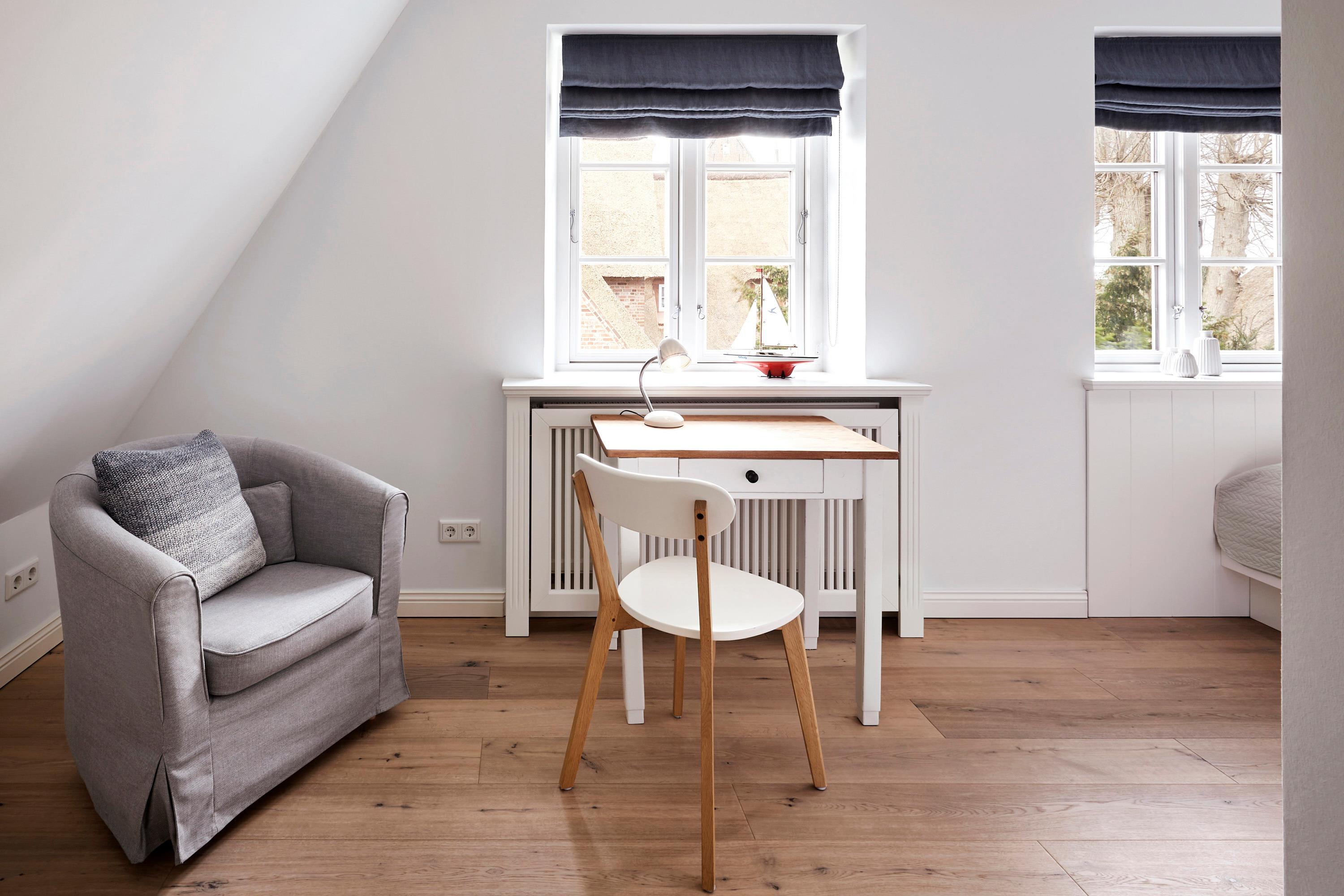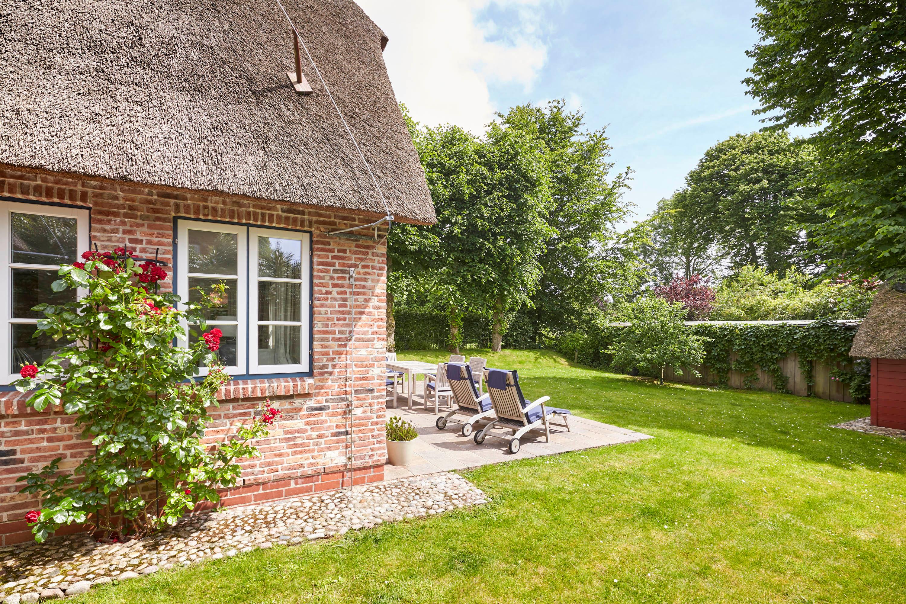 Unser exklusives, mit viel Liebe zum Detail eingerichtete Reetdachhaus mit einer Mischung aus Gemütlichkeit und Moderne lässt keine Wünsche offen. Aus jedem Fenster haben Sie den Blick auf ein wahres friesisches Postkartenmotiv. Das Haus liegt im wunderschönen Ort Nieblum in unmittelbarer Nachbarschaft der alten Kapitänshäuser. Nur wenige Gehminuten entfernt befinden sich schöne Restaurants, gemütliche Kneipen und Einkaufsmöglichkeiten. Der herrliche Nieblumer Sandstrand mit Surfschule ist bequem mit dem Fahrrad oder auch zu Fuß zu erreichen und bietet vielfältige Möglichkeiten zur Entspannung. Auch zum Golfplatz fahren Sie nur ein kurzes Stück. Der große Garten mit 2 Terrassen und die traumhafte Lage des Hauses mit Blick ins Grüne bieten Ihnen ein erholsames Umfeld, welches Sie selbst auf der Insel Föhr nicht oft finden.