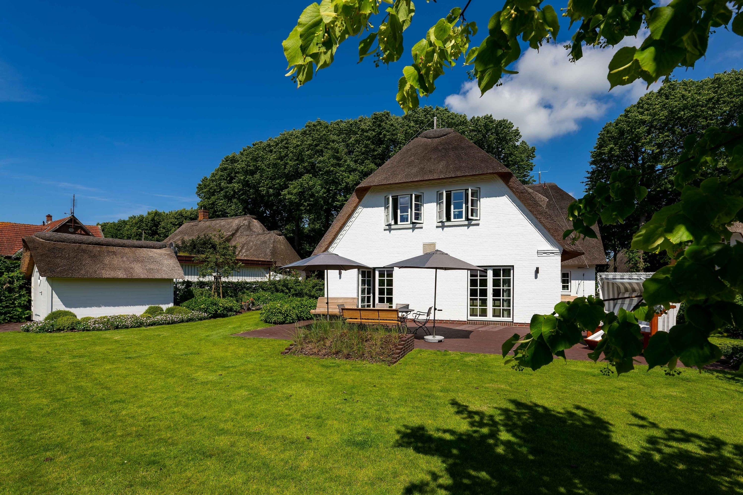 Das Haus ist ein echtes Schmuckstück und bietet abgewandt von der Straße im Südwesten einen großen eingefriedeten Garten mit umlaufender Frühstücks- und Sonnenterasse. Zum Entspannen stehen dort Bänke und andere Sitzgelegenheiten mit einem großen Gartentisch zur Verfügung. Der Strandkorb lädt zum herrlichen Sonnenbaden ein. Eine automatische Bewässerung, die nachts angesteuert wird, lässt die Pflanzen gedeihen.