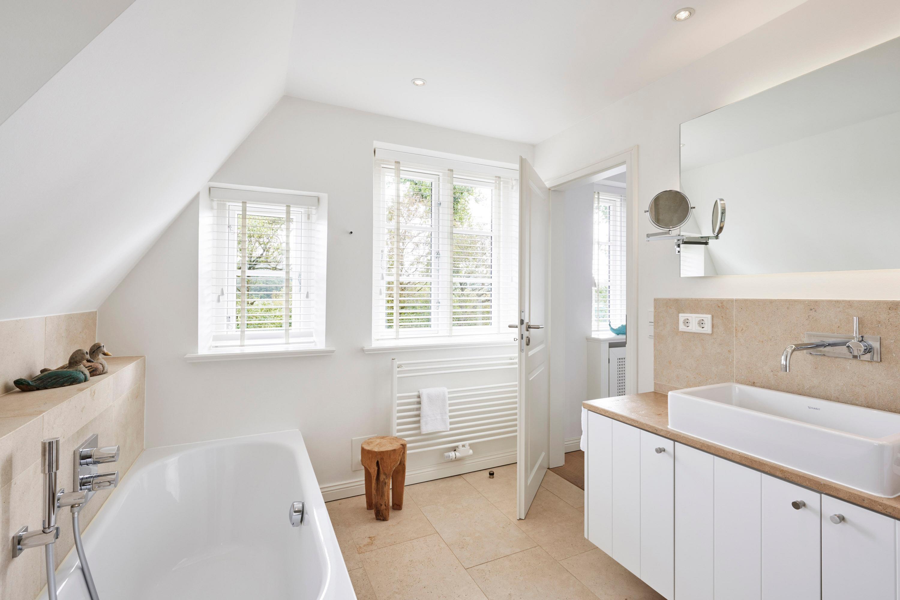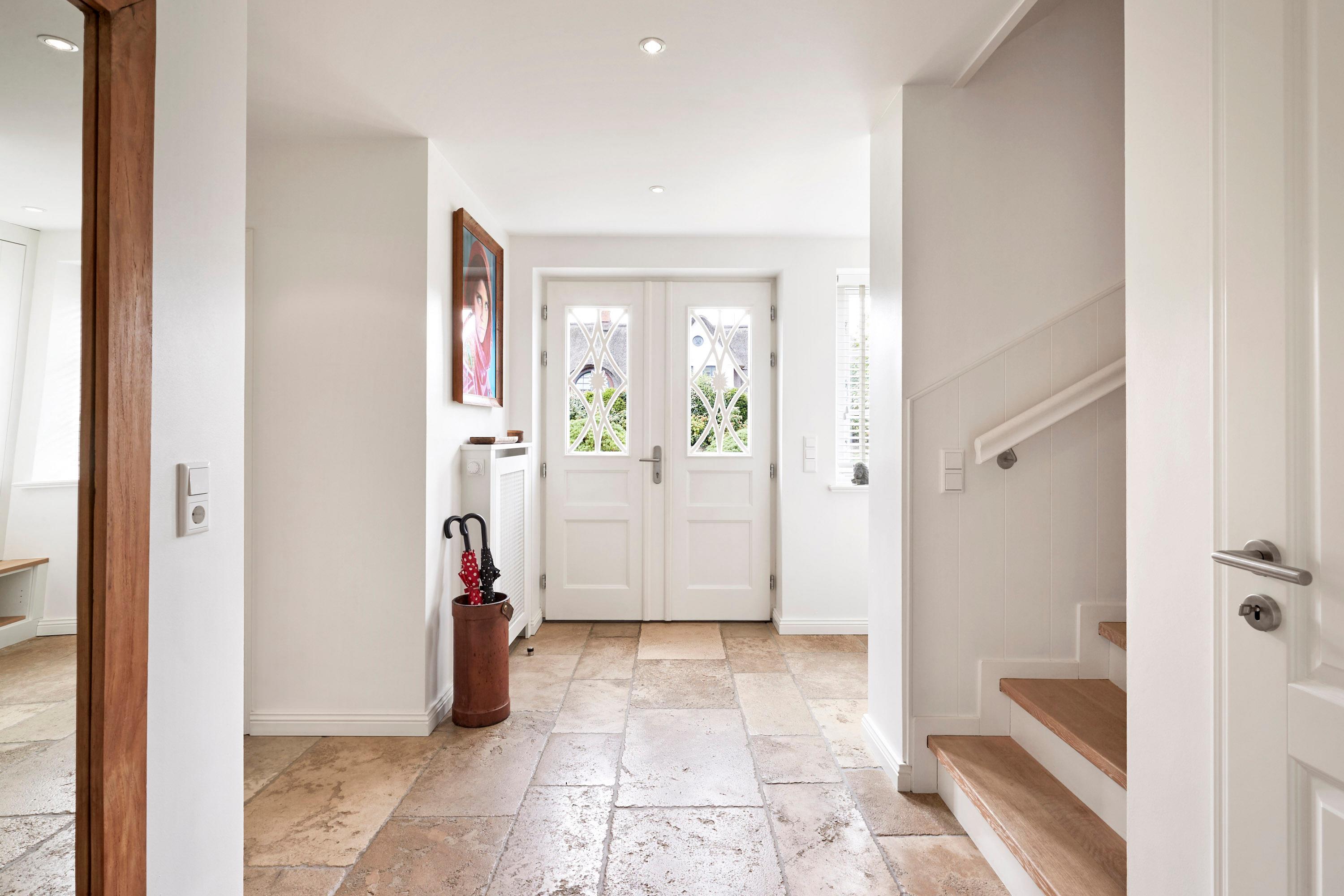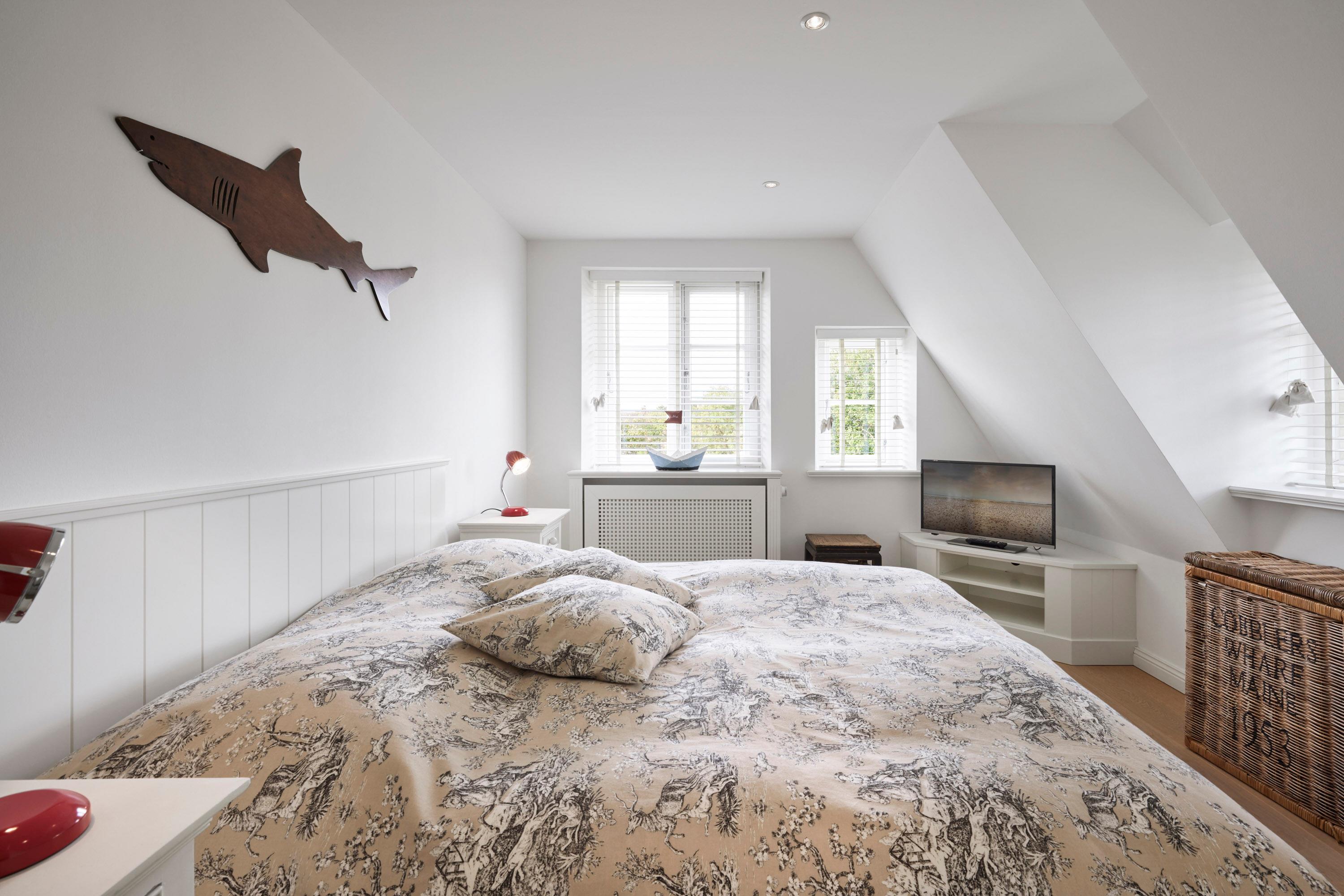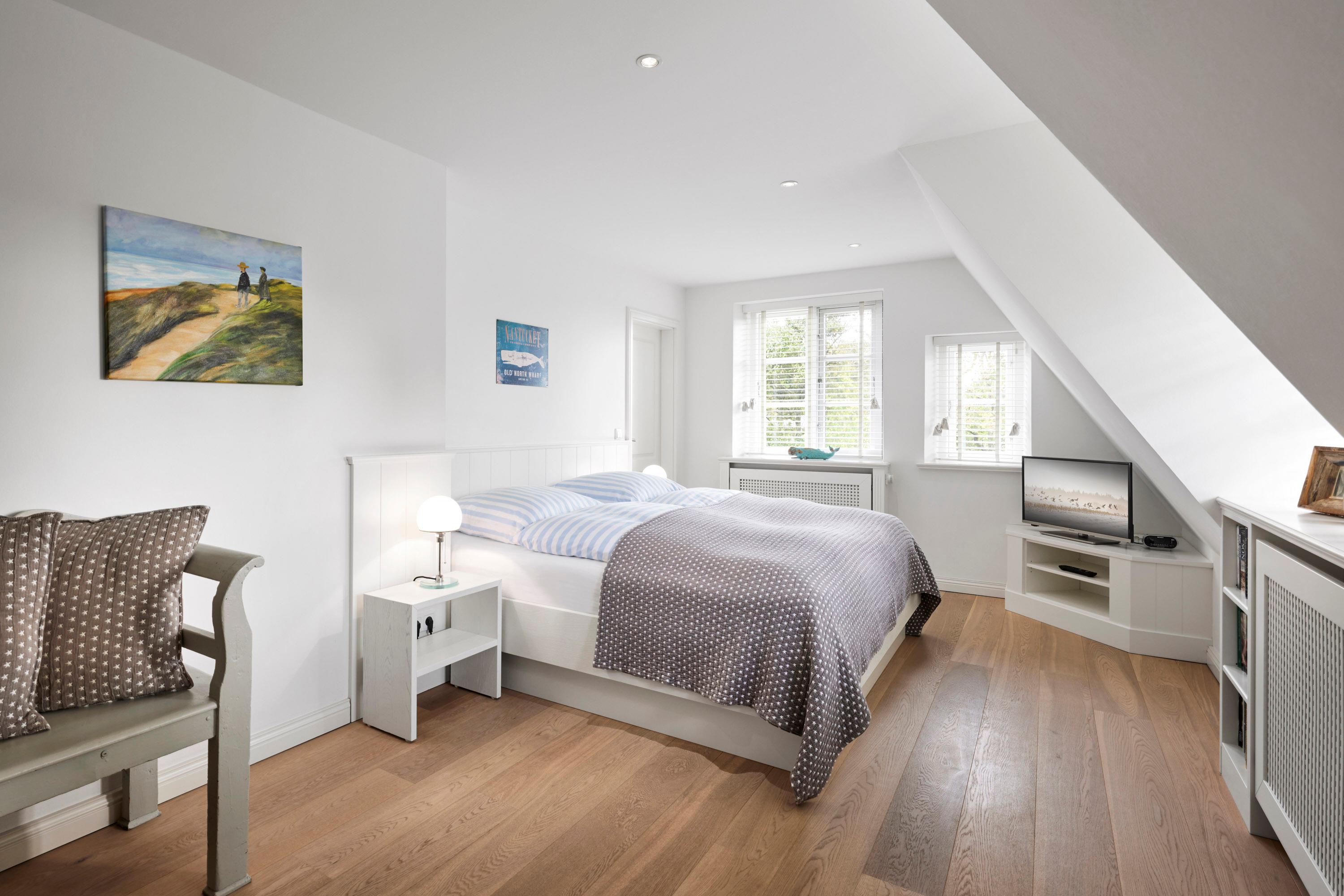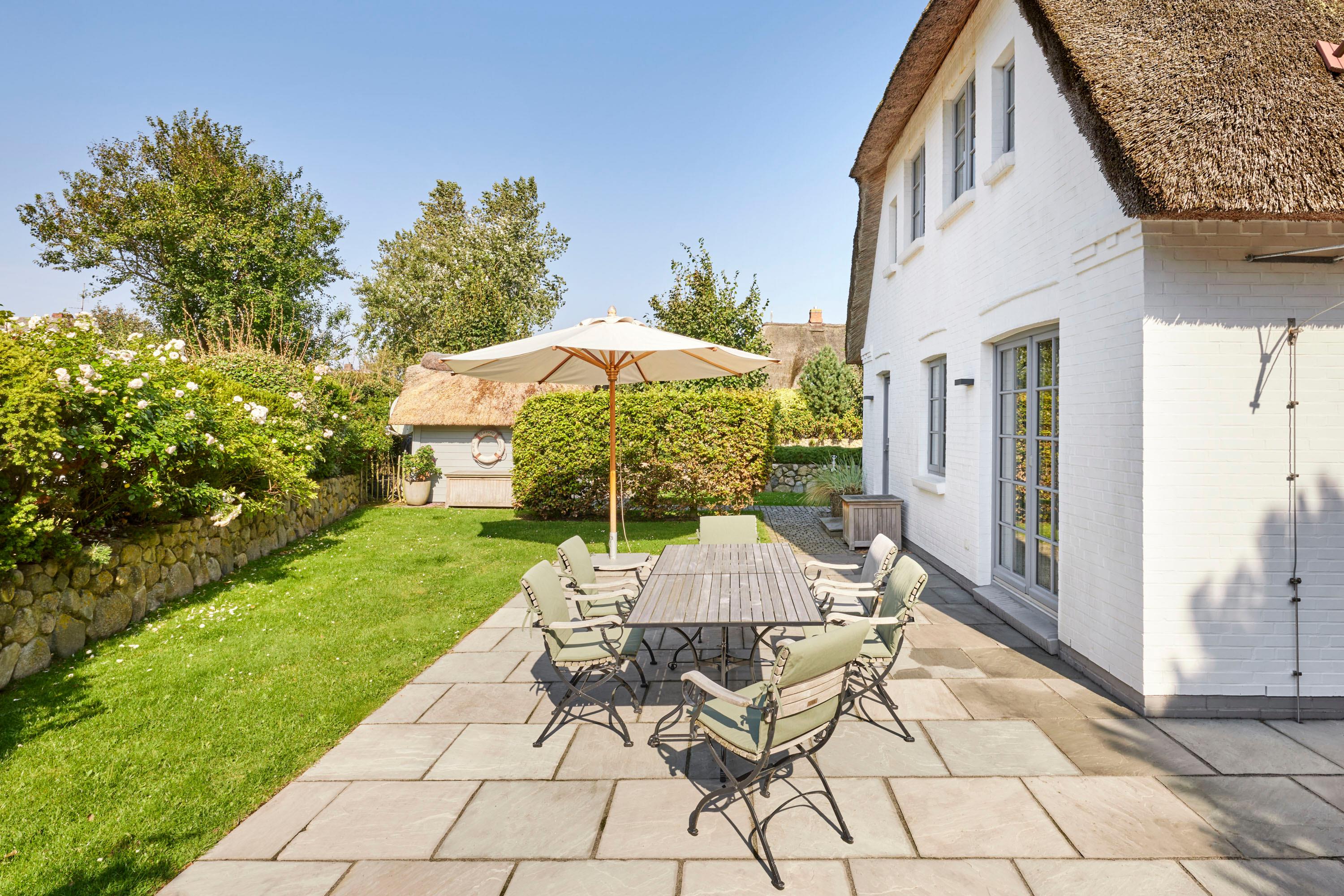Wohnen Sie in diesem exklusiven Einzelhaus unter Reet im wunderschönen Friesendorf Nieblum. Hier finden Sie alte Kapitänshäuser, bunte Bauerngärten, Baumalleen und reetgedeckte Friesenhäuser - der perfekte Ausgangspunkt für einen erholsamen Urlaub. Das Haus ist sehr hochwertig ausgestattet und lässt keine Wünsche offen. Ein großzügiger Wohnraum mit Kachelofen, daran angrenzend der Essbereich für 6 Personen und die offene Küche mit allem, was das Kochherz begehrt, machen das Erdgeschoss zum Blickfang. Im Obergeschoss befinden sich drei geräumige Schlafräume und zwei Badtempel. Auf der ca. 95qm großen Terrasse und im schön angelegtem Garten werden Sie erholsame Urlaubstage verbringen.