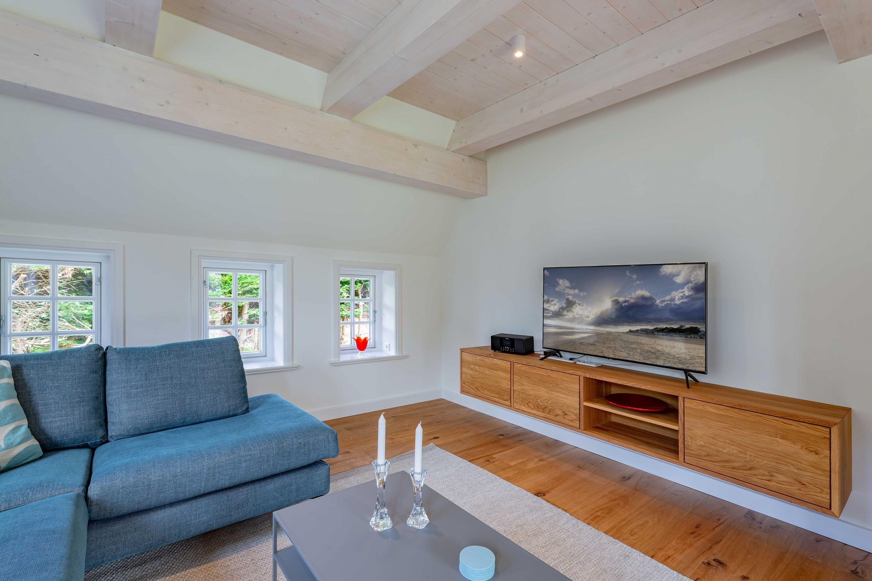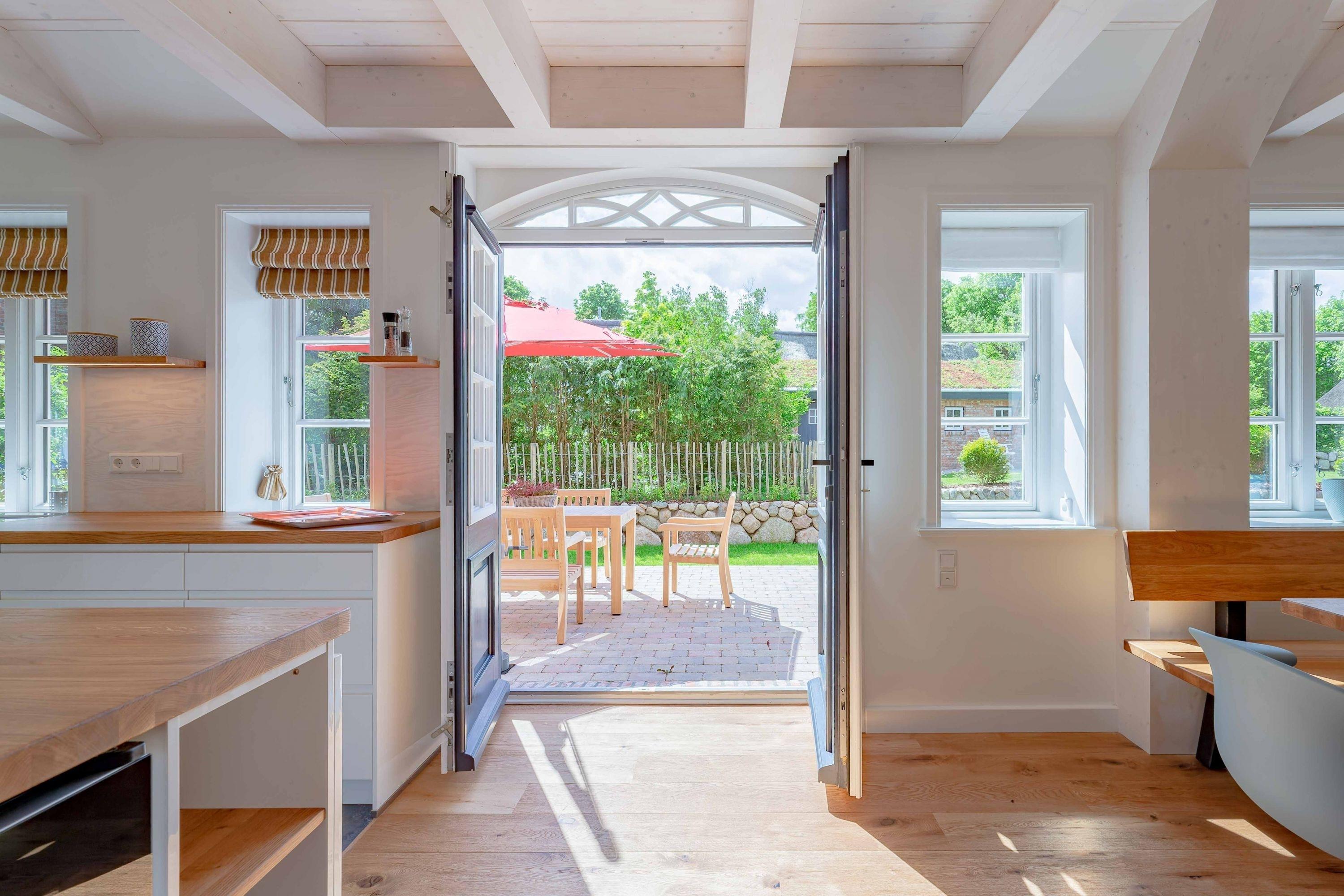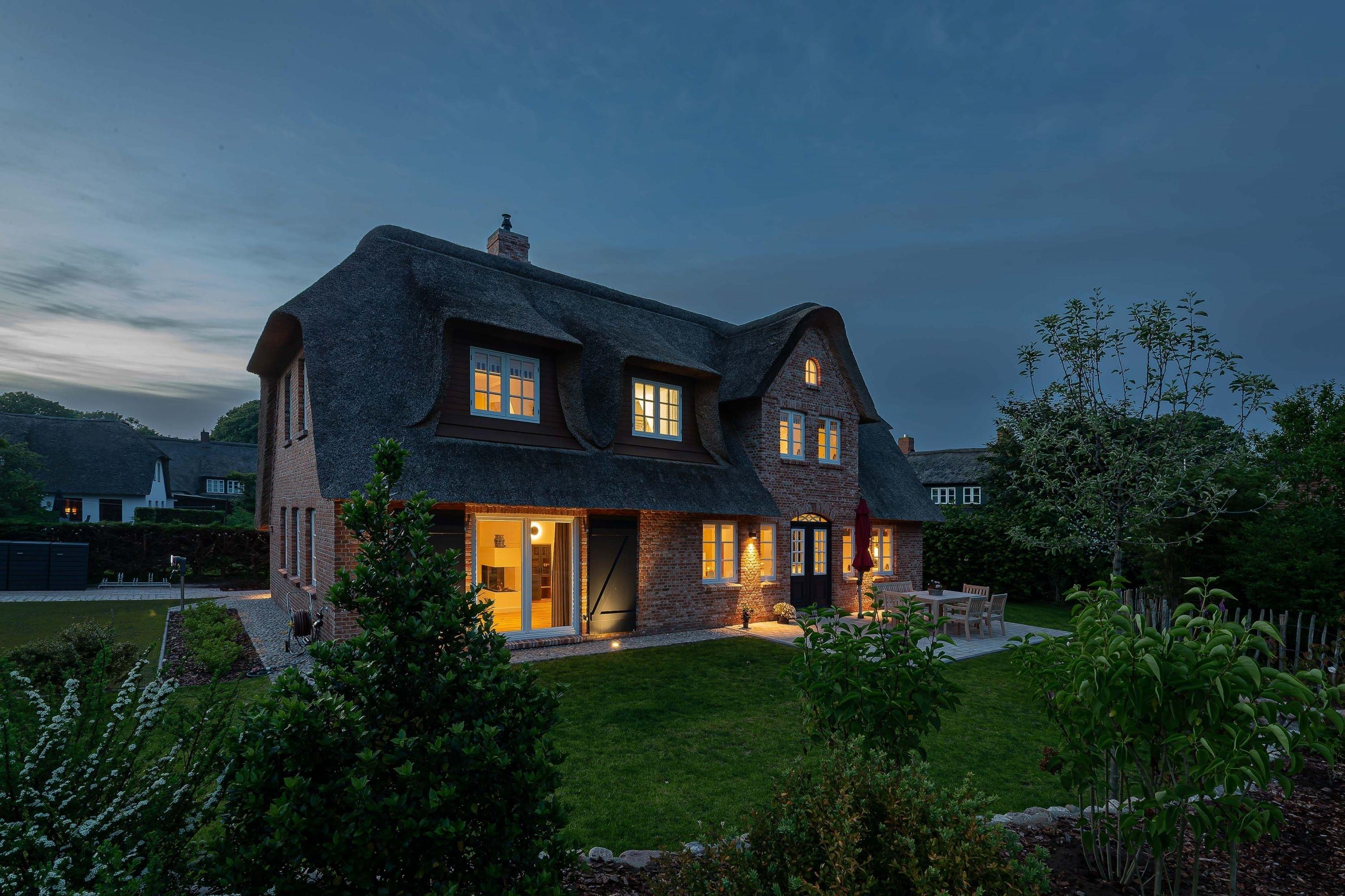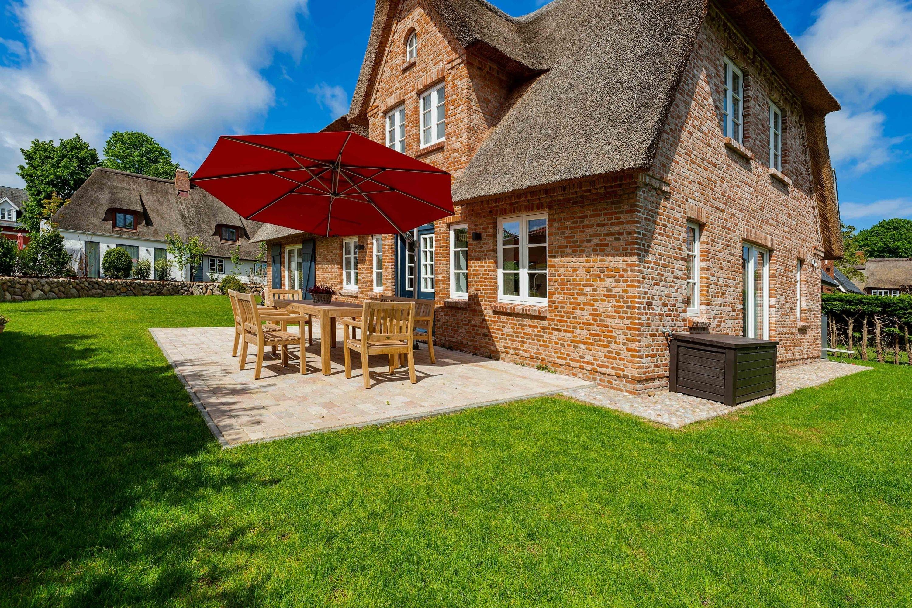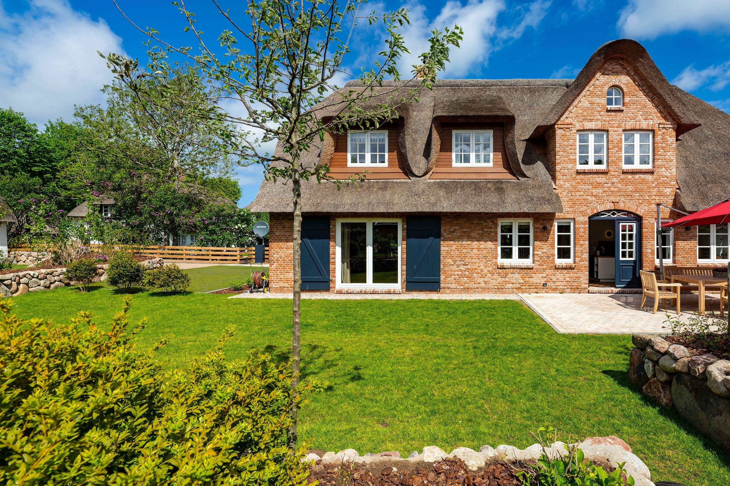 Verbringen Sie Ihren Urlaub im schönen Friesendorf Nieblum auf Föhr. Durch die Lage des neu errichteten Einzelhauses in zweiter Reihe hinter einem traditionellen, denkmalgeschützten Kapitänshaus ist das Objekt sehr ruhig, aber dennoch zentral gelegen. Alles ist mit nur wenigen Schritten zu erreichen. Das Reethaus glänzt mit einer Terrasse und schönem Garten. Im Erdgeschoss erwarten Sie eine große Küche mit Kochinsel, ein gemütlicher Ess- und Wohnbereich mit Gaskamin und ein separates Arbeitszimmer. Im Obergeschoss befinden sich Schlafräume und Bäder, im Dachgeschoss die Sauna mit Ruhezone. Alles ist bereit für Erholung pur.