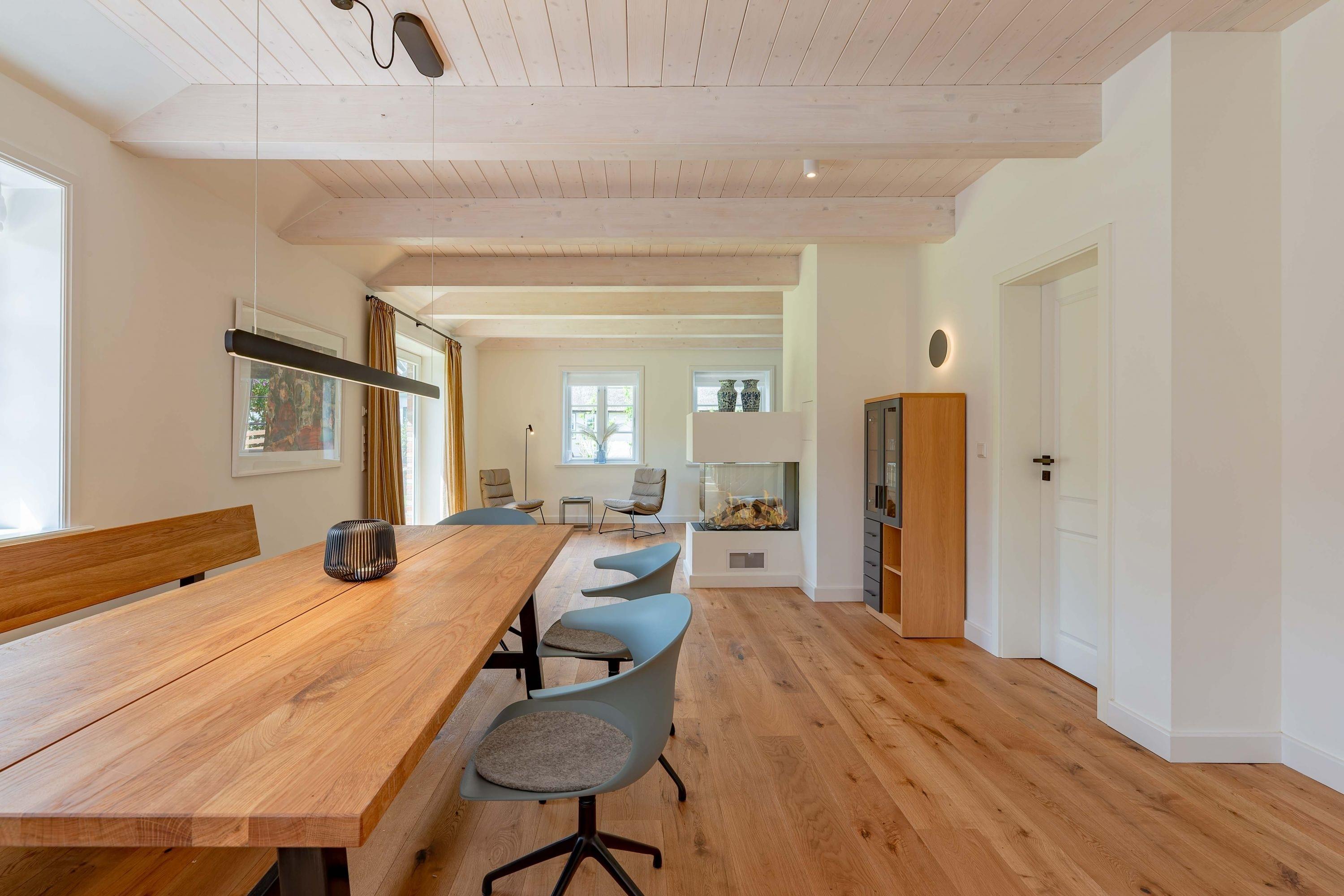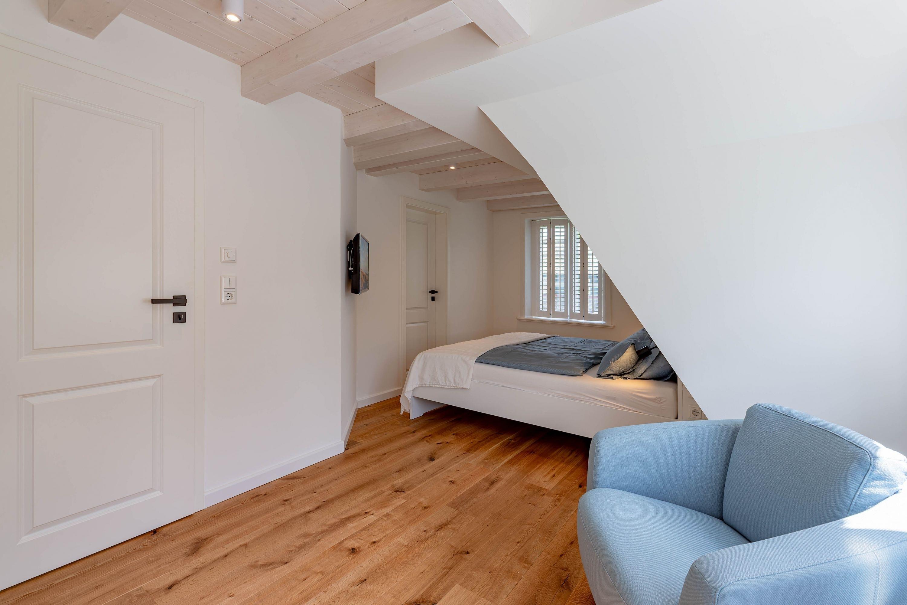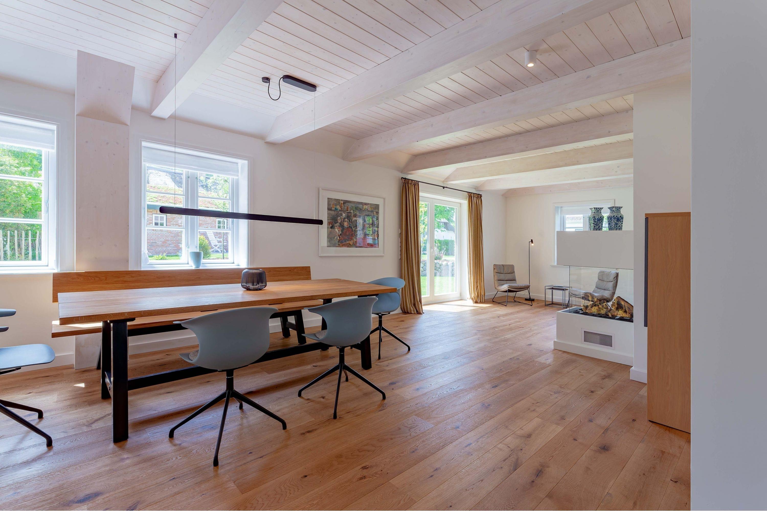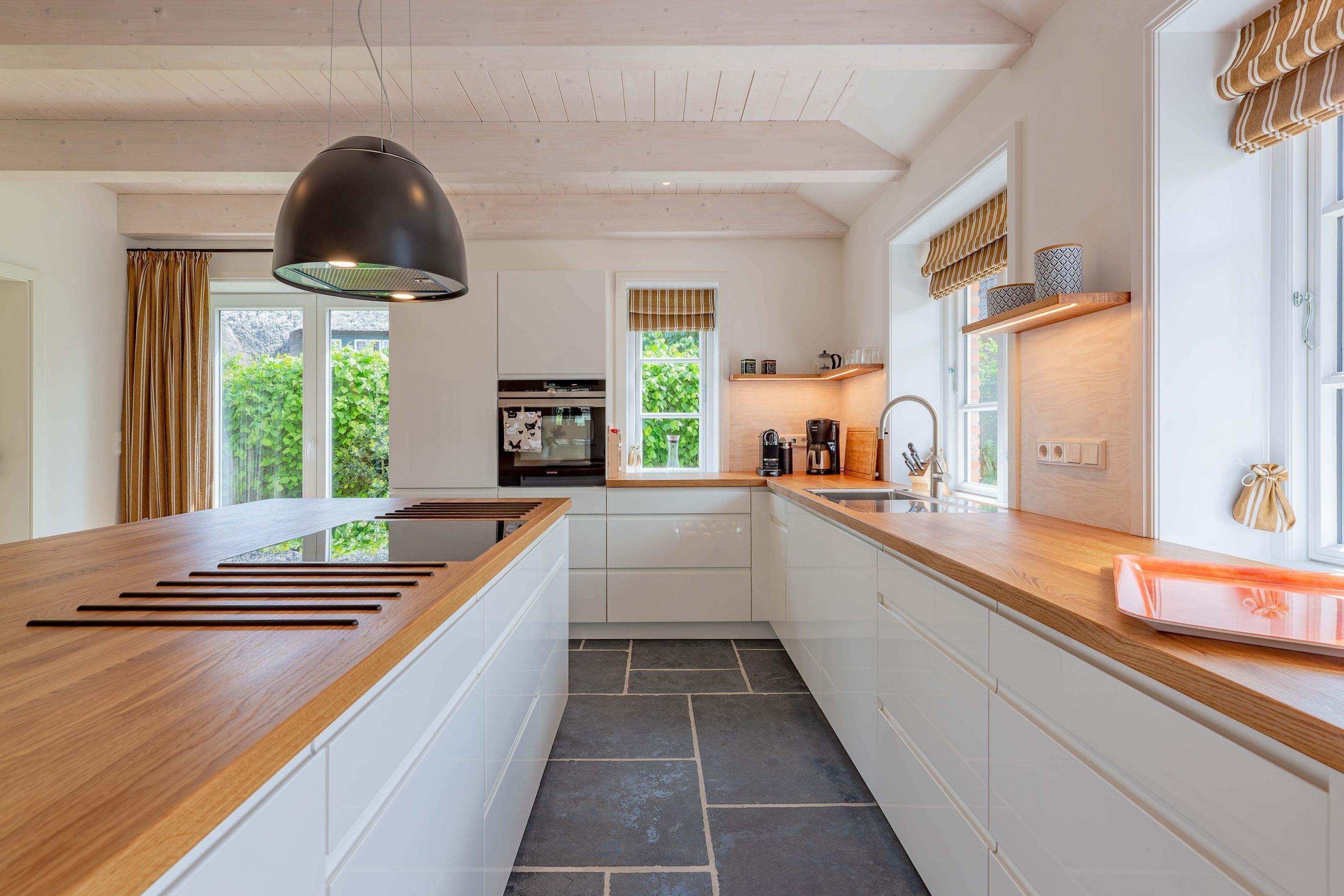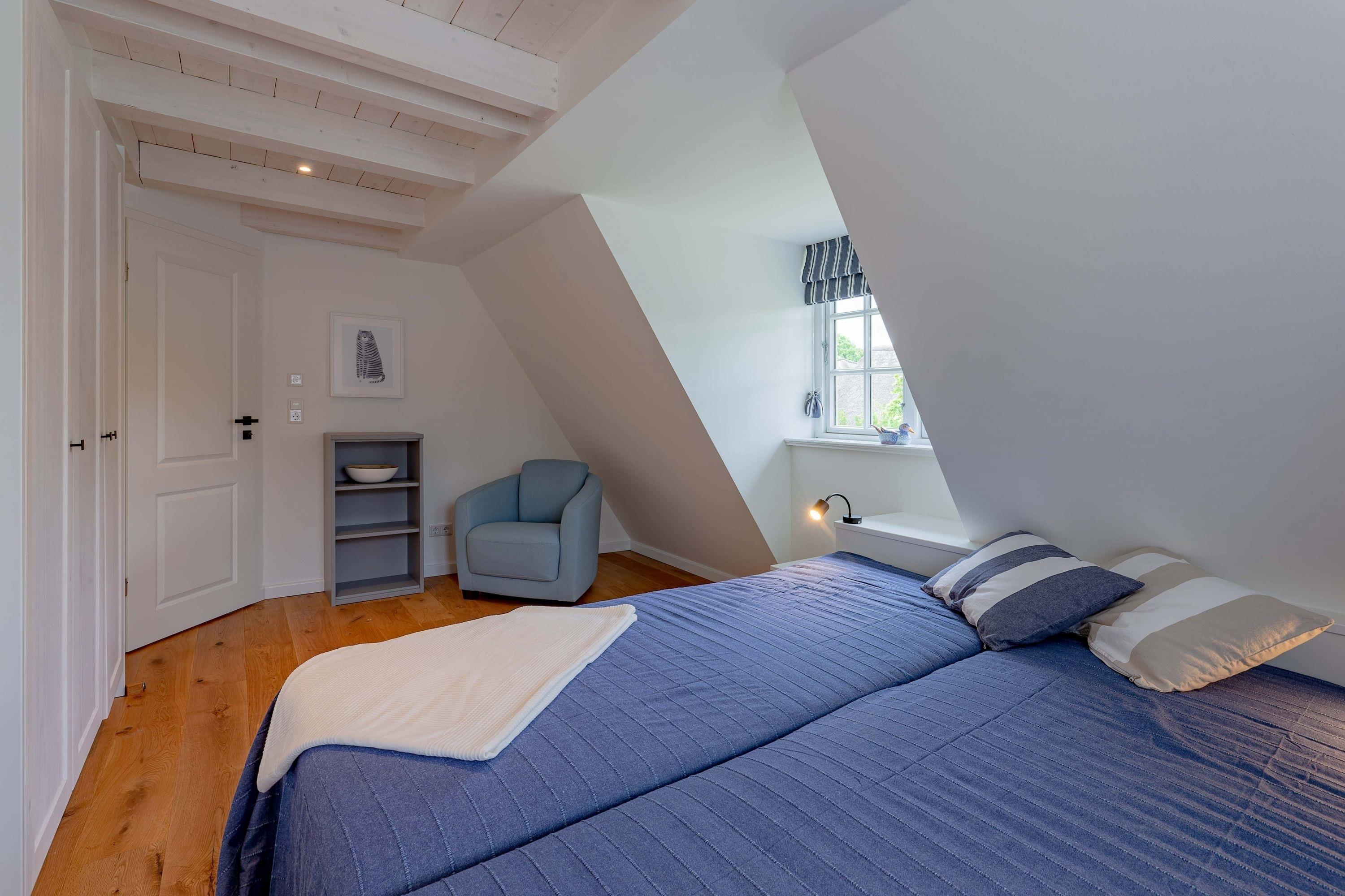 Verbringen Sie Ihren Urlaub im schönen Friesendorf Nieblum auf Föhr. Durch die Lage des neu errichteten Einzelhauses in zweiter Reihe hinter einem traditionellen, denkmalgeschützten Kapitänshaus ist das Objekt sehr ruhig, aber dennoch zentral gelegen. Alles ist mit nur wenigen Schritten zu erreichen. Das Reethaus glänzt mit einer Terrasse und schönem Garten. Im Erdgeschoss erwarten Sie eine große Küche mit Kochinsel, ein gemütlicher Ess- und Wohnbereich mit Gaskamin und ein separates Arbeitszimmer. Im Obergeschoss befinden sich Schlafräume und Bäder, im Dachgeschoss die Sauna mit Ruhezone. Alles ist bereit für Erholung pur.