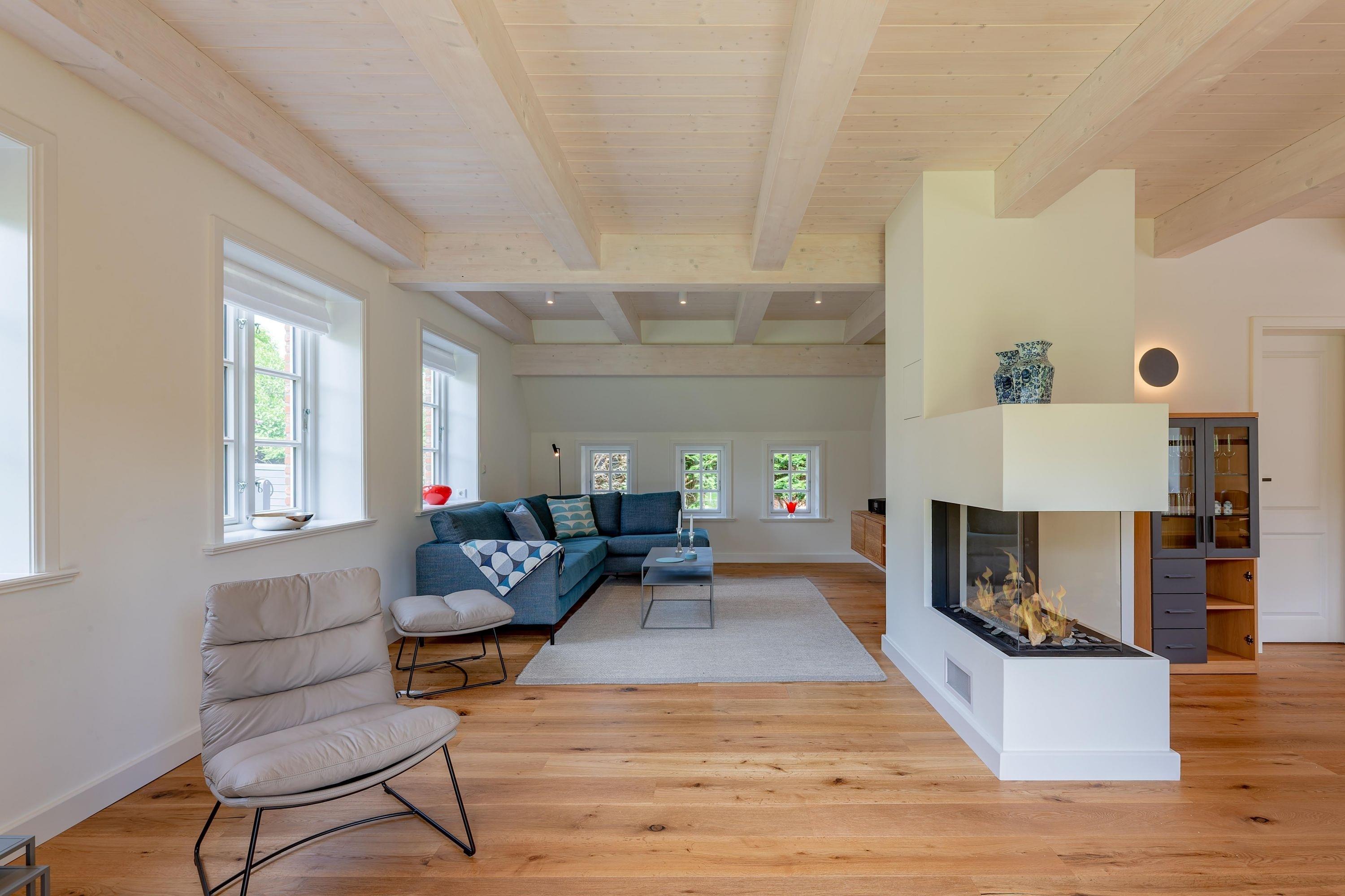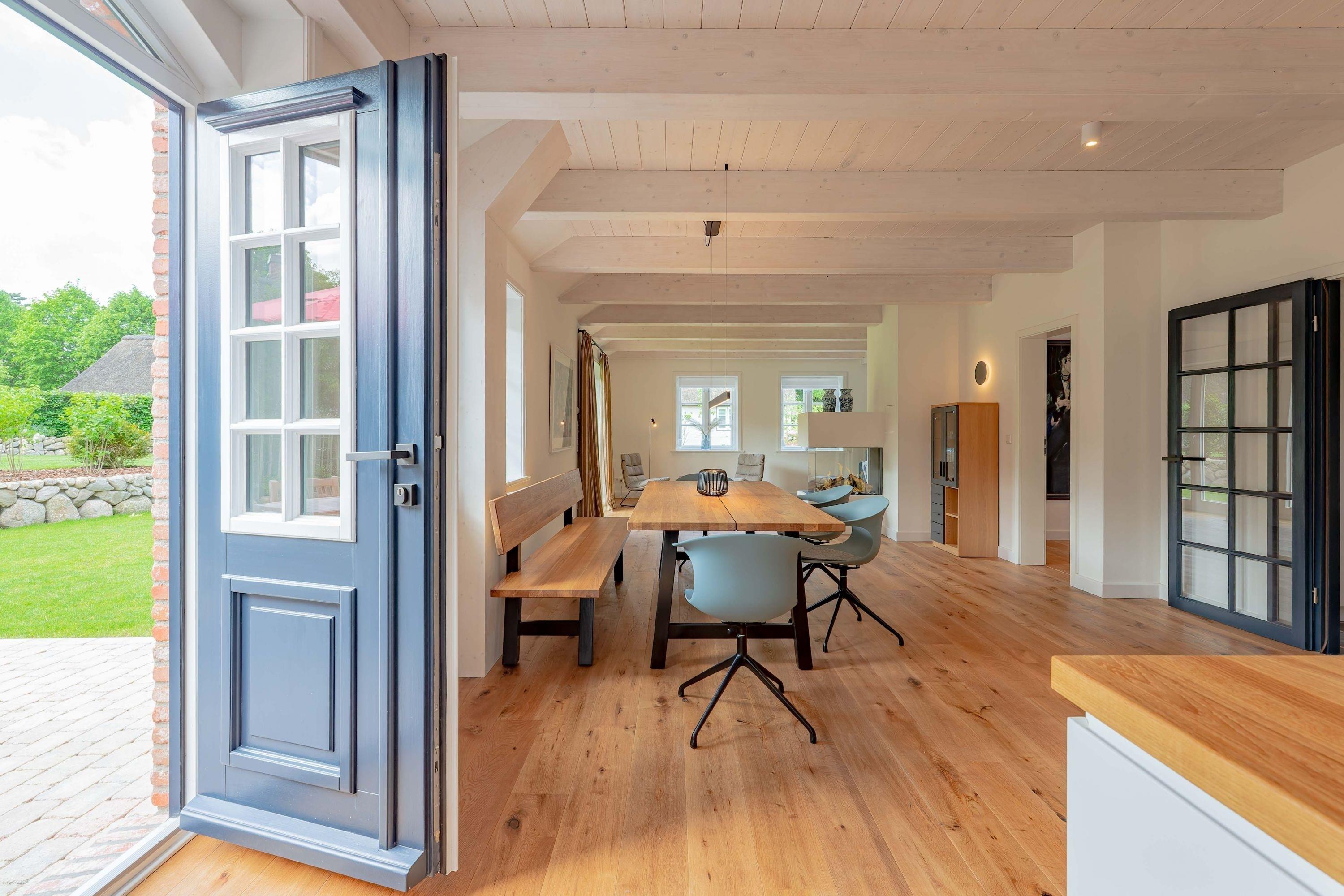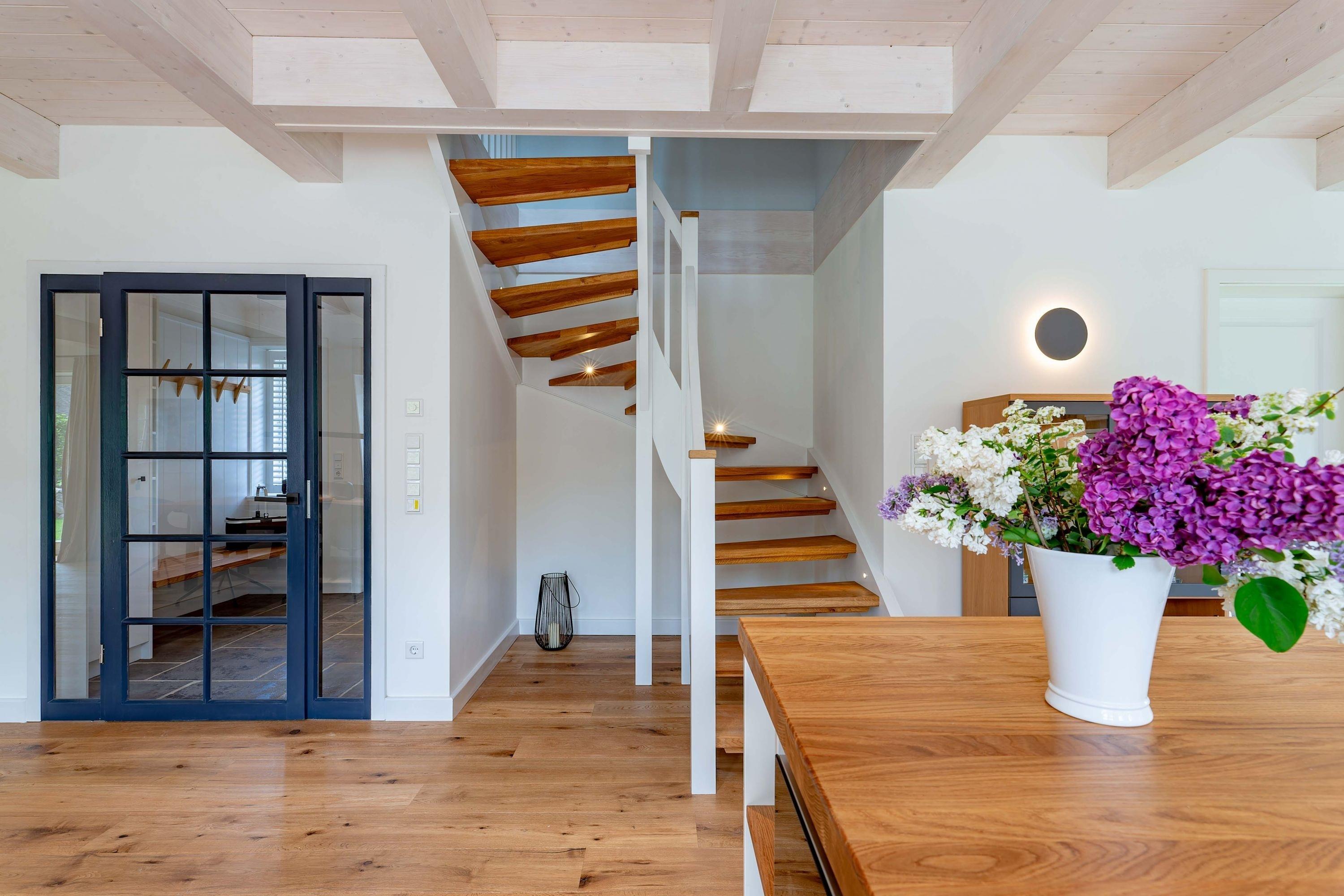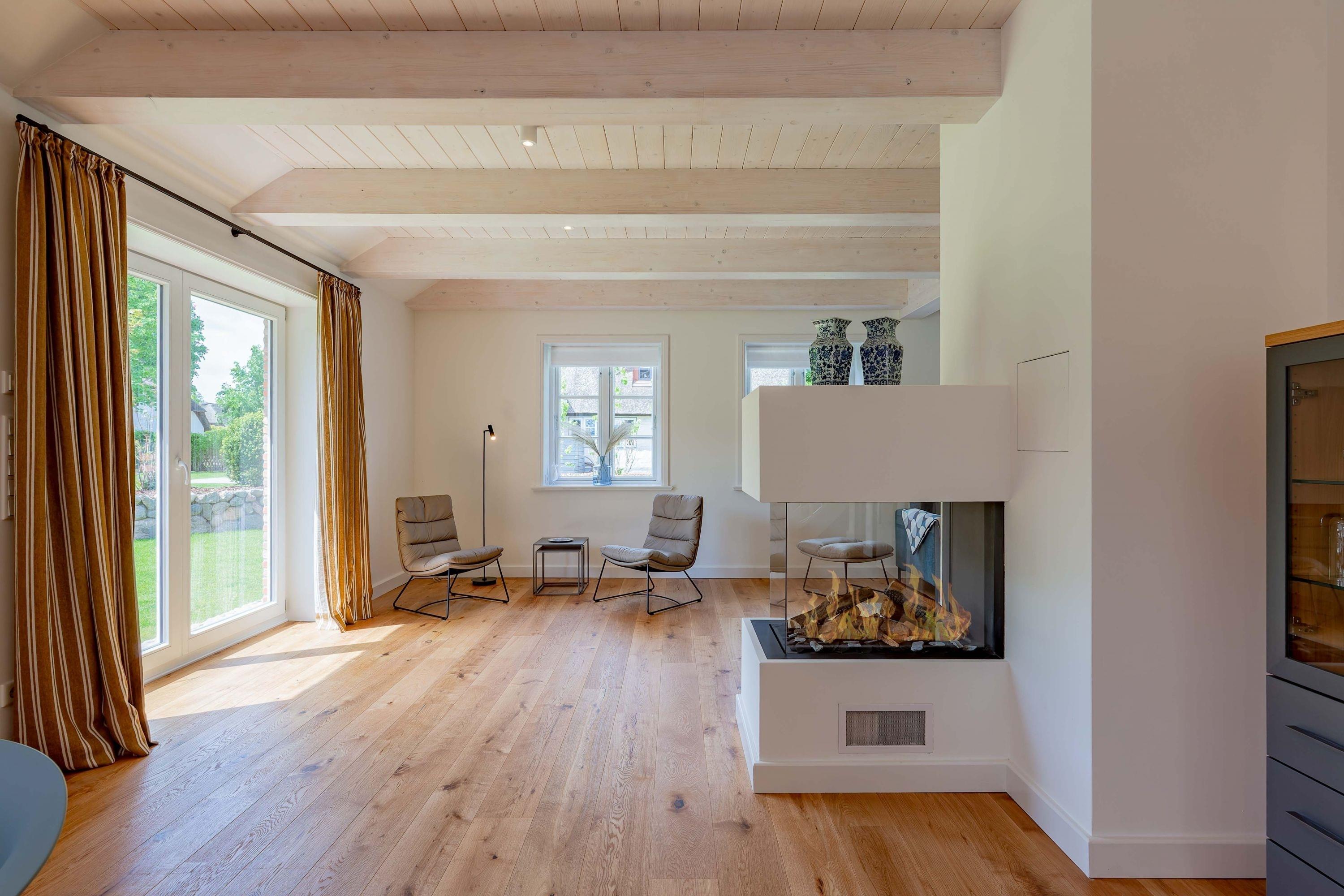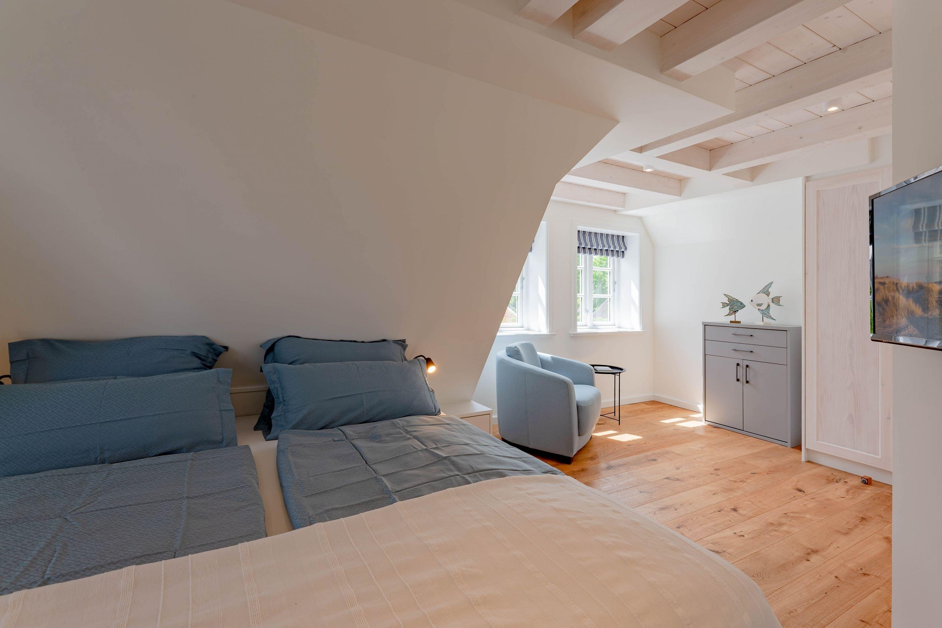 Verbringen Sie Ihren Urlaub im schönen Friesendorf Nieblum auf Föhr. Durch die Lage des neu errichteten Einzelhauses in zweiter Reihe hinter einem traditionellen, denkmalgeschützten Kapitänshaus ist das Objekt sehr ruhig, aber dennoch zentral gelegen. Alles ist mit nur wenigen Schritten zu erreichen. Das Reethaus glänzt mit einer Terrasse und schönem Garten. Im Erdgeschoss erwarten Sie eine große Küche mit Kochinsel, ein gemütlicher Ess- und Wohnbereich mit Gaskamin und ein separates Arbeitszimmer. Im Obergeschoss befinden sich Schlafräume und Bäder, im Dachgeschoss die Sauna mit Ruhezone. Alles ist bereit für Erholung pur.