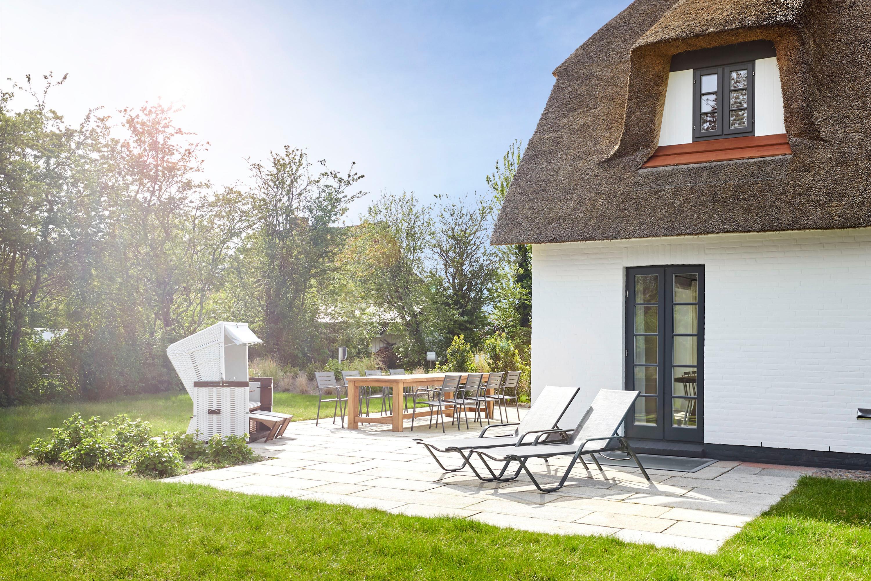 Das wunderschöne reetgedeckte Einzelhaus 'Wit Parel’ liegt ruhig in einer Sackgasse am Dorfrand des zauberhaften Nieblums und bietet einen herrlichen Blick über die Felder. Nieblum, eines der schönsten Dörfer von Föhr, verleiht diesem außergewöhnlichen Reethaus eine besonders malerische Kulisse, die Ruhe und Erholung verspricht. Mit dem Fahrrad sind es nur 10 Minuten zum Strand.