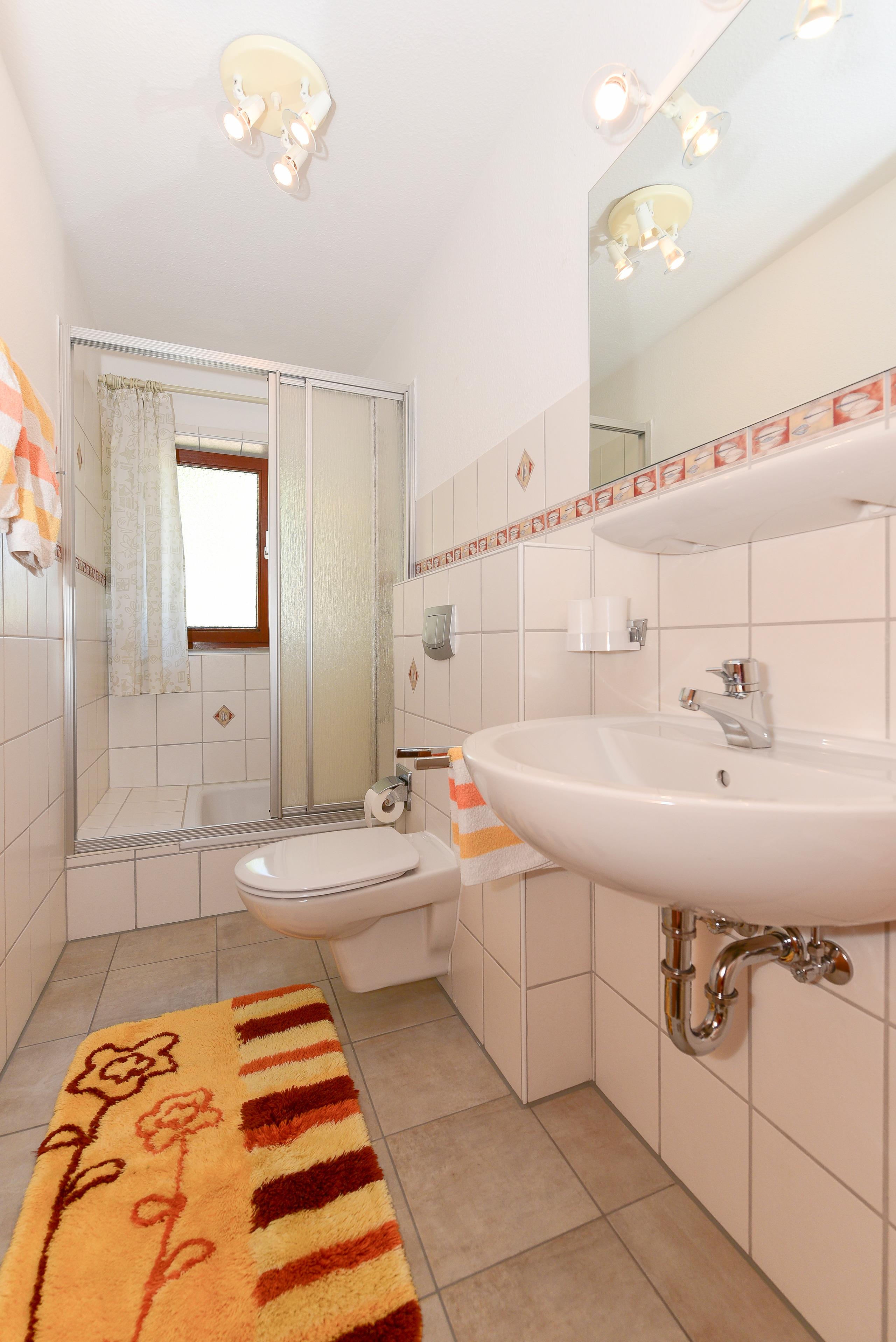 Vom Flur aus erreichen Sie das Duschbad, das mit einem Außenfenster für viel Luft und Licht sorgt.