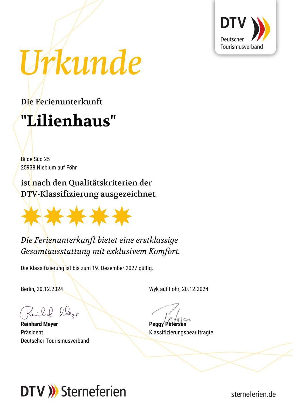 Das Lilienhaus ist mehrfach mit 5 von 5 Sternen des Deutschen Tourismusverbandes ausgezeichnet worden. Es verfügt über 3 Schlafzimmer und 3 Bäder und bietet somit komfortabel Platz für bis zu 6 Personen zuzüglich allem, was ein Kleinkind zum Schlafen braucht. Auch ein Hund ist herzlich willkommen und ein Hundekörbchen wartet auf die Fellnase.