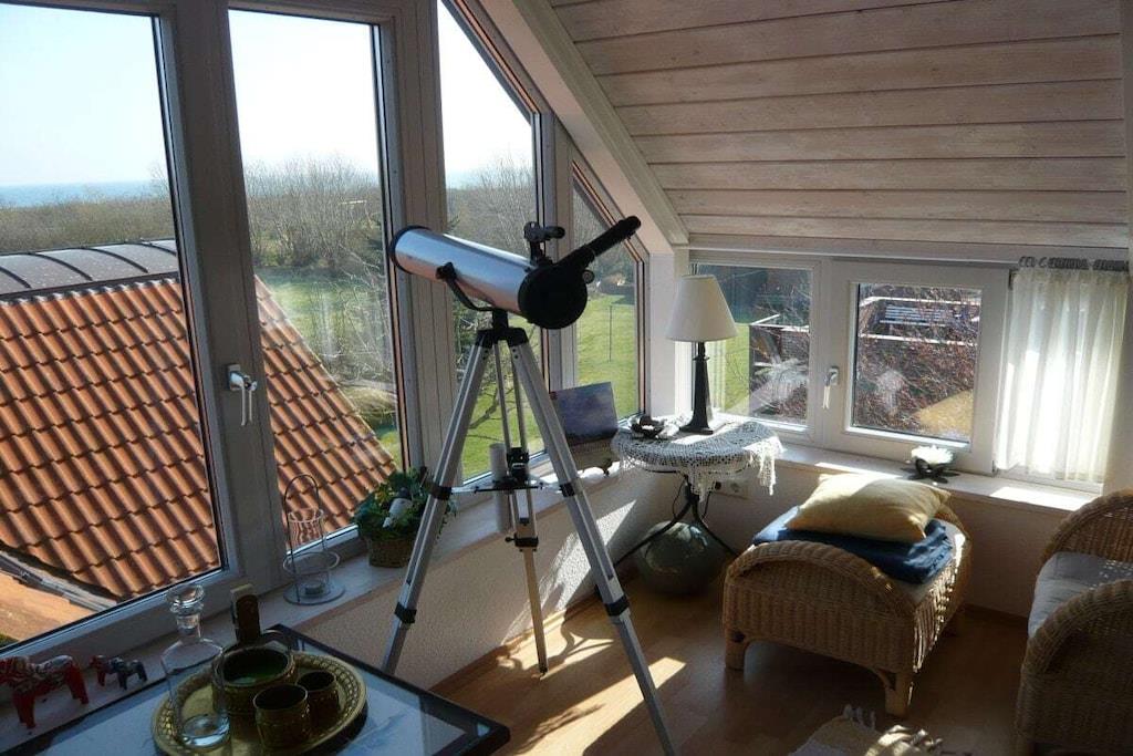 Das Ferienhaus Merlins Turmhuus ist in dem für den Norden typischen Stil erbaut. Merlins Turmhuus bietet auf 3 Ebenen ausreichend Platz für 2 Personen. Im EG befindet sich die gemütliche Kaminofenstube mit Essplatz, die sep. liebevoll eingerichtete Pantry-Küche (u.a. mit Spülmaschine und Mikrowelle) sowie WC und Dusche. Mitteletage: gemütliches Wohn- und Fernsehzimmer, inkl. Rattanausziehcouch. Von dort gelangt man in das separat gelegene Schlafzimmer (Doppelbett plus ein Einzelbett).Unter dem Dach von Merlins Turmhuus befindet sich das Turmzimmer. Dort erwartet Sie eine gemütliche Teestube. Von hieraus können Sie wunderbar die Natur beobachten und den ungestören Ausblick auf das Meer und die nahe, dänische Küstenlandschaft genießen.