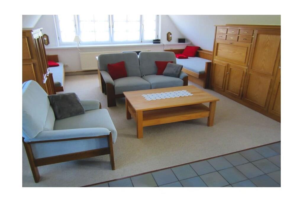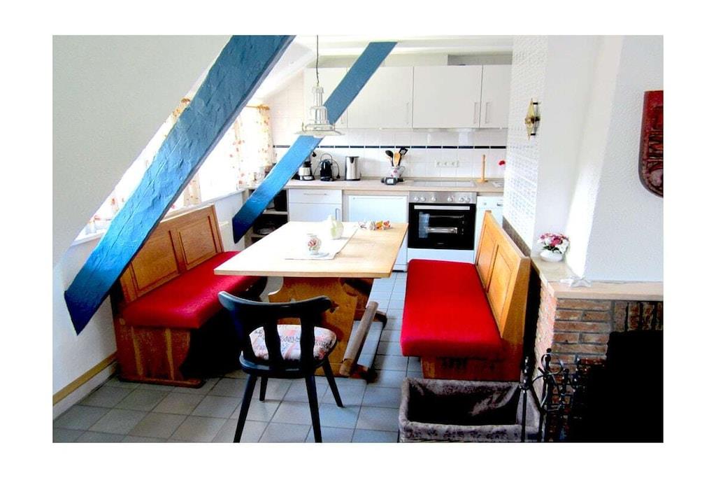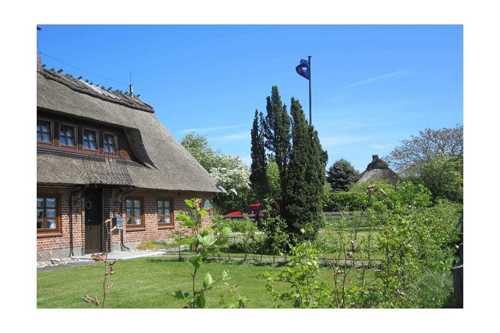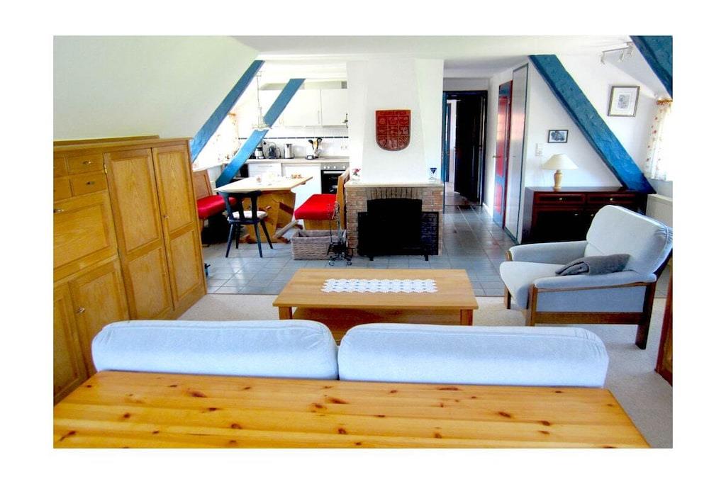 Cozy holiday apartment with fireplace and roof terrace in a rustic thatched-roof house on the Baltic coast. Beach within walking distance.