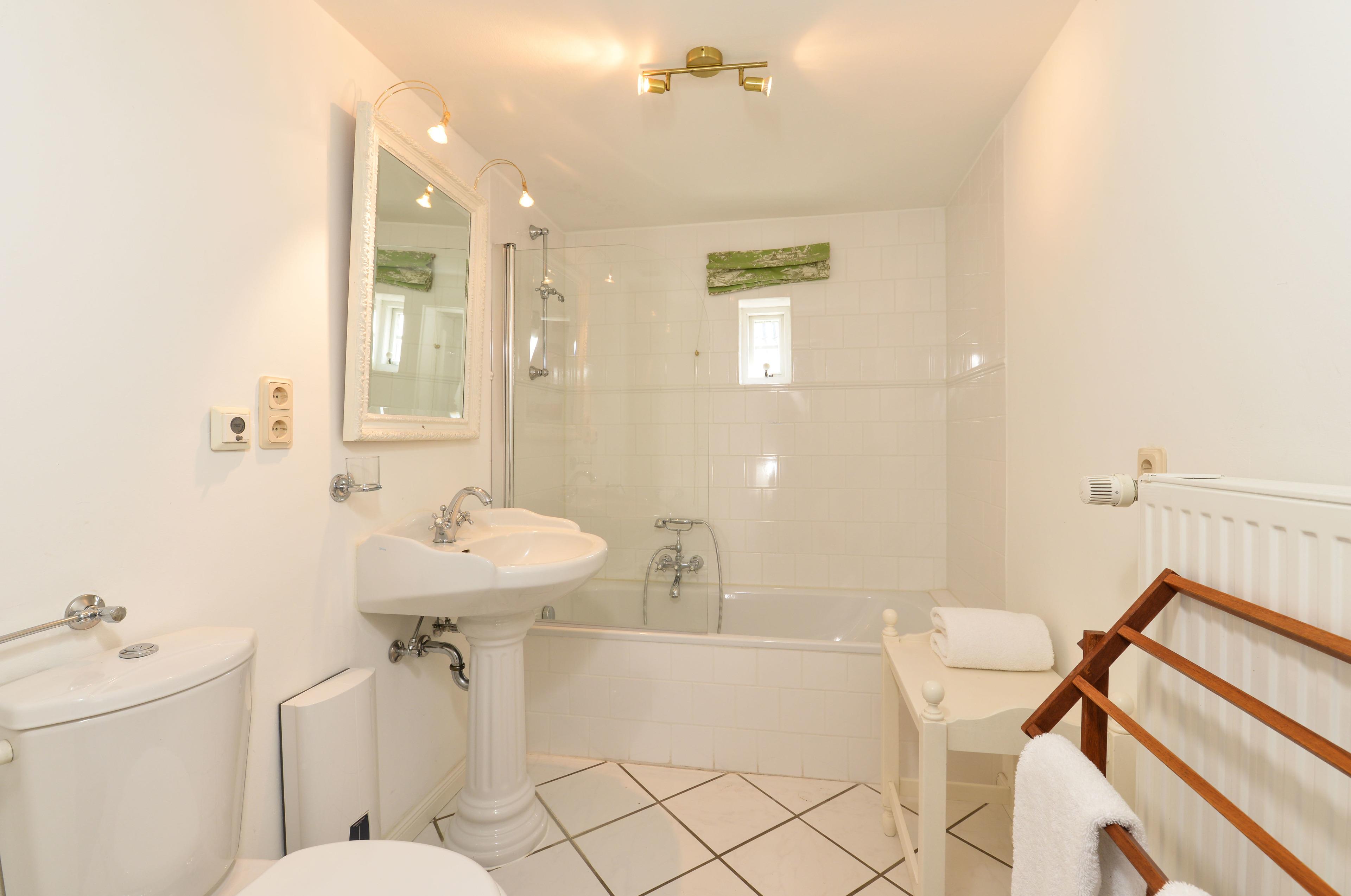 Wohnzimmer mit Wasserblick, kleine Küche mit Esstisch, Bad mit Dusch-Badewanne, ein Doppelschlafzimmer
