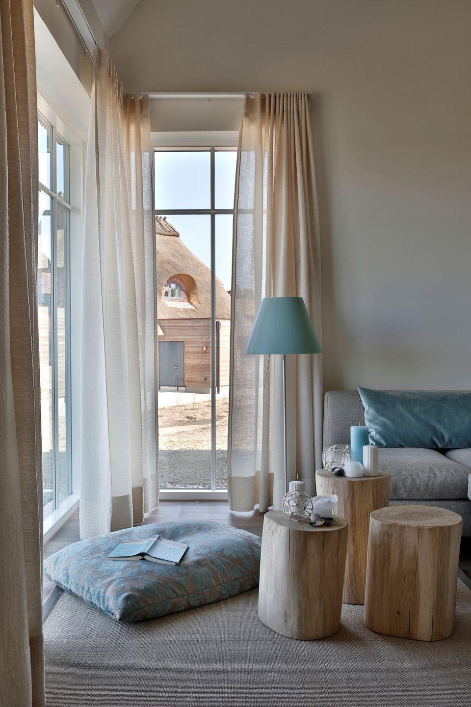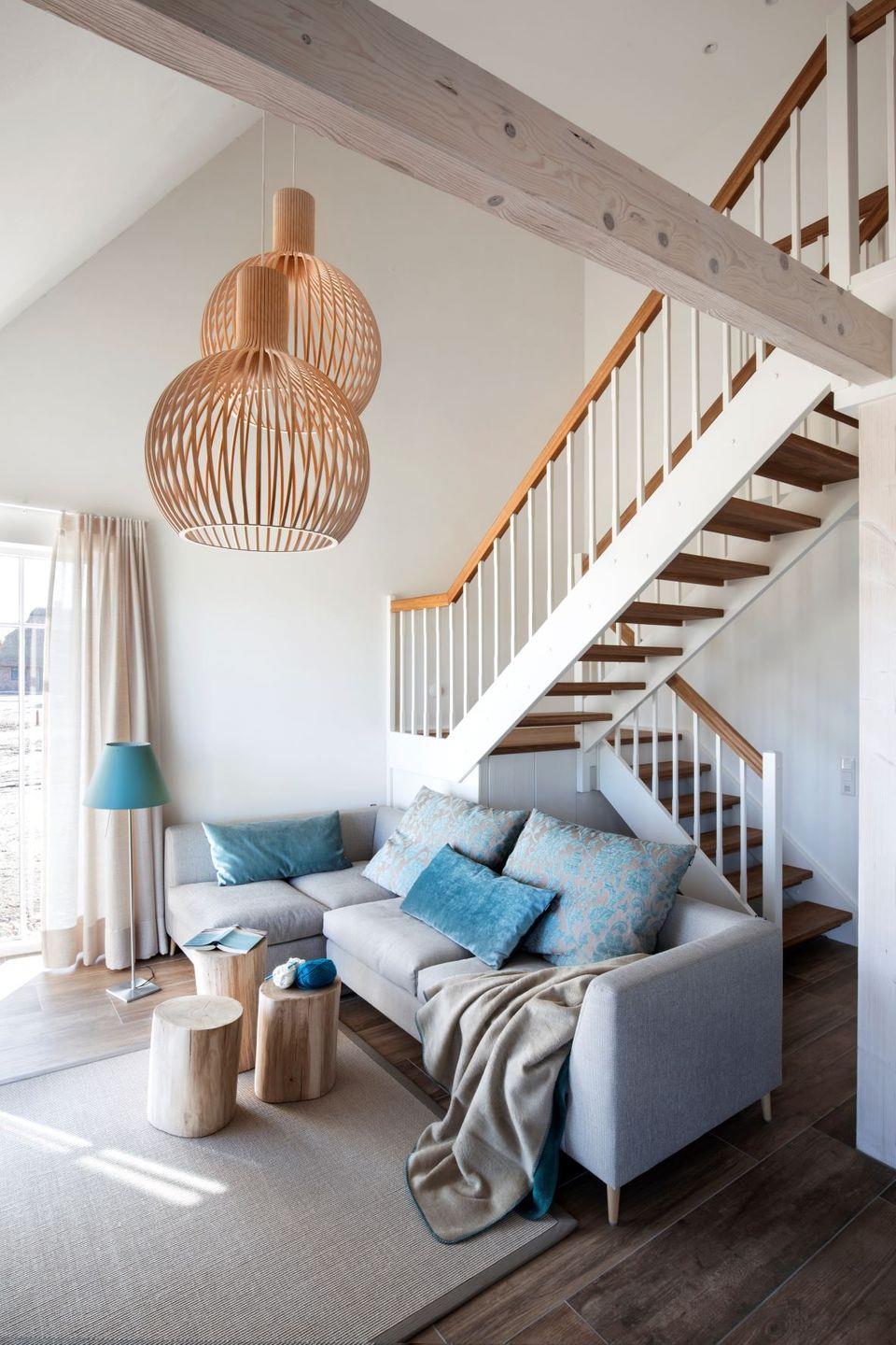 Naturfreundliche Details machen dieses Haus besonders charmant: Insektenrollos an den Fenstern sorgen für frische Ostseeluft auch bei offenem Fenster, ohne lästige Plagegeister, und fließende Lichtkonzepte schaffen ein harmonisches Wohngefühl. Die Materialien sind sorgfältig ausgewählt: Kalkputz reguliert Luftfeuchtigkeit, Massivholzmöbel und Textilien aus Bio-Baumwolle unterstreichen die natürliche Eleganz des Hauses. Im Winter sorgt die Fußbodenheizung für angenehme Wärme, im Sommer kühlt eine nachhaltige Solethermie-Anlage die Räume auf ein behagliches Niveau.