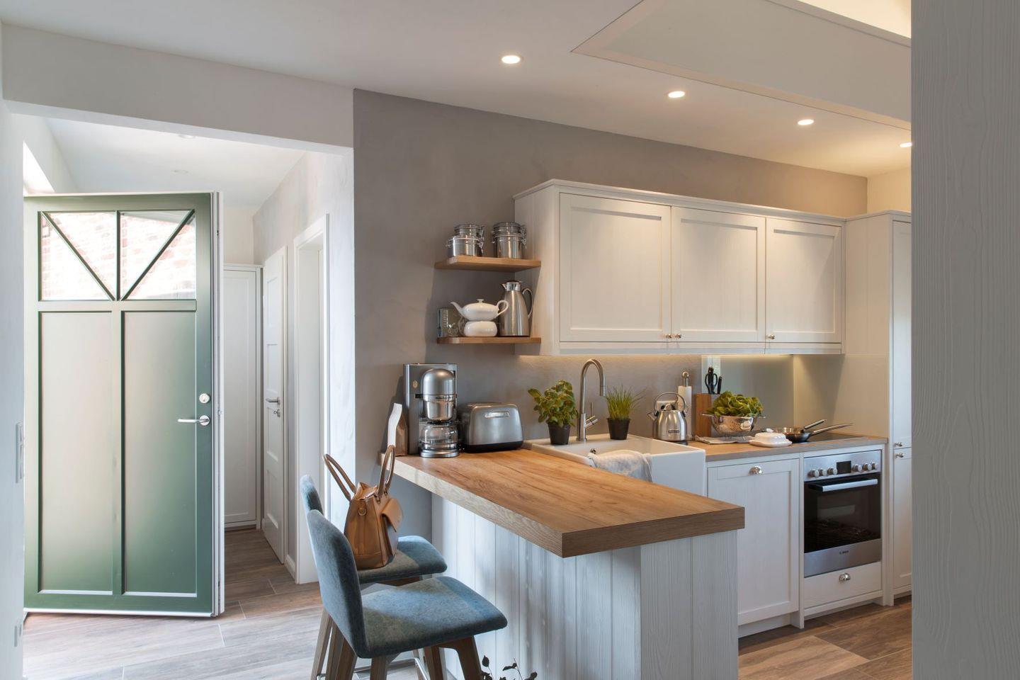 Schon beim Betreten werden Sie die hochwertige Ausstattung spüren: Ein offener Wohn- und Essbereich mit bodentiefen Fenstern eröffnet Ihnen einen atemberaubenden Blick auf die ruhige Landschaft der Geltinger Birk und die Ostsee. Der Kaminofen lädt zu behaglichen Abenden ein, während Holz und Naturmaterialien dem Raum eine warme, einladende Atmosphäre verleihen. Die handgefertigte Küche ist mit Markengeräten und allem ausgestattet, was das Herz eines Hobbykochs höherschlagen lässt: Cerankochfeld, Heißluftbackofen, hochwertige Küchenutensilien und viel Platz zum gemeinsamen Zubereiten.