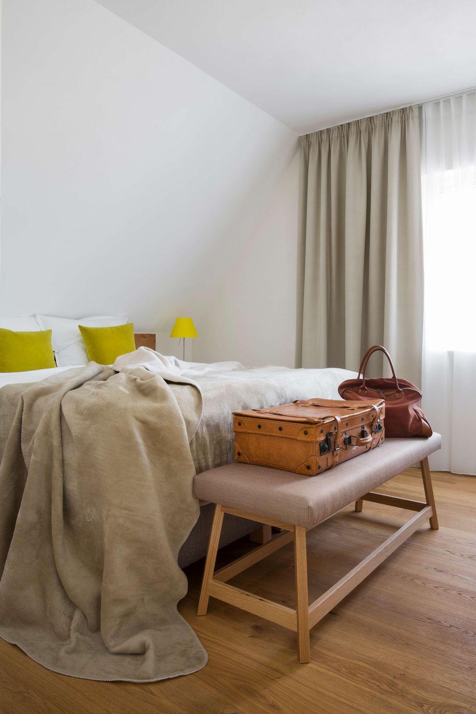 Alle Zimmer sind bis ins letzte Detail liebevoll eingerichtet mit einer Ausstattung auf höchstem Niveau: Vom Besteck über die Elektrogeräte bis zur Biobaumwolldecke finden Sie ausschließlich hochwertige Markenprodukte, ergänzt durch eigens entwickelte und gefertigte Echtholz-Möbel und Textilien.