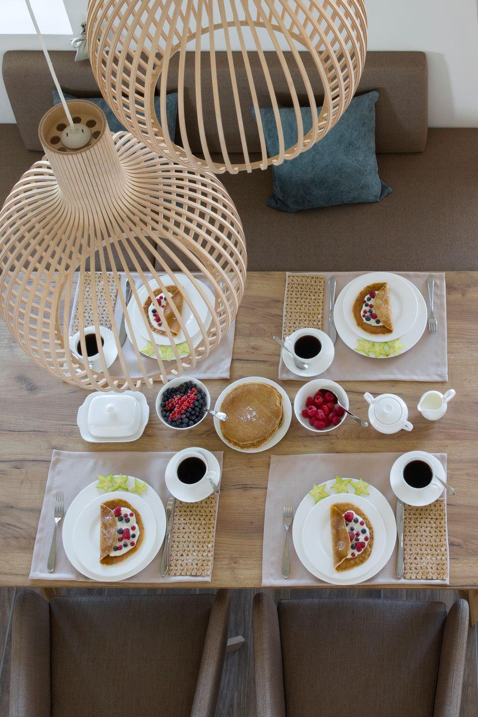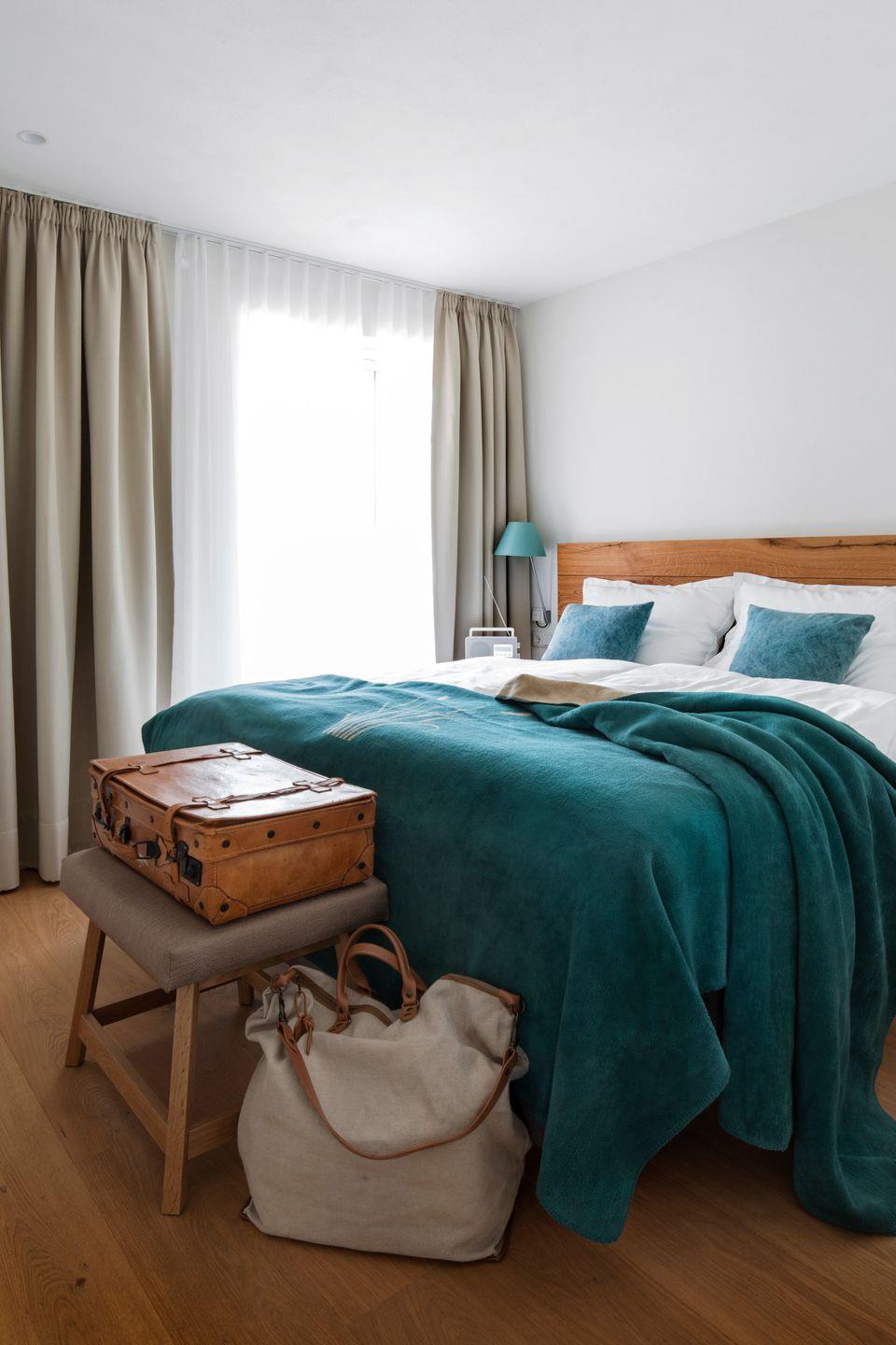 Alle Zimmer sind bis ins letzte Detail liebevoll eingerichtet mit einer Ausstattung auf höchstem Niveau. Vom Besteck über die Elektrogeräte bis zur Biobaumwolldecke finden Sie ausschließlich hochwertige Markenprodukte, ergänzt durch eigens entwickelte und gefertigte Echtholz-Möbel und Textilien.