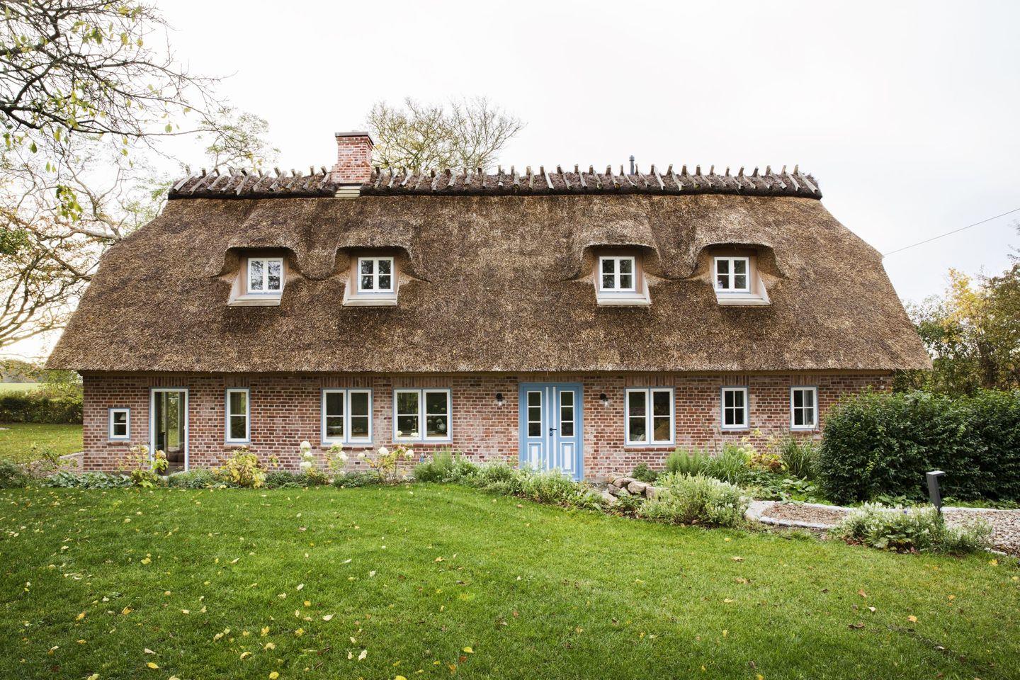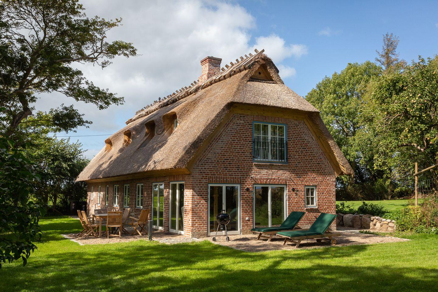 Entzückende Reetdachkate am Feldrand mit Kamin