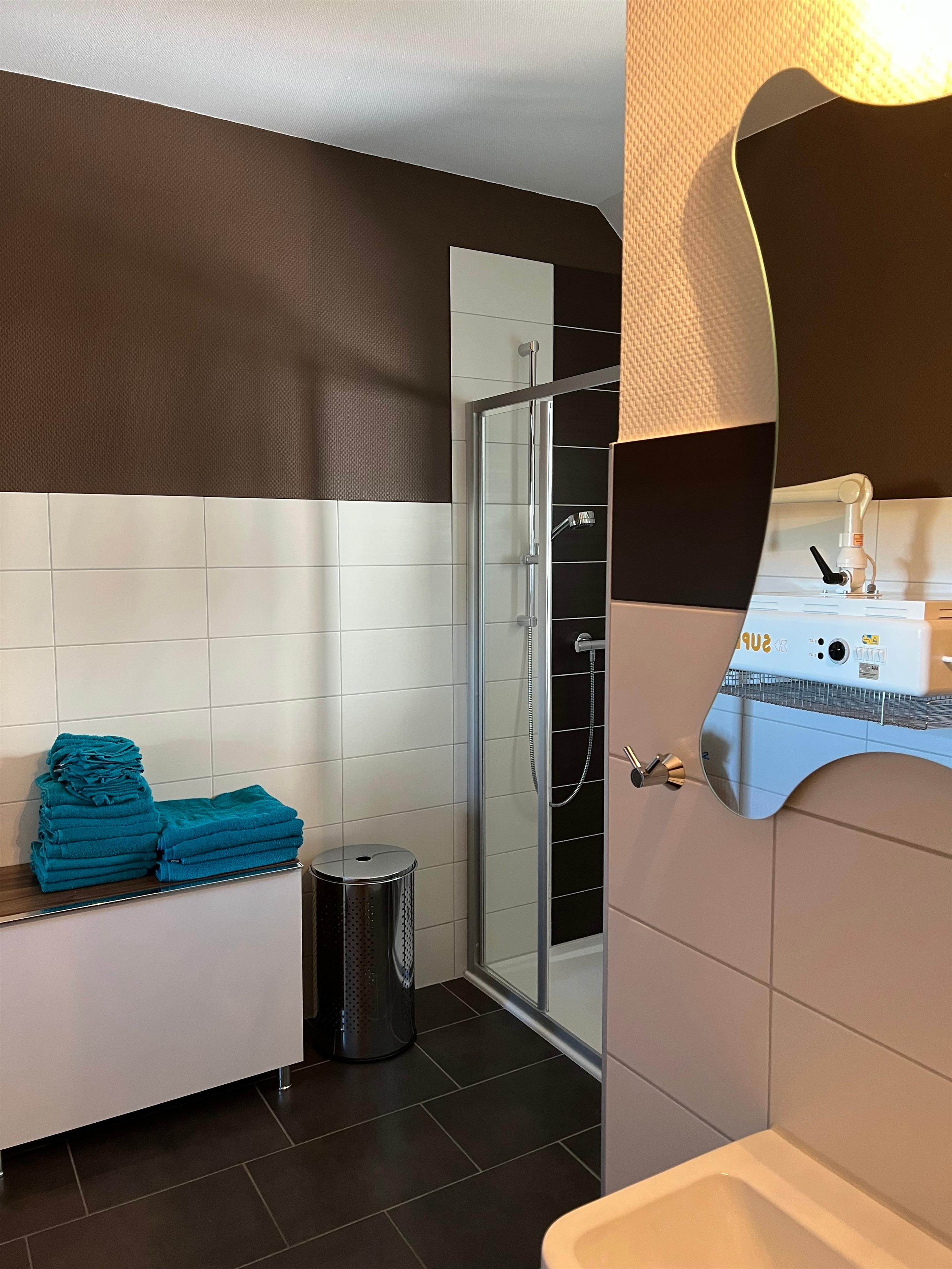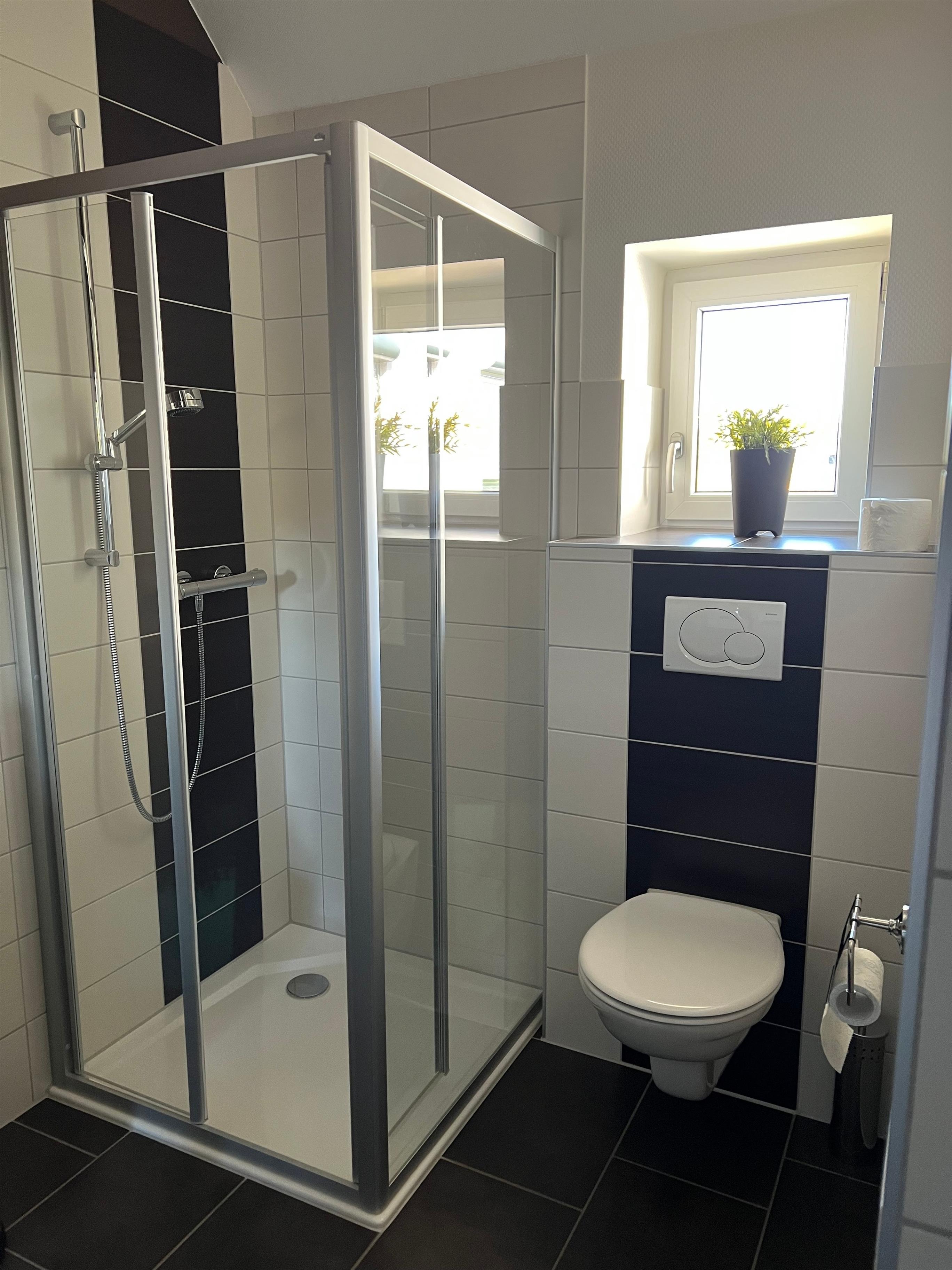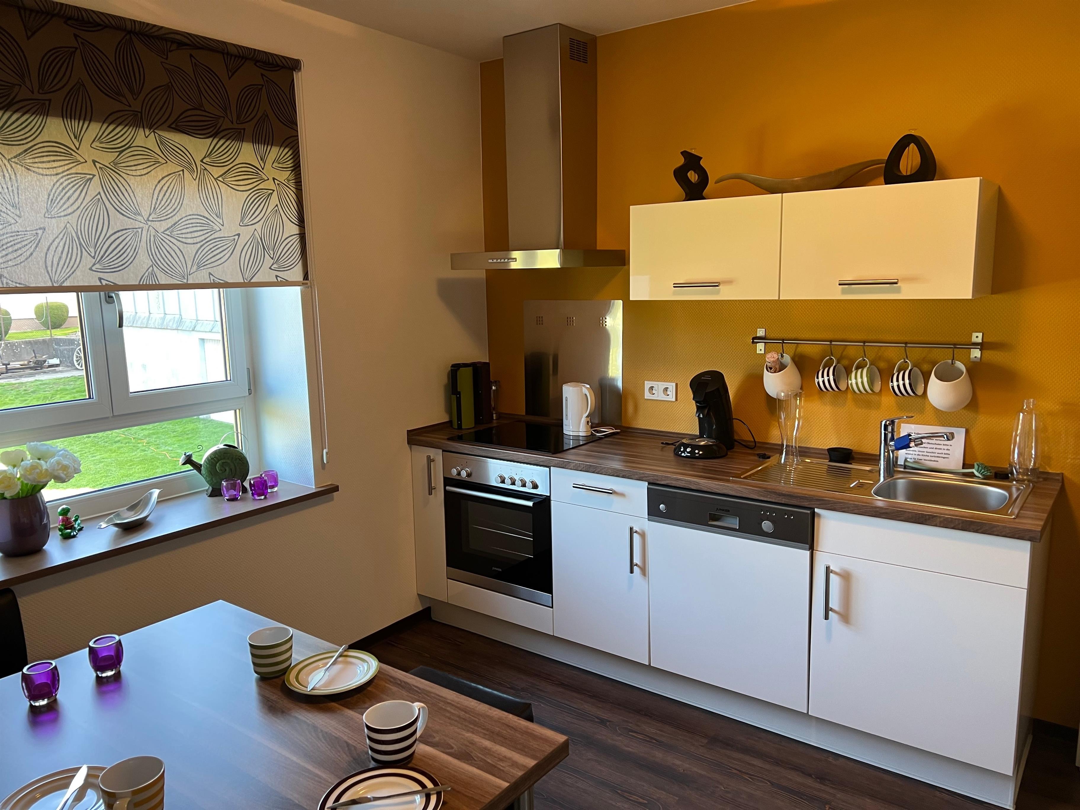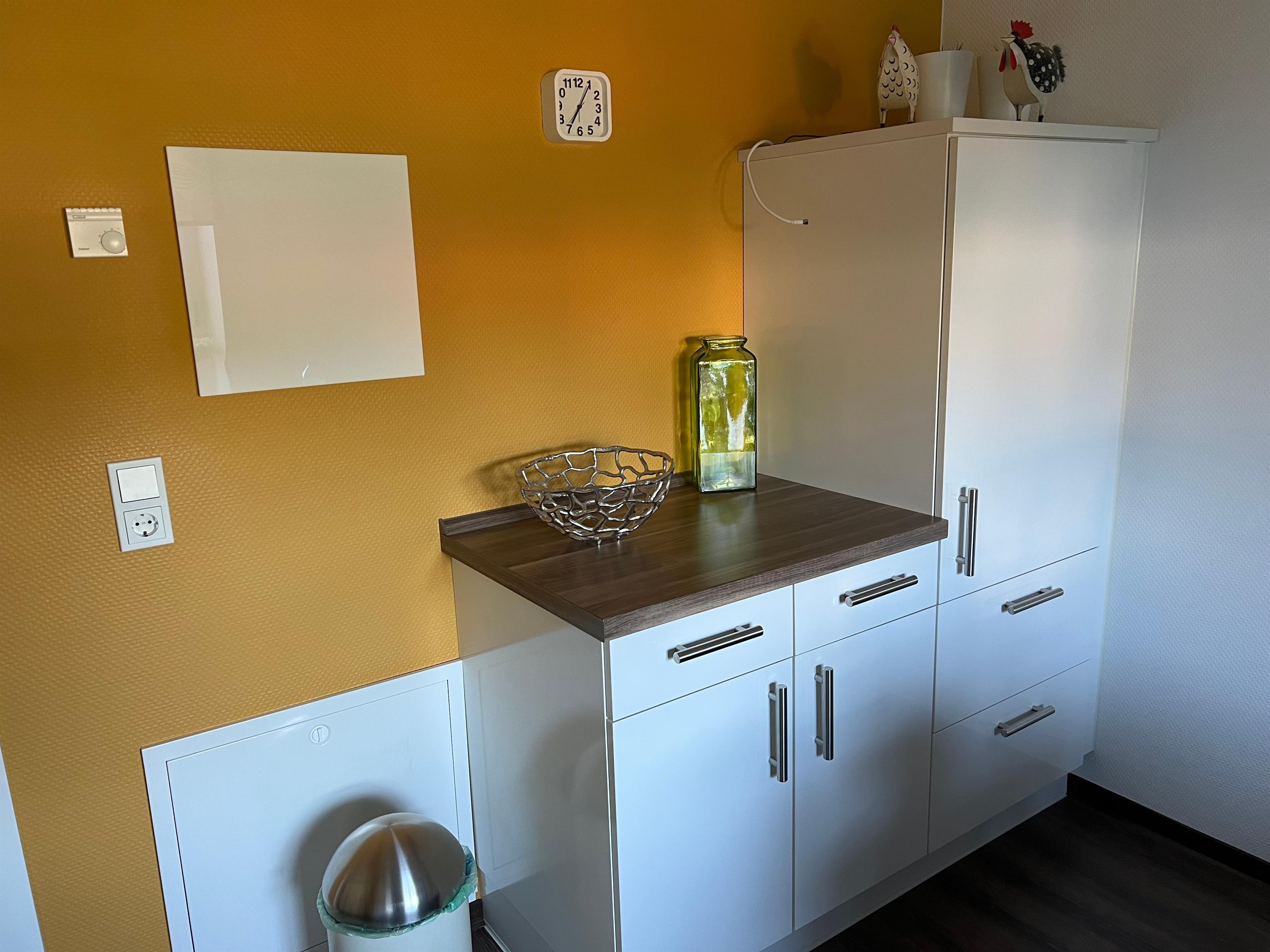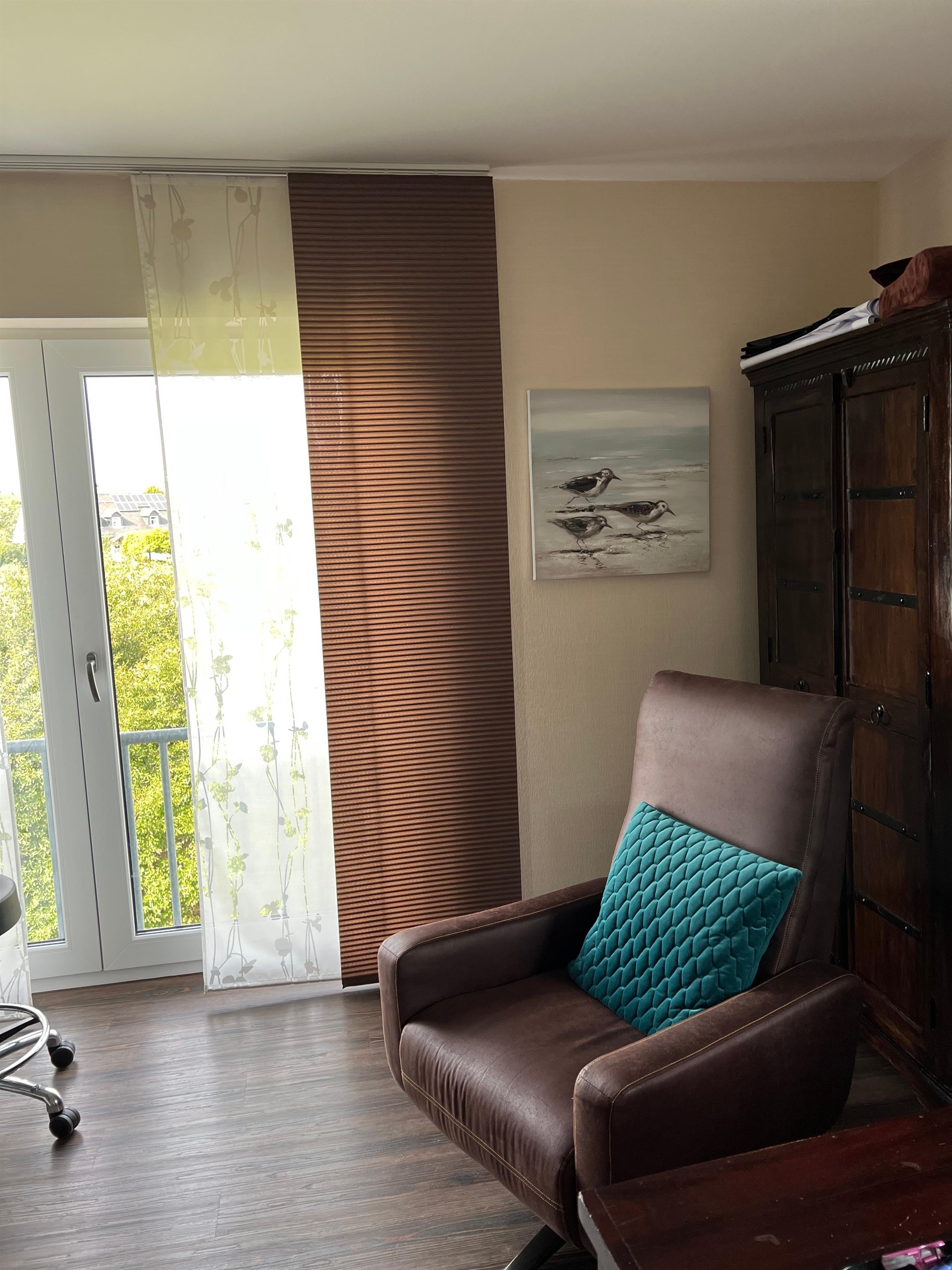 Die Wohnung befindet sich im 1. OG. Sie verfügt über 1 Schlafzimmer mit Doppelbett, einen Wohnbereich, 1 offenen Chill-Out Bereich, 1 Badezimmer, 1 Gäste WC, eine voll ausgestatte Küche, sowie ein Büro für Homeoffice.
