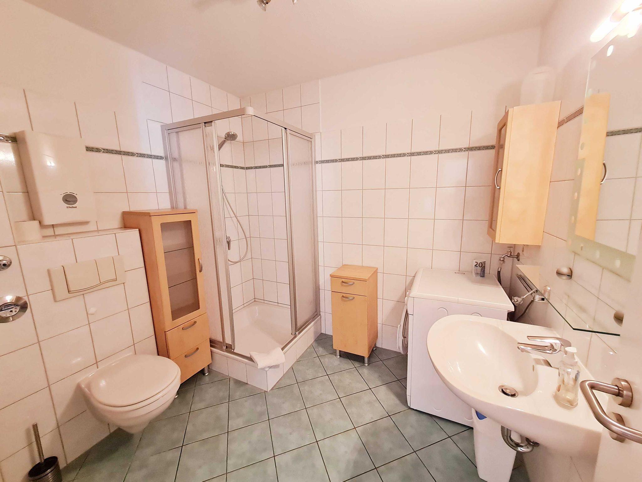 • Bad: ohne Fenster, Dusche, Waschbecken, Toilette, Spiegelschrank,Unterschrank Waschbecken, Schrank, Waschmaschine Frontlader