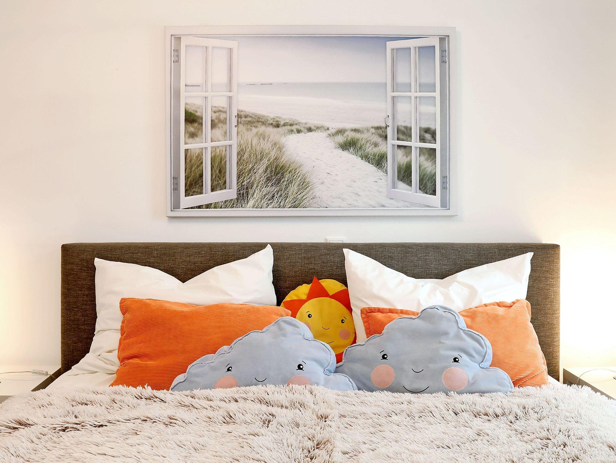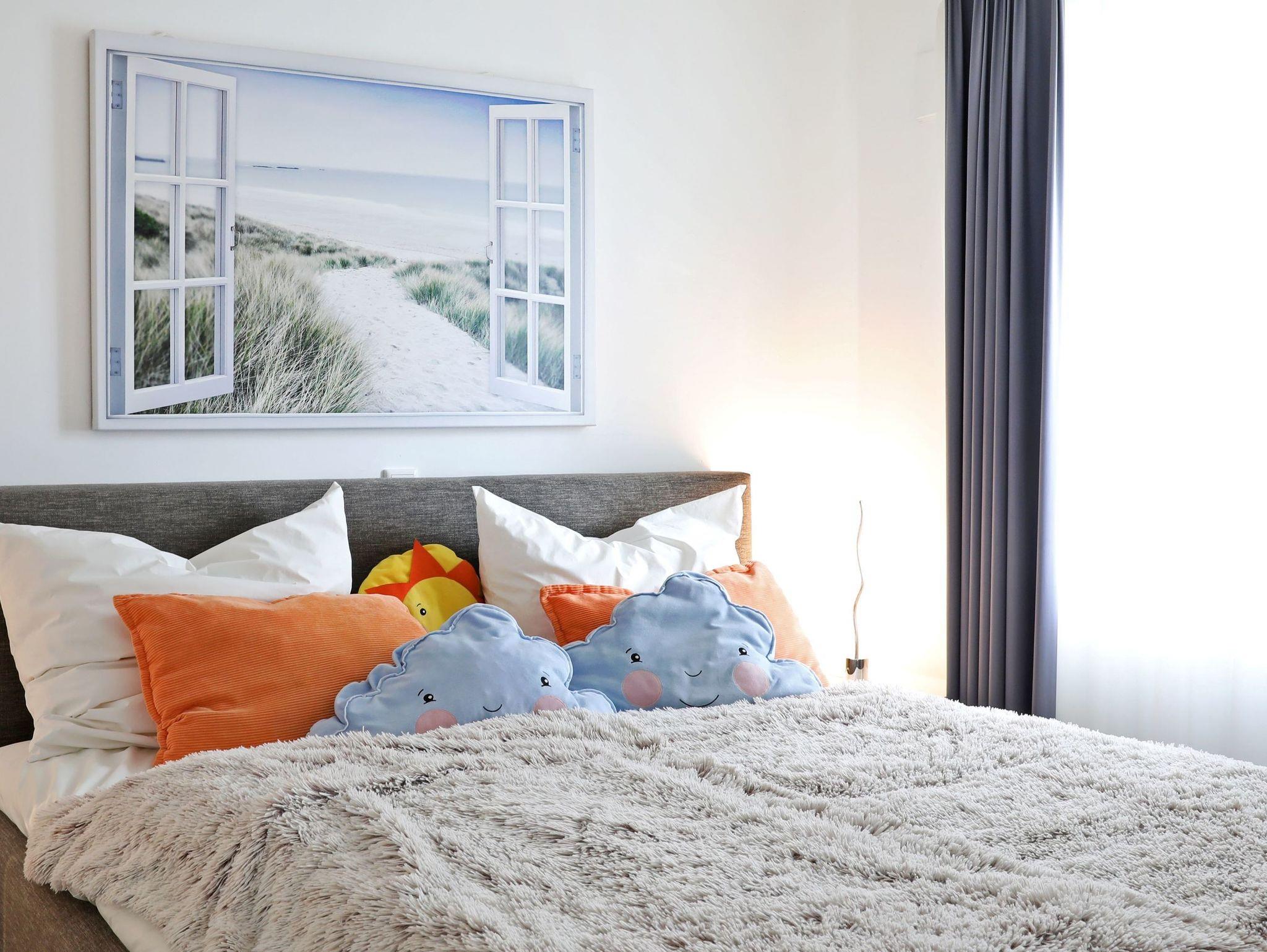 Das Schlafzimmer verfügt über ein hochwertiges Boxspringbett (180x200) mit Nachttischchen und einen geräumigen Kleiderschrank mit ausreichend Bügeln.