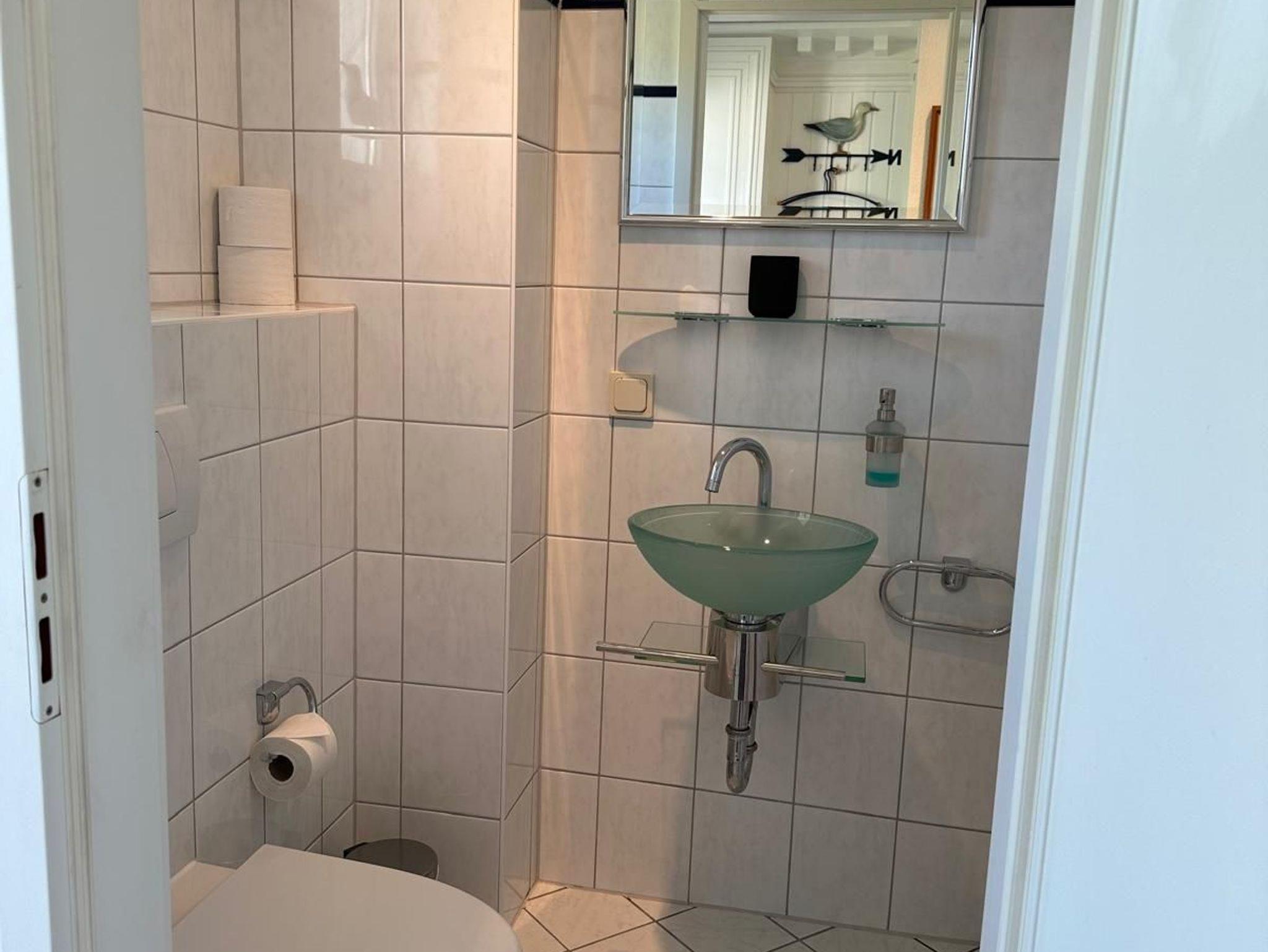 - Ein modernes Badezimmer mit Dusche sowie ein separates Gäste-WC