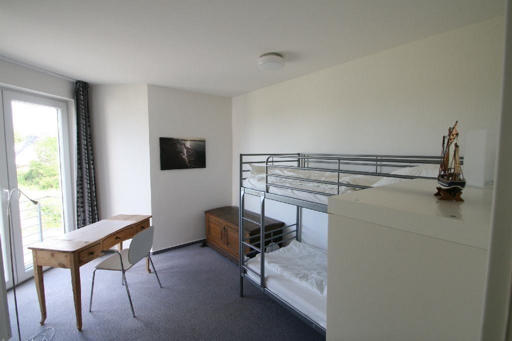 Das Schlafzimmer verfügt über ein bequemes Doppelbett (1,60mx2,00m - durchgehende Matratze) und genügend Stauraum. Im Kinderzimmer finden Sie für die kleinen Urlauber ein bequemes Etagenbett und einen Schreibtisch. Von hier aus kann man auf das Meer schauen.