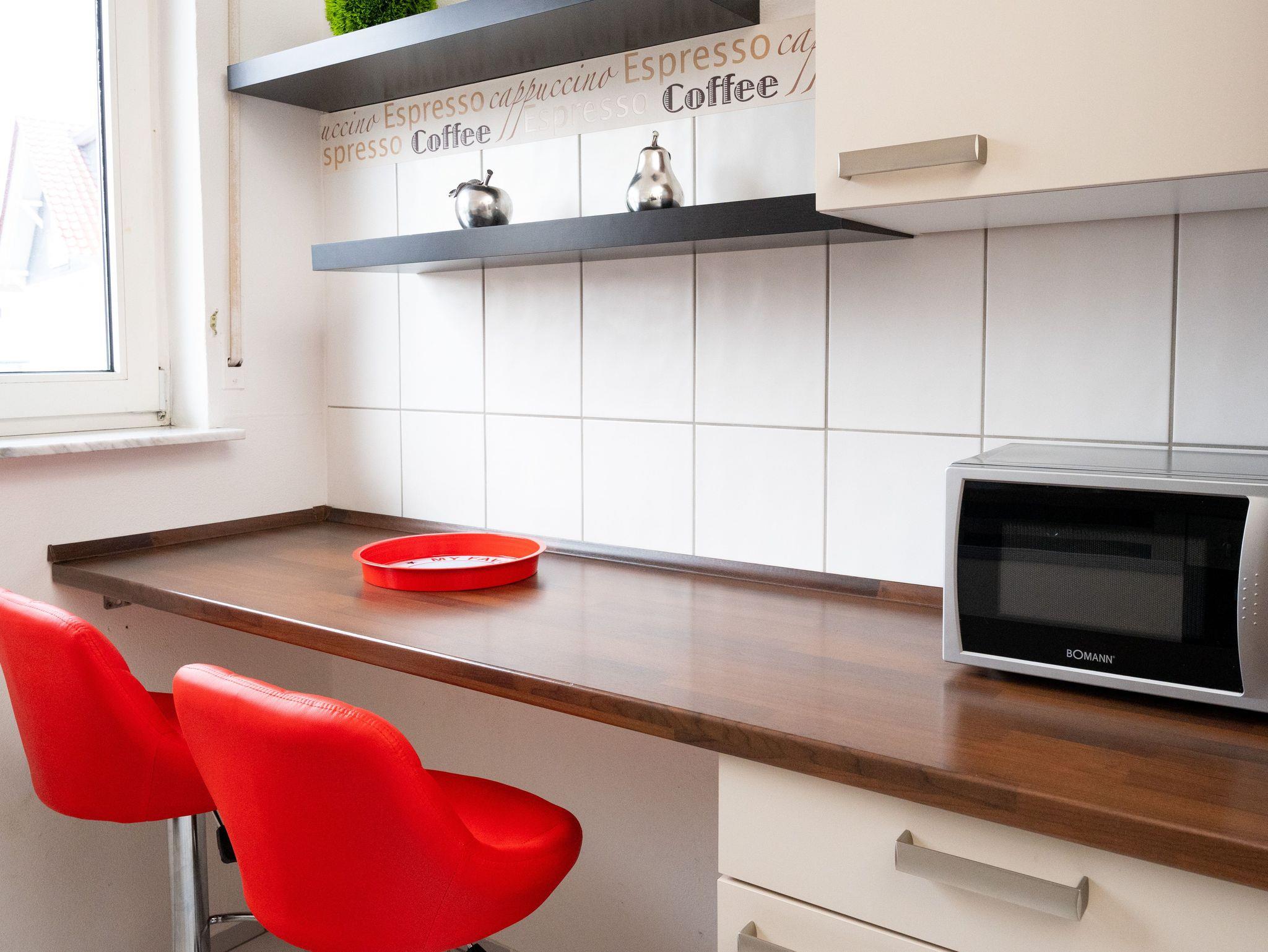 Es erwarten Sie moderne Möbel und liebevolle Accessoires. Als kostenloses Extra bieten wir Ihnen für die Internetnutzung einen W-LAN-Zugang.