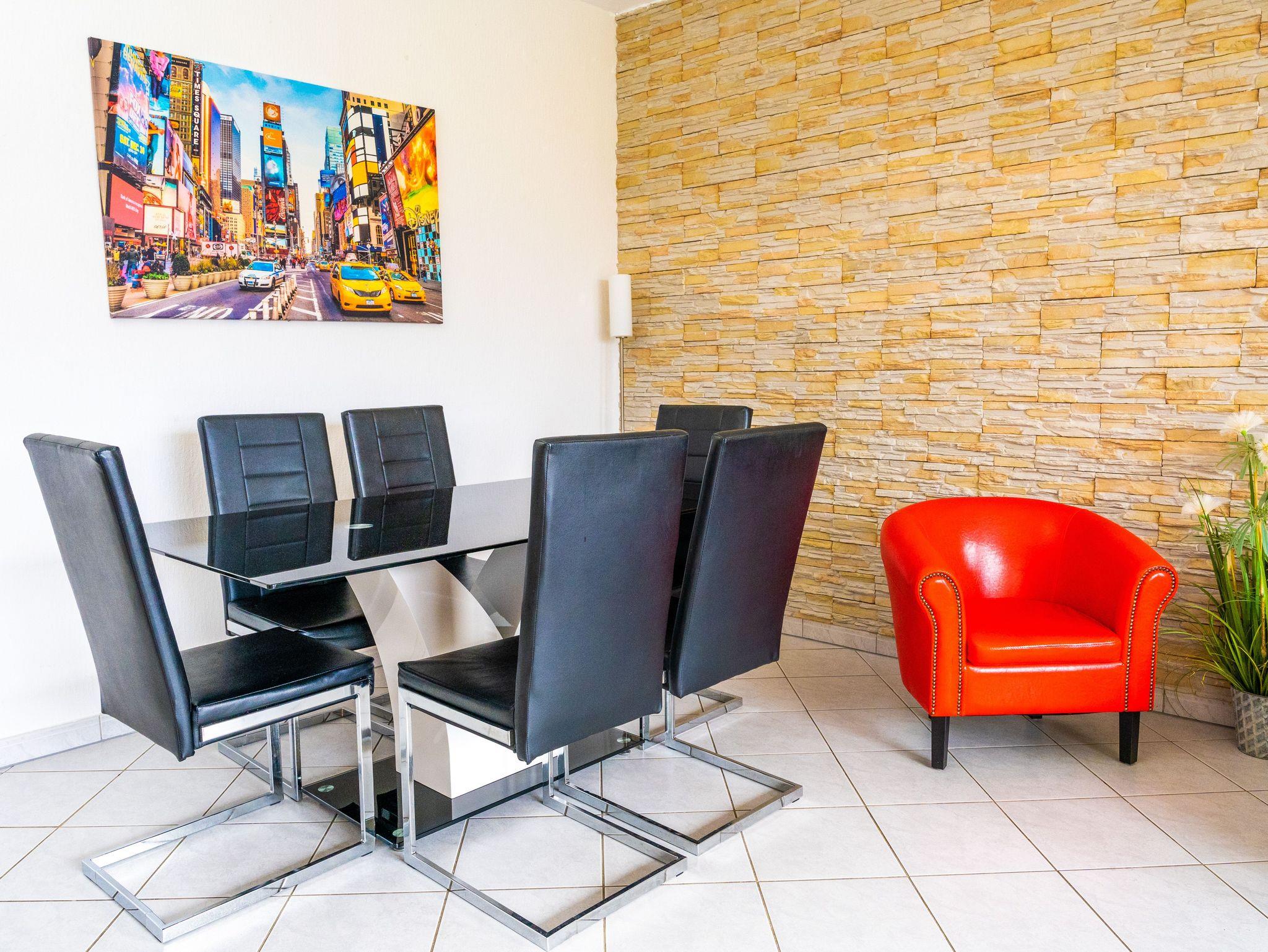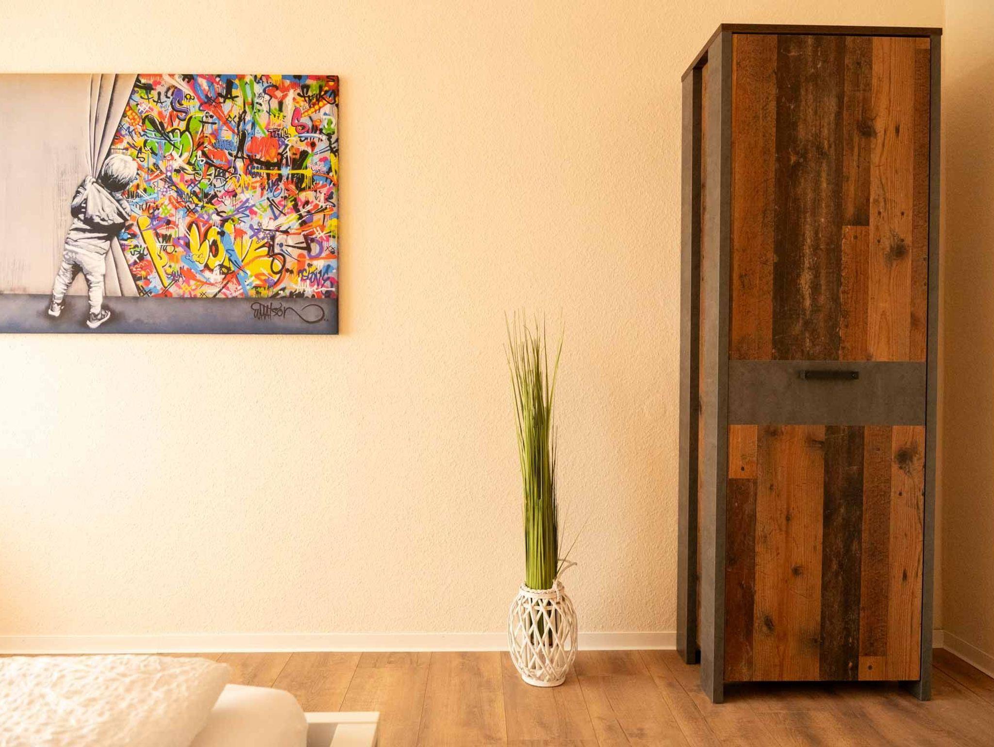 Das kinderfreundliche Apartment besticht besonders durch seine individuelle Einrichtung mit hochwertigen und modernen Designermöbeln. Abgerundet wird das stilvolle Ambiente durch zahlreiche Accessoires und Kunstwerke.