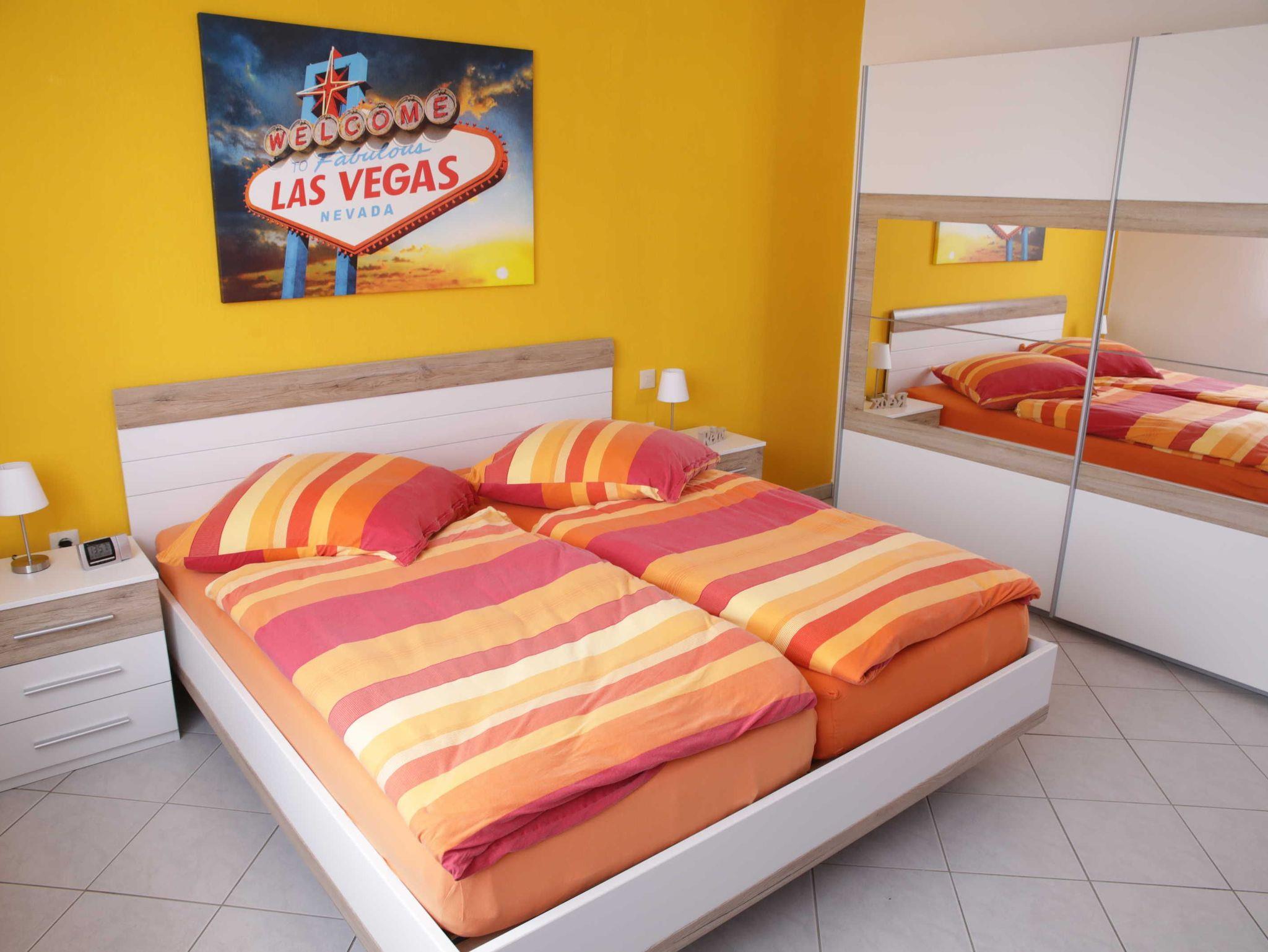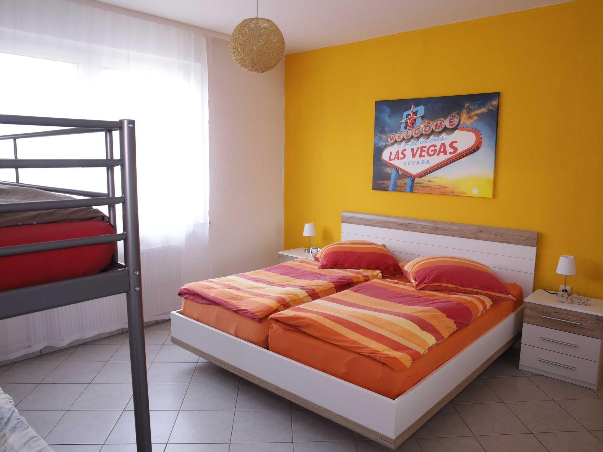Das gemütliche und ruhige Schlafzimmer ist mit einem Doppelbett (1,80m x 2,00m), einem Doppel-Stockbett und einem großen Kleiderschrank ausgestattet. Im zweiten Schlafzimmer befindet sich ebenfalls ein Doppelbett (1,80m x 2,00m), ein kleiner Kleiderschrank sowie ein Schreibtisch. Die Schlafbereiche sind sehr ruhig.