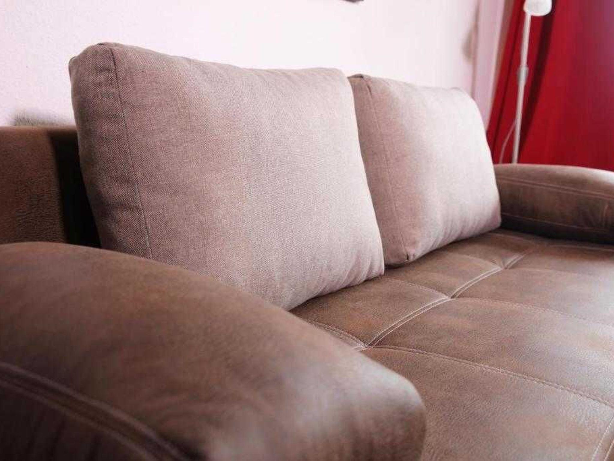 Das Wohnzimmer ist mit einer bequemen, ausziehbaren Schlafcouch (1,60 mal 2