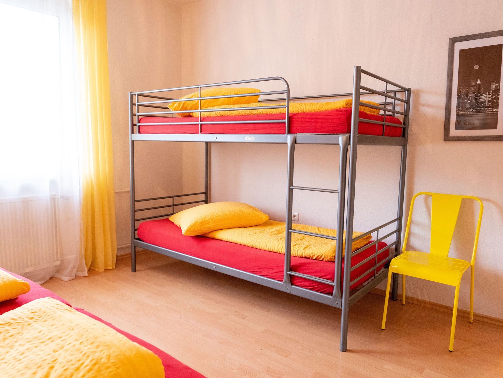 Das erste Schlafzimmer ist mit einem Doppelbett (1,80m x 2,00m), einem Etagenbett sowie einem großen Kleiderschrank ausgestattet. In Schlafzimmer 2 befindet sich ein Doppelbett, ein Kleiderschrank sowie ein Schreibtisch. Schlafzimmer 3 verfügt ebenfalls über ein Doppelbett. Der Schlafbereich ist sehr ruhig.